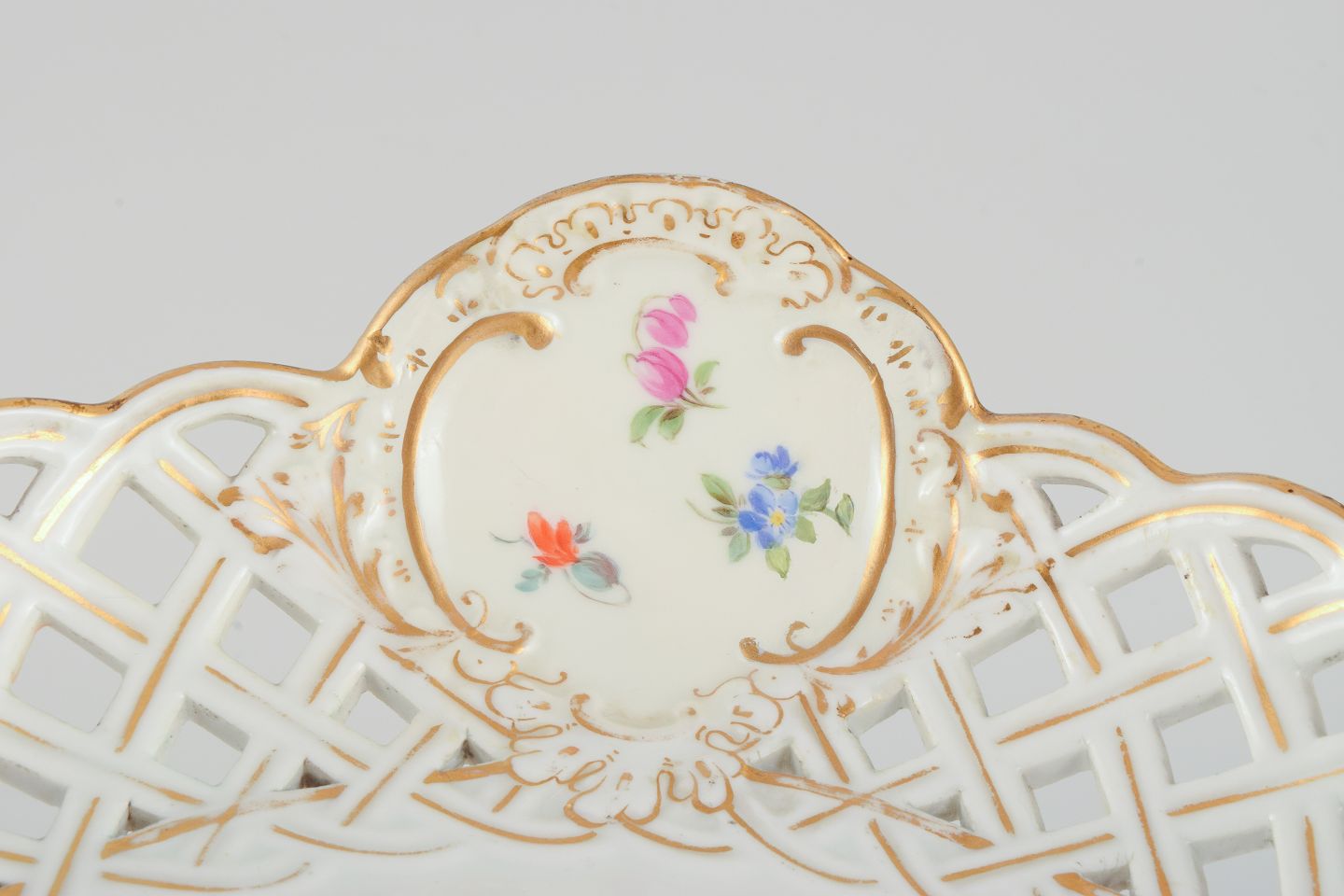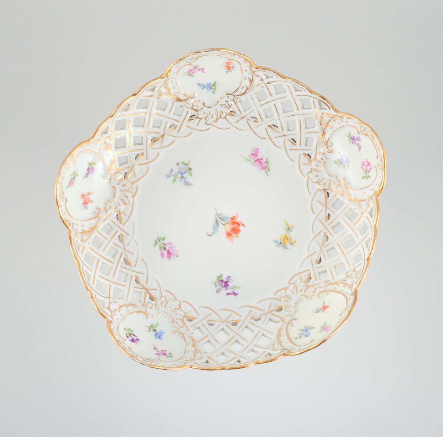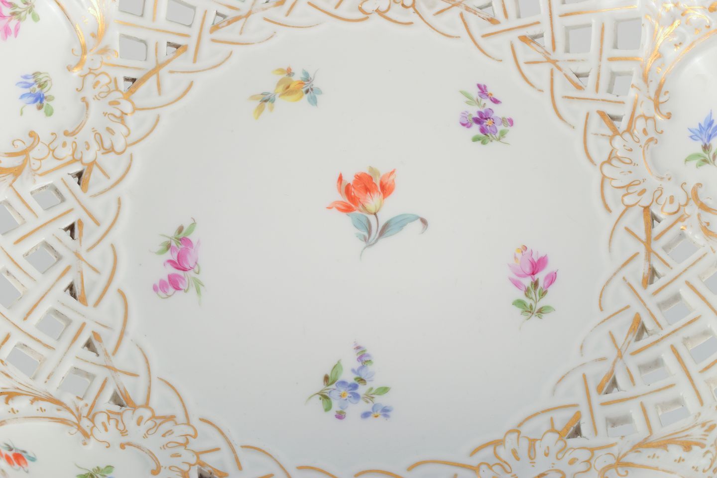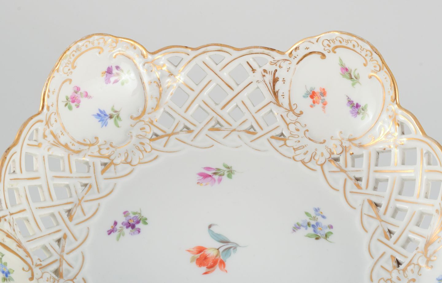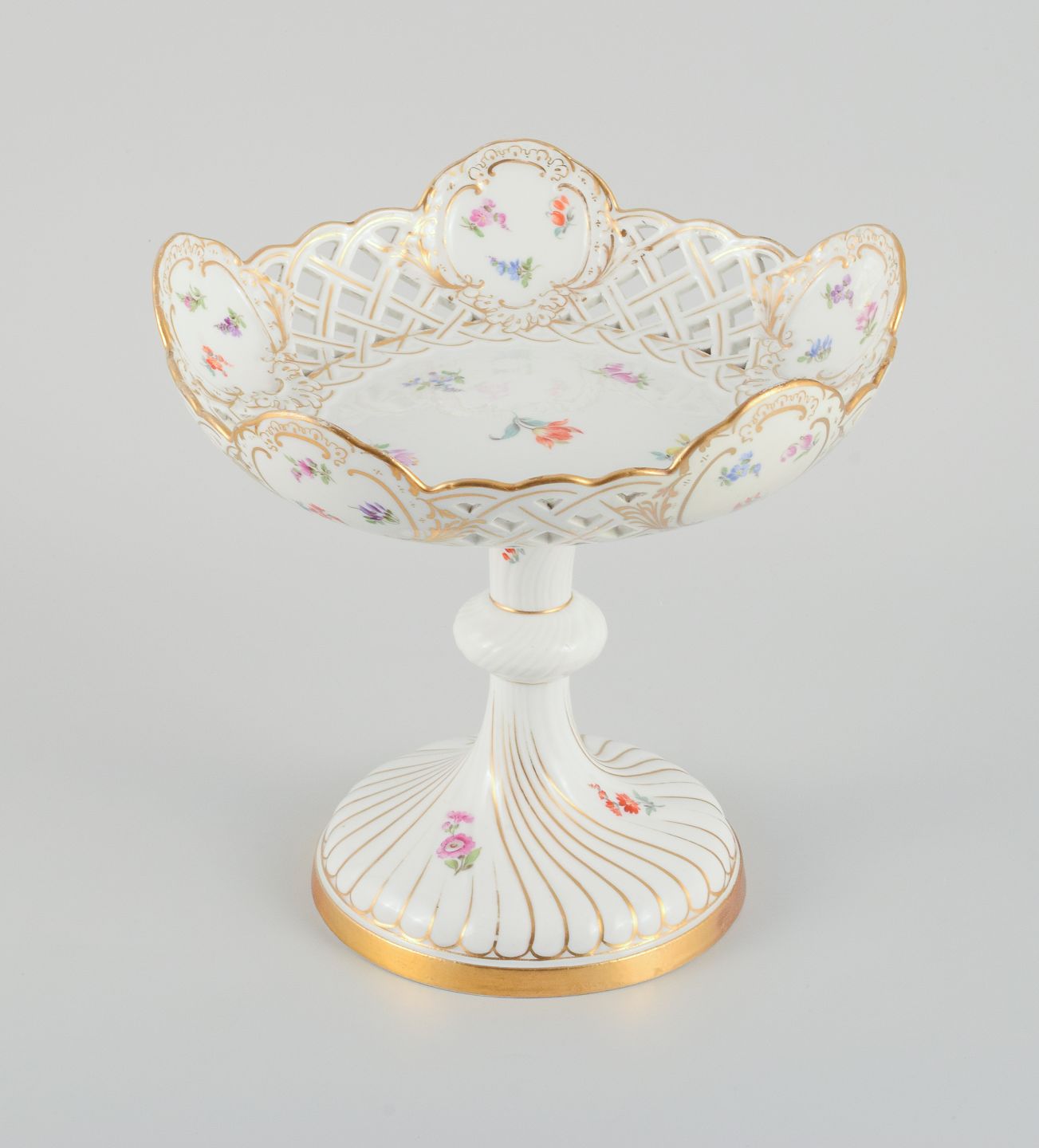 Stor Meissen gennembrudt opsats dekoreret med polykrome blomster.