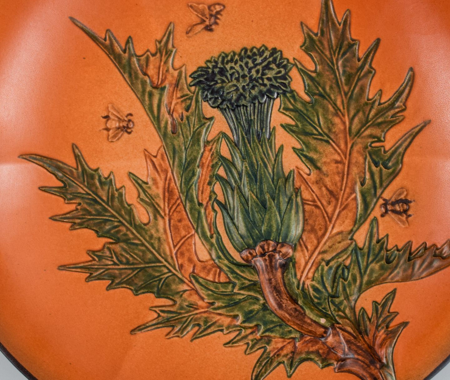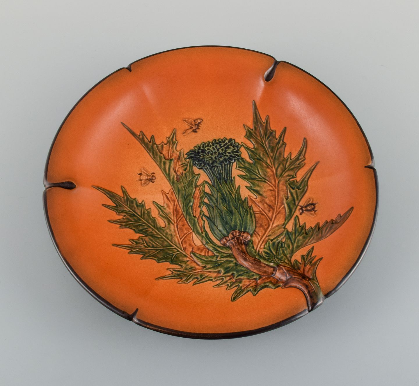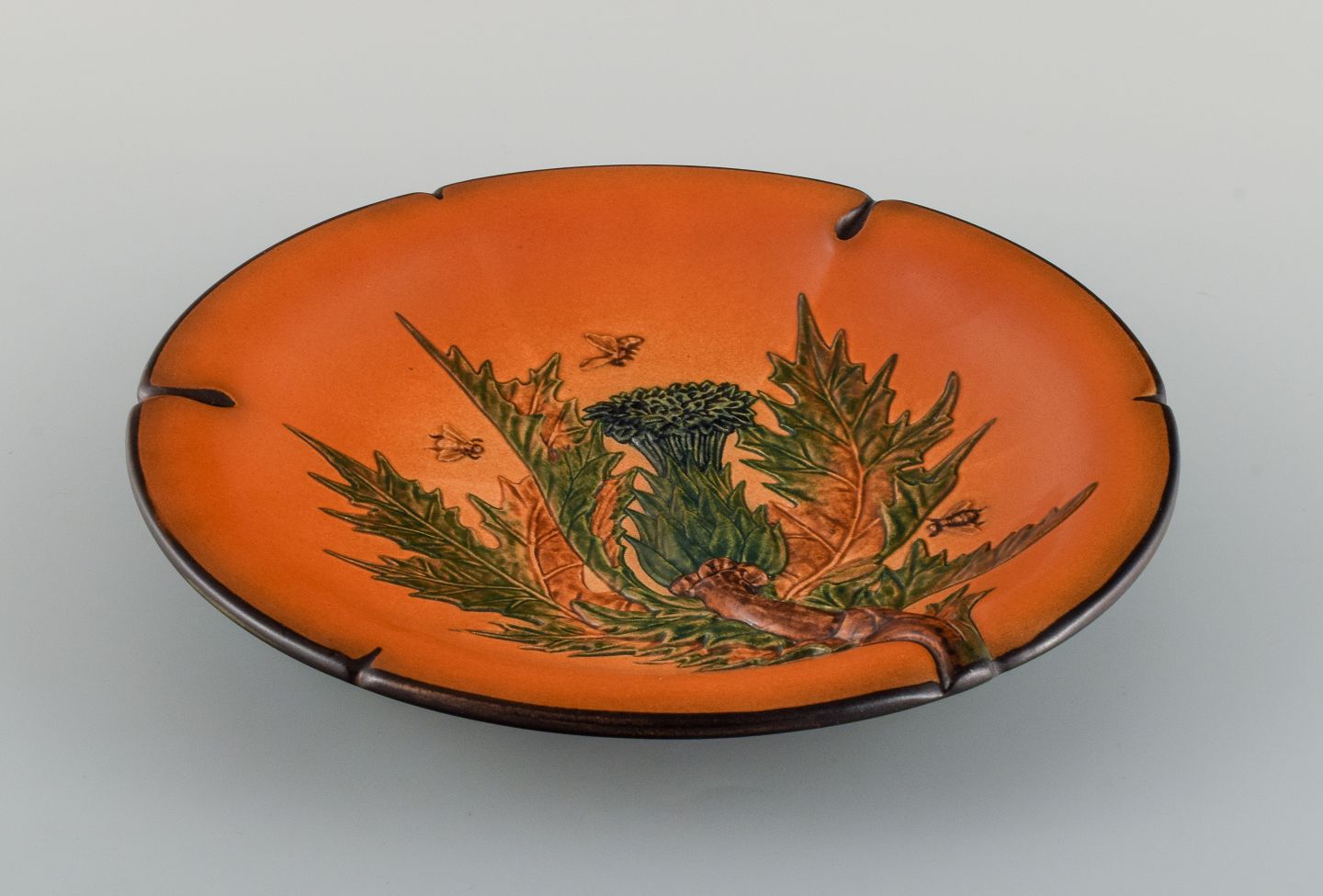 Ipsens enke, håndmalet glaseret keramikfad med blomst og bier. 1920'erne. Modelnummer 126. I perfekt stand. Stemplet. Måler 27,0 cm. x 4,0 cm. dybt.