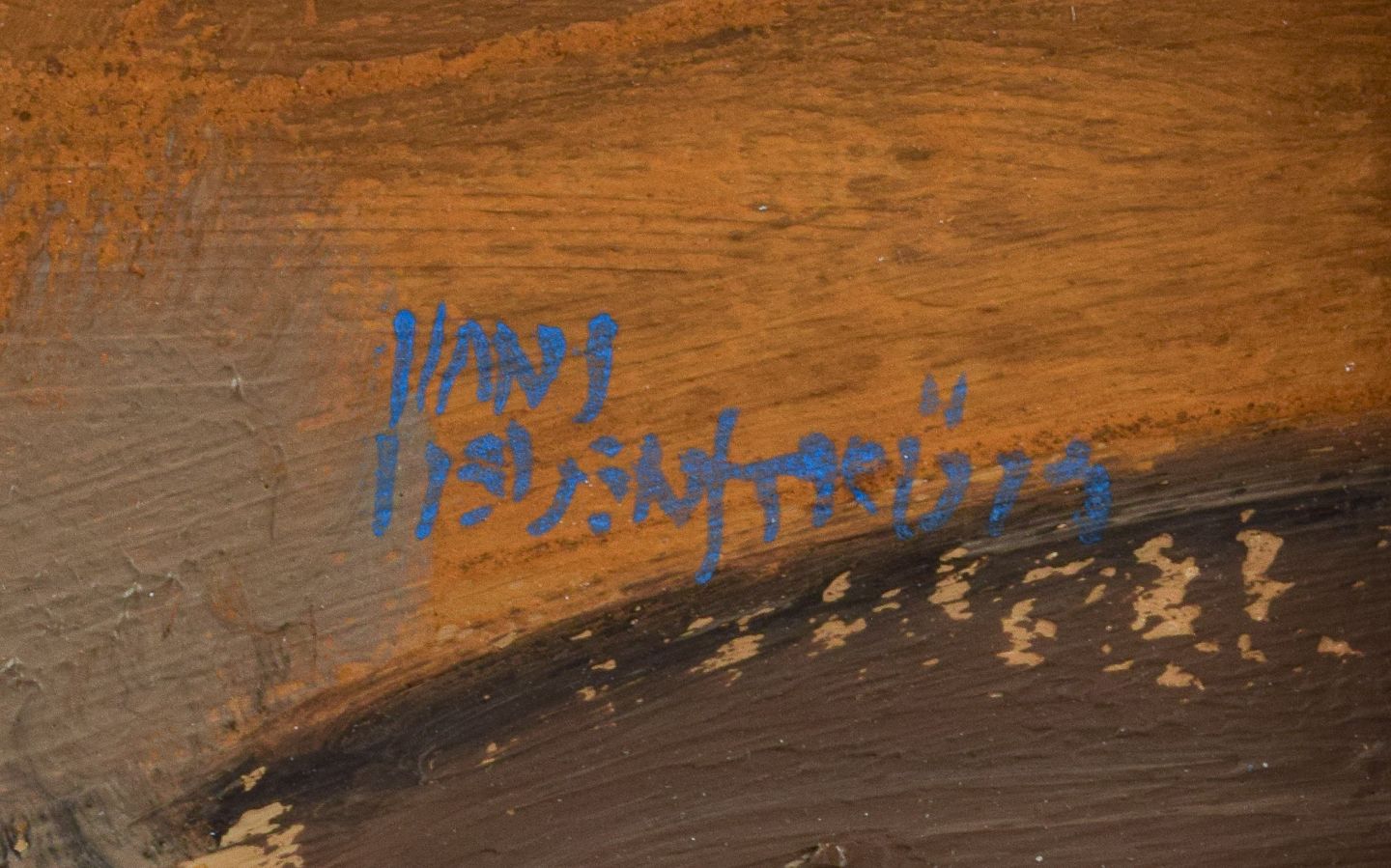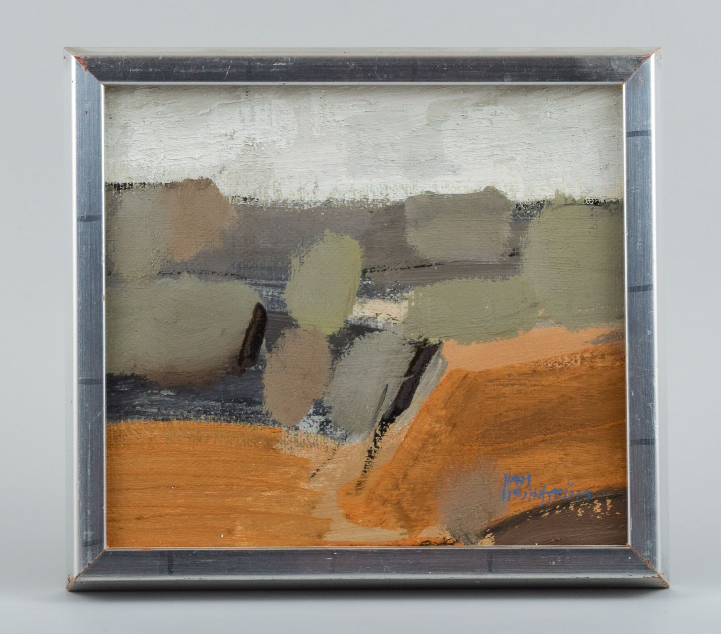 Hans Hedenström (1928-2007). Svensk kunstmaler. Modernistisk landskab. Olie på plade. 1960’erne. I perfekt stand Signeret. 21 x 24 uden ramme / 27 x 24 cm. med ramme.