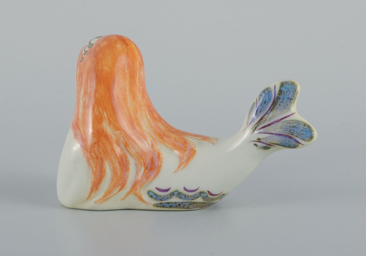 Doreen Middelboe for Aluminia/Royal Copenhagen, havfruefigur i fajance. 1970'erne. Første sortering. I flot stand. Stemplet. Måler: L 10,0 x H 6,0 cm.