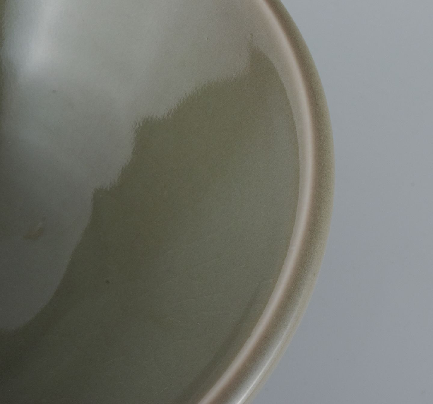 Gunnar Nylund for Rörstrand (Lidköping), skål i keramik med grågrøn glasur. 1930/40'erne. Stemplet. I flot stand. Måler: D 24,5 x H 10,5 cm.