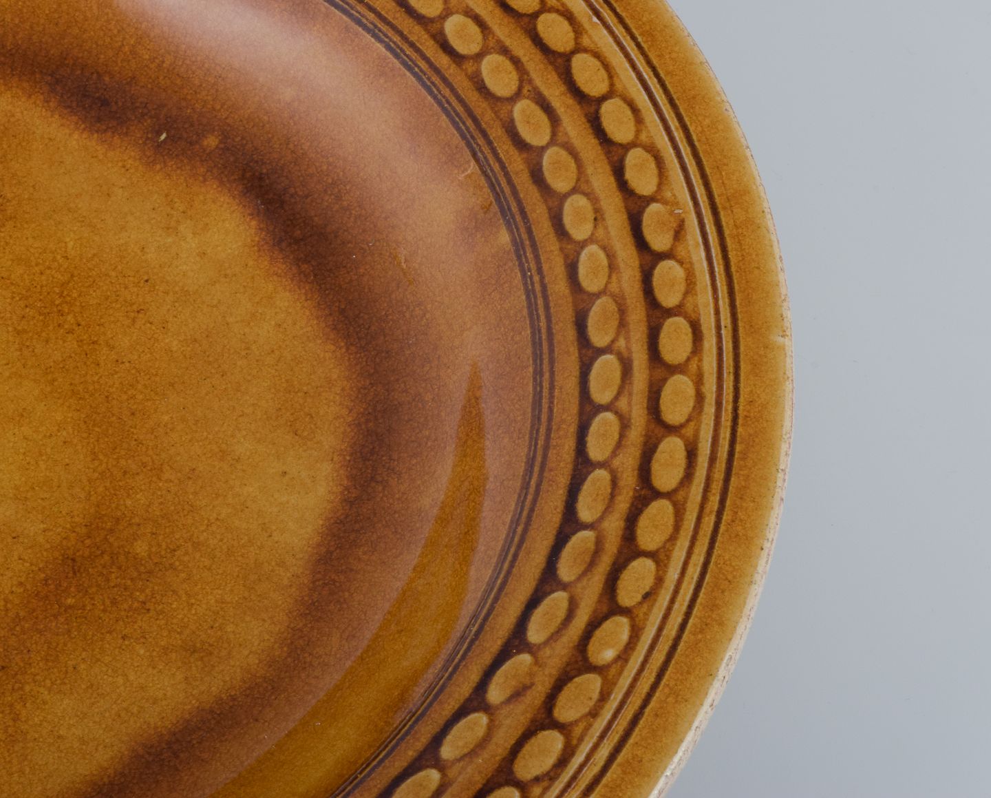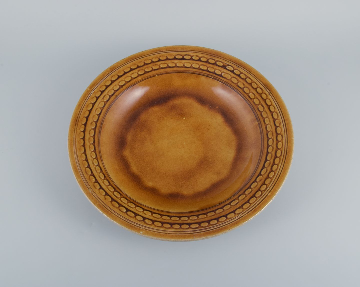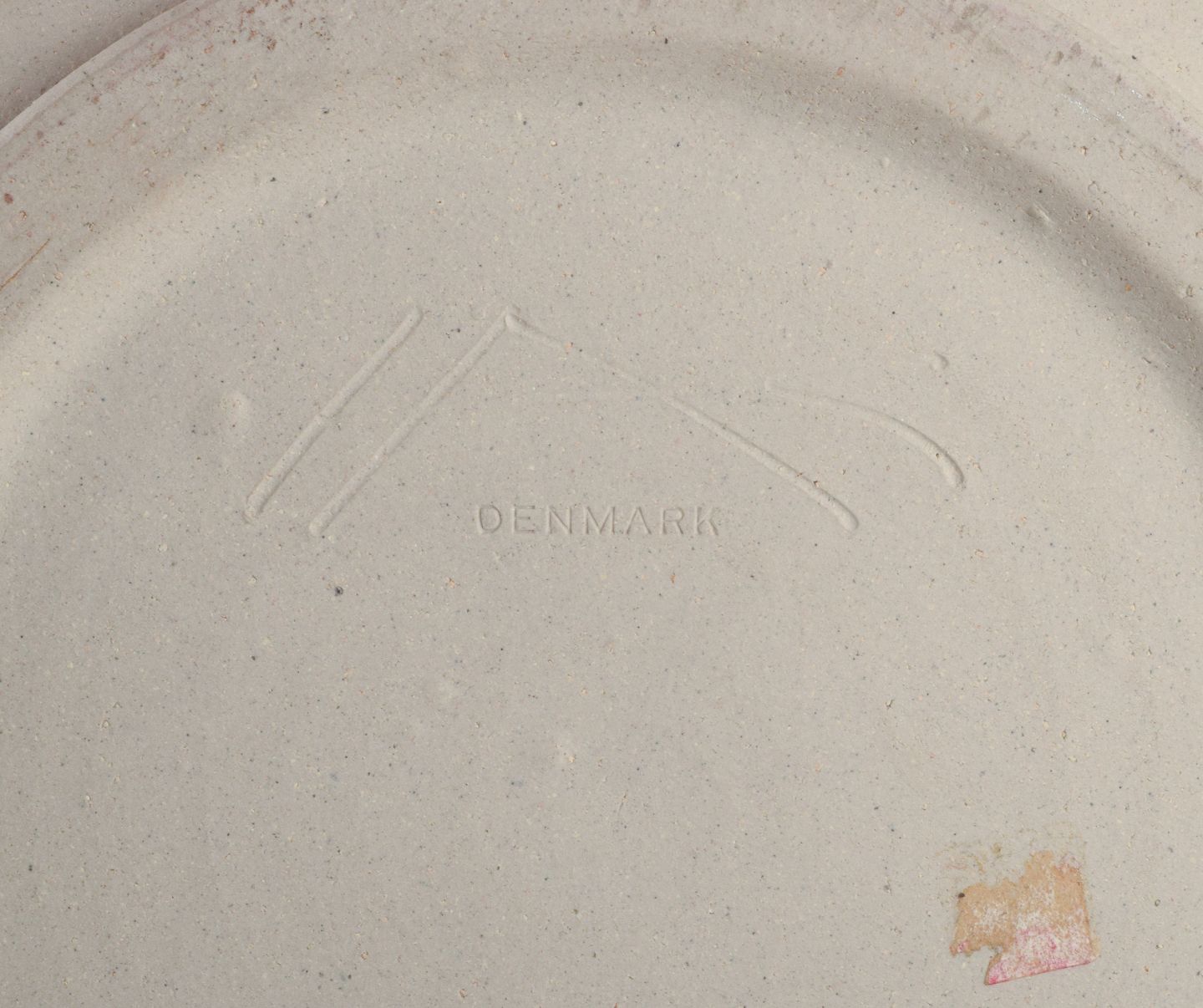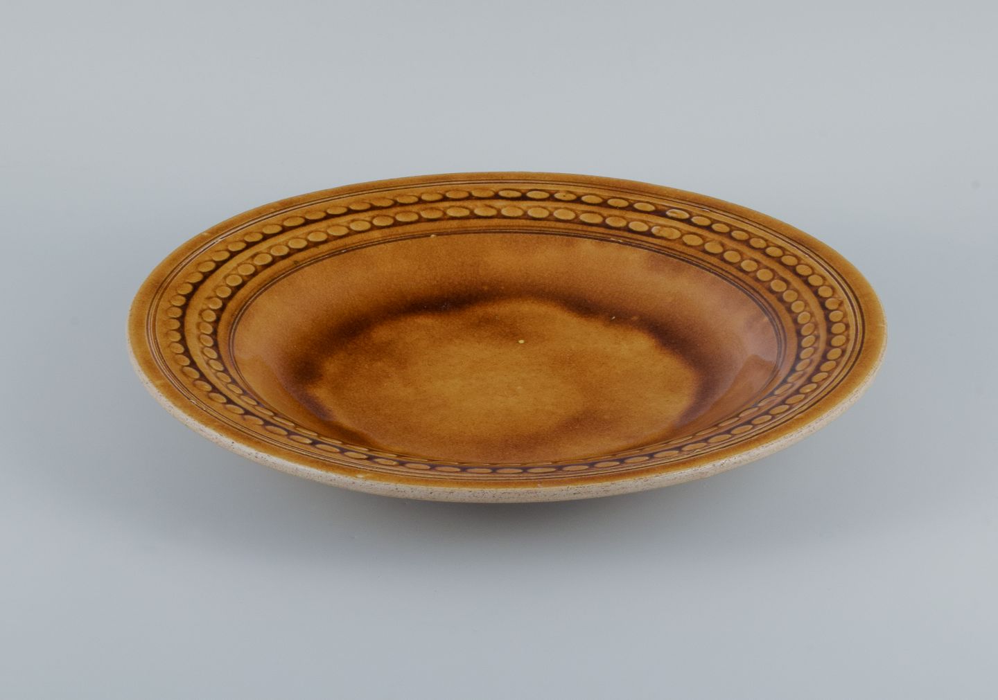 Kähler, HAK, glaseret kolossalt stentøjskål. Designet af Nils Kähler. Urangul glasur. 1960'erne. I flot stand. Signeret. Mål: D 40,5 x H 5,5 cm.