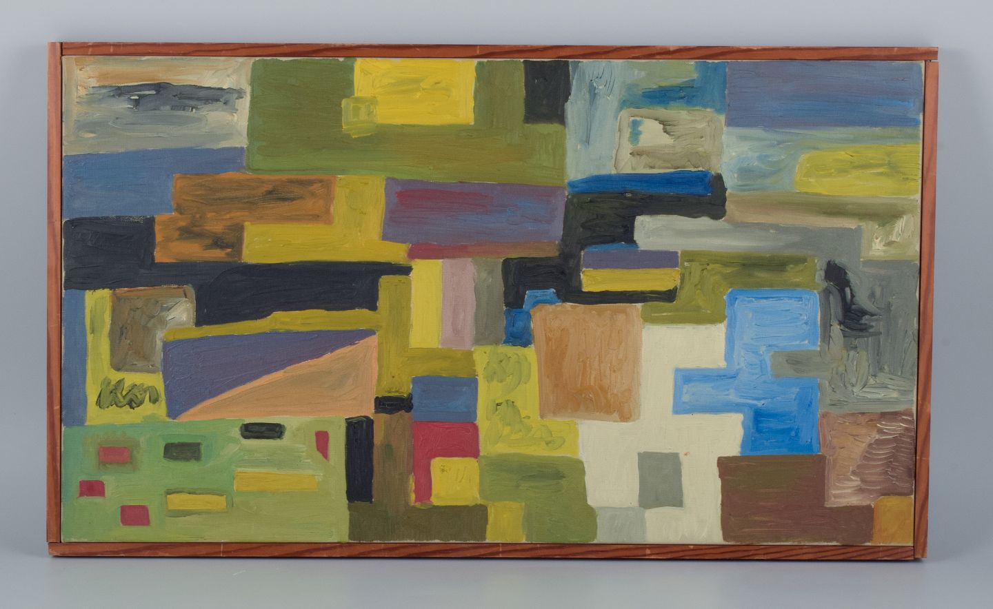 Skandinavisk kunstner, abstrakt komposition, olie på lærred. Signeret H Trobeck 1963. I flot stand. Mål: B 67,0 x H 38,0 cm.