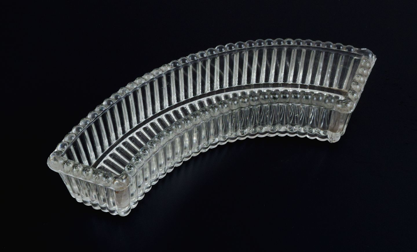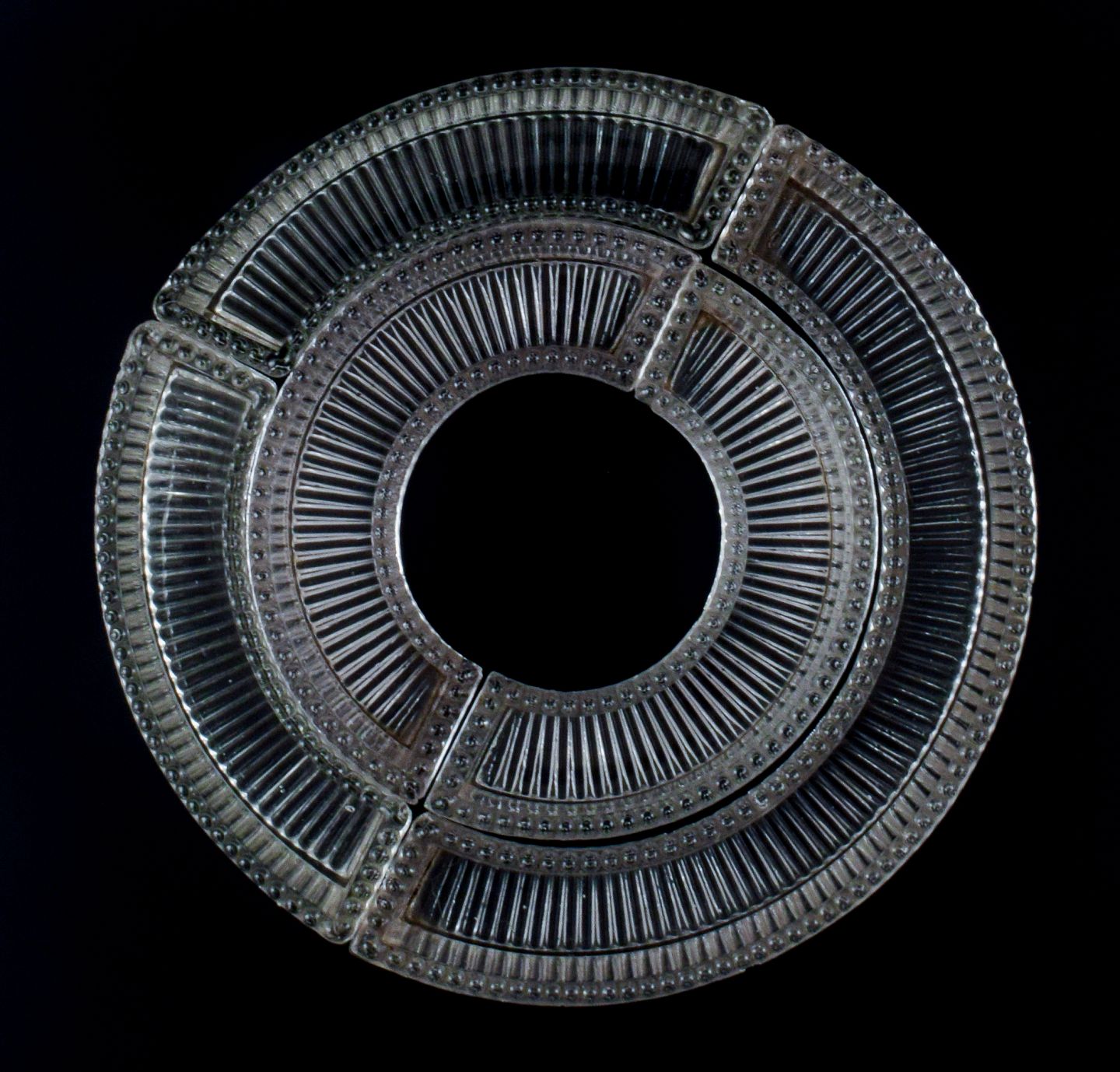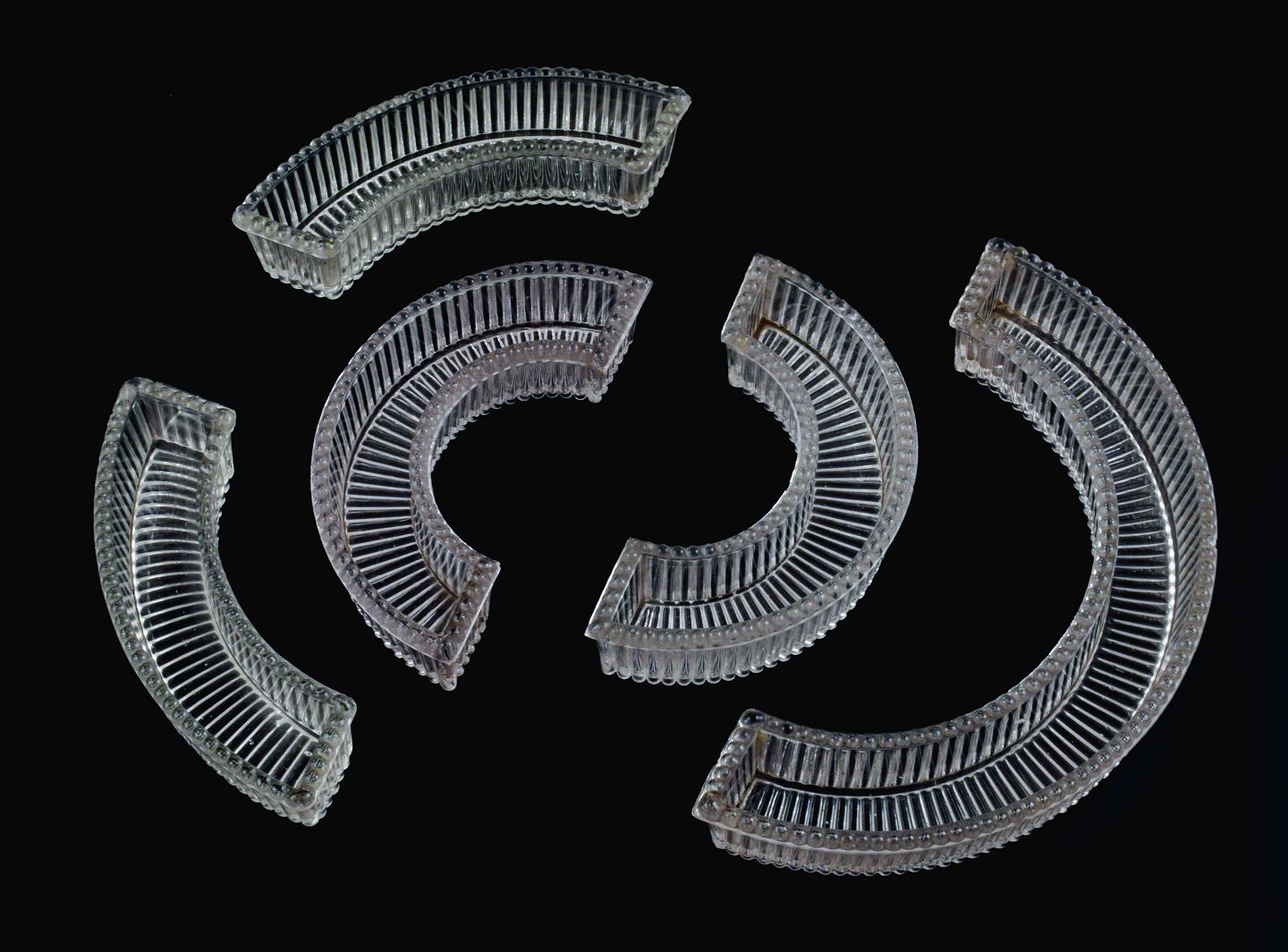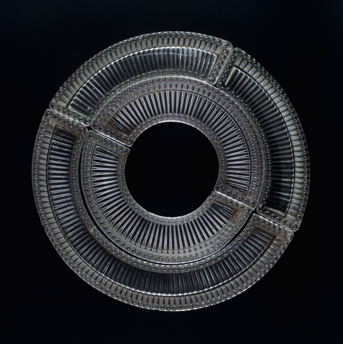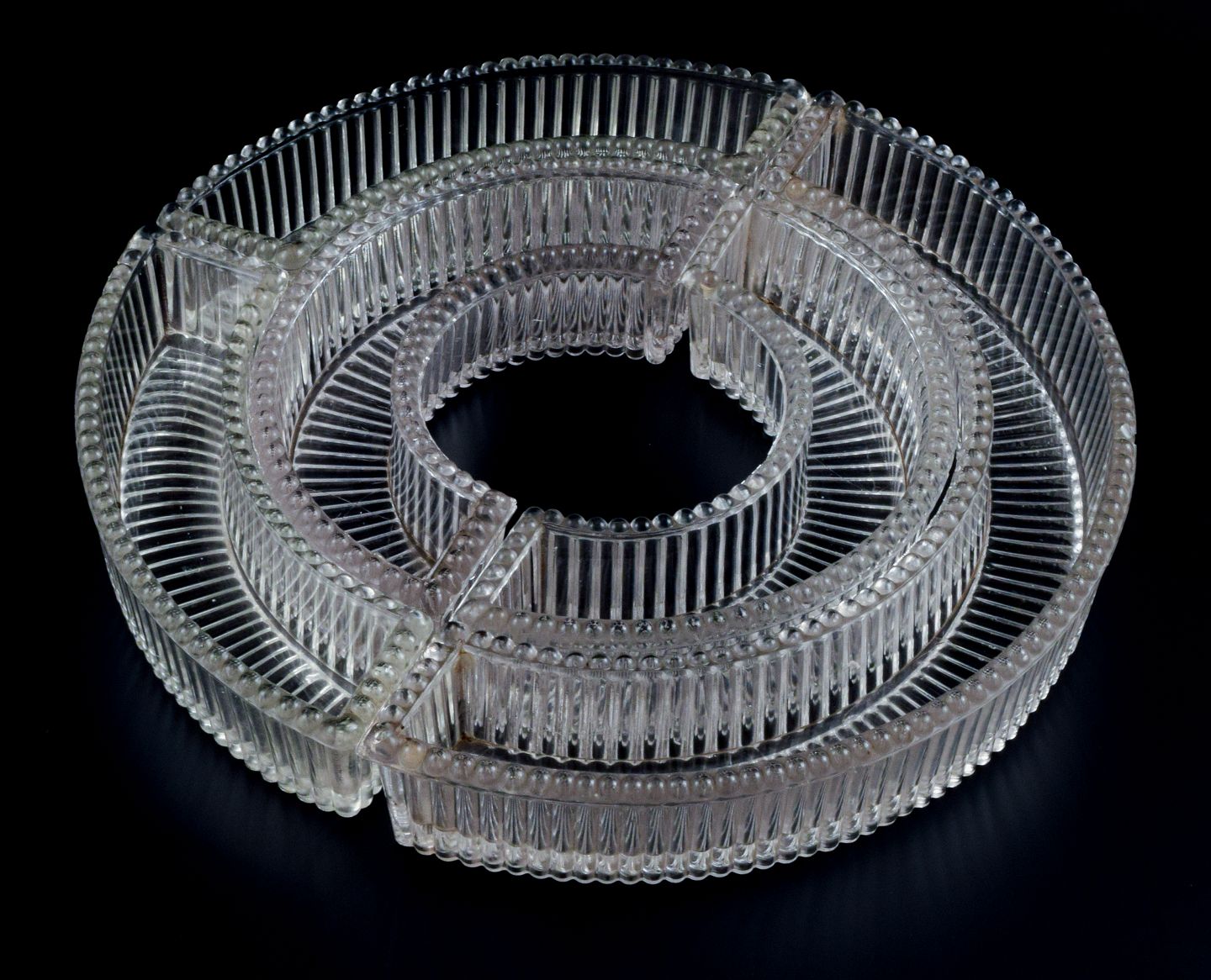 Baccarat, Frankrig, opsats / "Surtout de Table" bestående af fem dele krystalglas i rillet design. Art deco. 1930/40'erne. Diameter total: D 29,5 x H 4,3 cm.