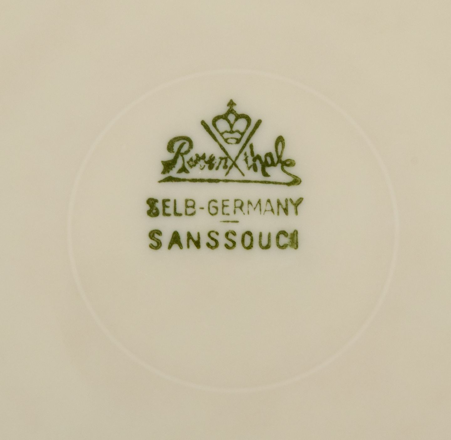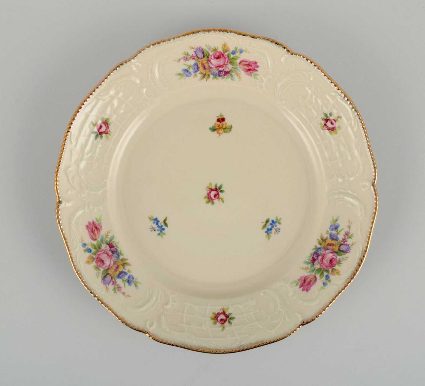 Rosenthal, Tyskland, "Sanssouci" Seks kaffekopper med tilhørende underkopper samt kagetallerkner dekoreret med blomster og guld.