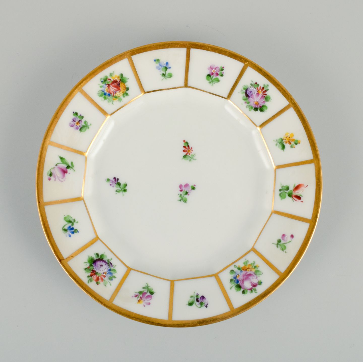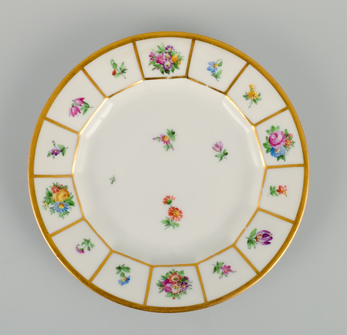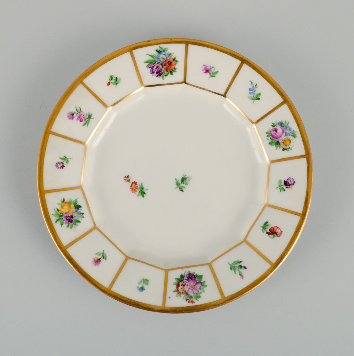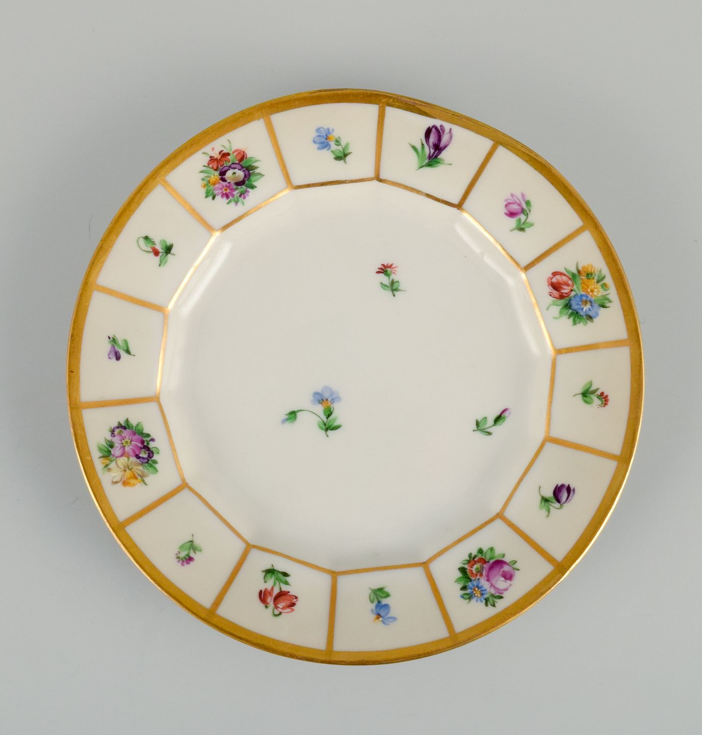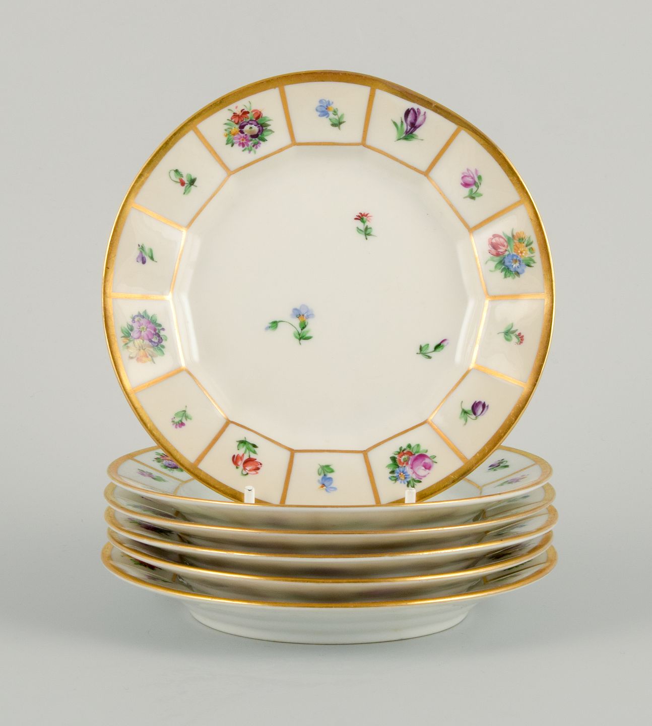 Royal Copenhagen Henriette. Håndmalet porcelæn, seks kagetallerkner. Modelnummer 444/8553. Første sortering. I perfekt stand. Mål: D 15,8 cm.