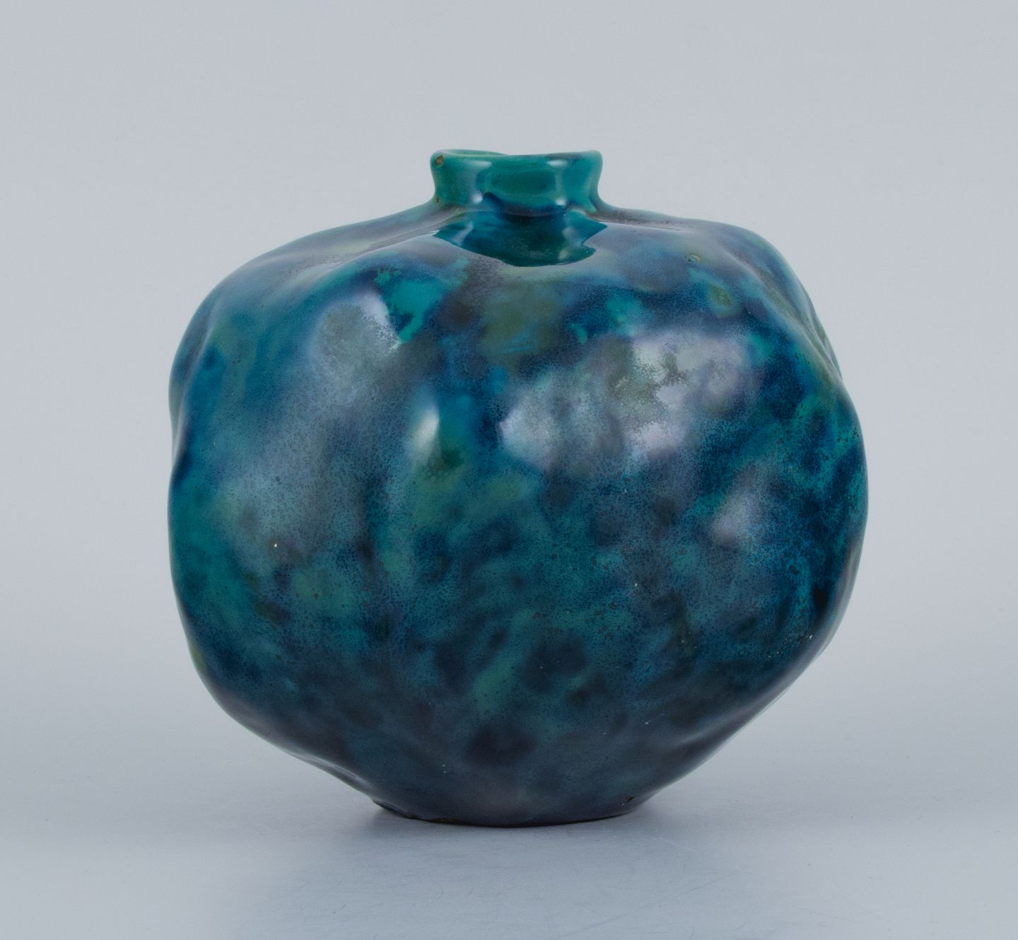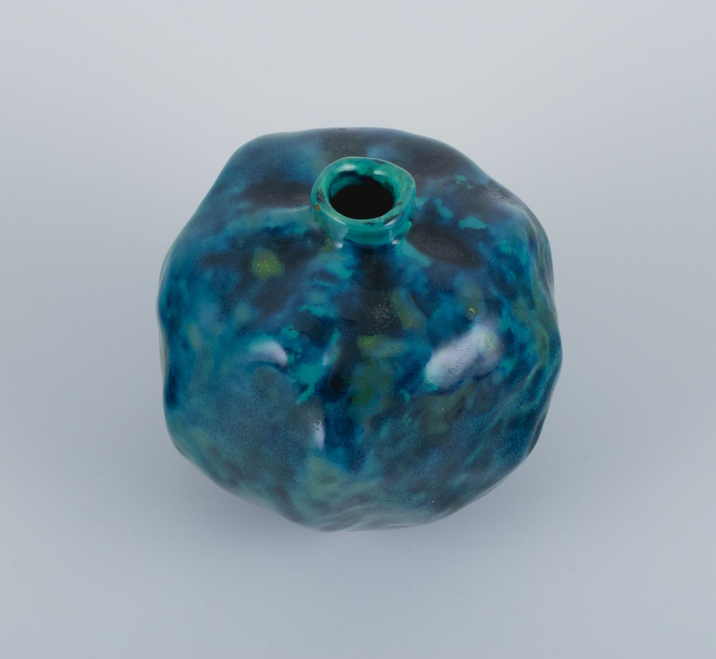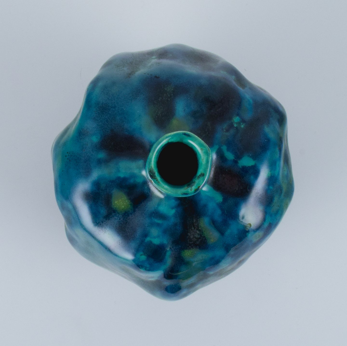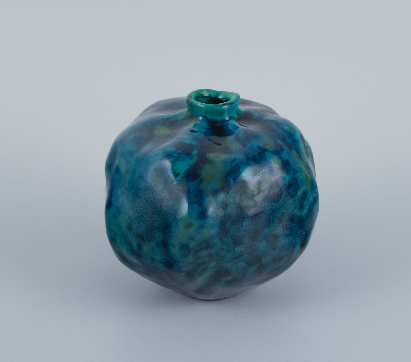 Hans Hedberg (1917-2007) for Biot, Frankrig, unika keramikvase med glasur i blågrønne nuancer. Ca. 1980. Signeret. I perfekt stand. Mål: H 15,0 x D 14,0 cm.