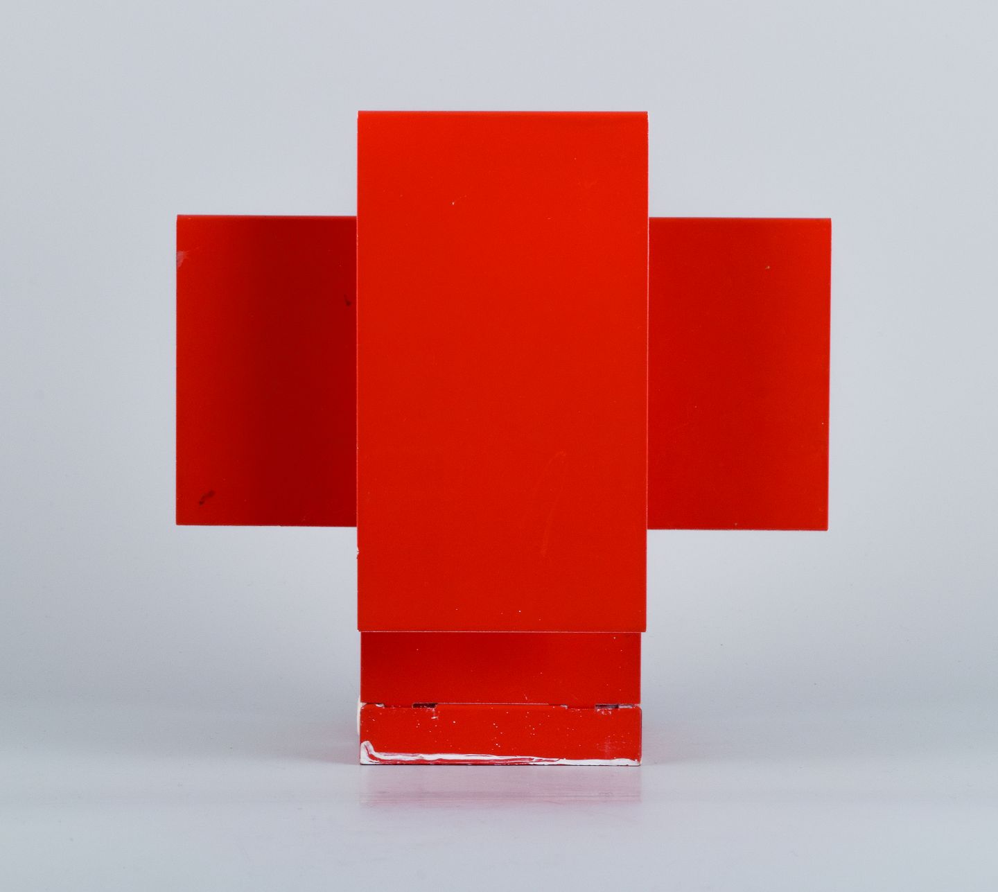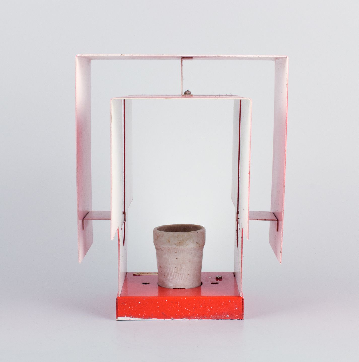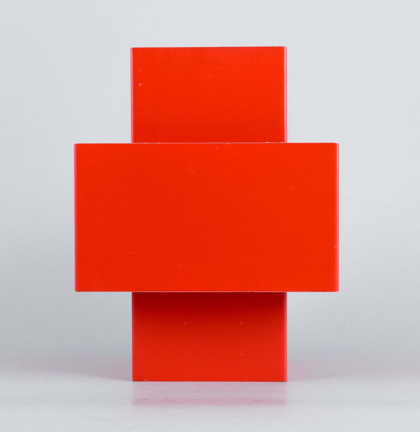 Philips, Holland. Et par væglamper af rødlakeret metal. 1970'erne. Fremstår med brugsspor. Mål: H 20,0 x D 20,0 cm.