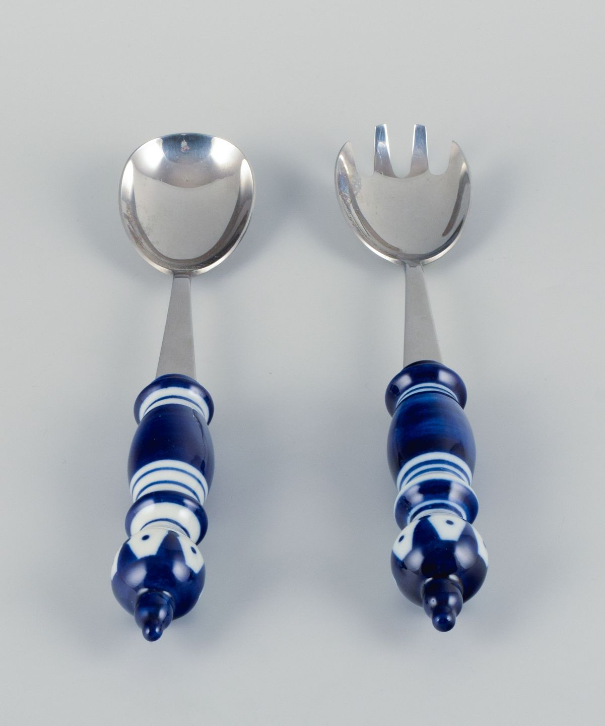 Bjørn Wiinblad for Rosenthal. Siena salatsæt i glaseret keramik og rustfrit stål. 1980'erne. I flot stand. Stemplet. Mål: L 28,0 cm.