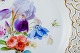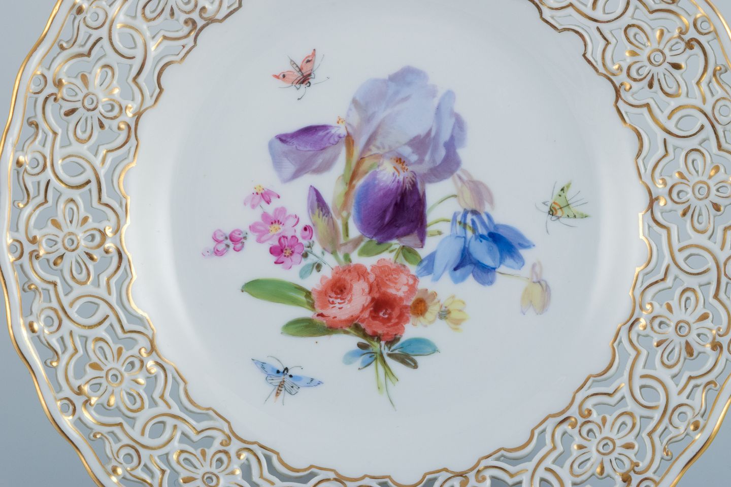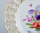 Meissen, gennembrudt tallerken håndmalet med blomster og sommerfugle.