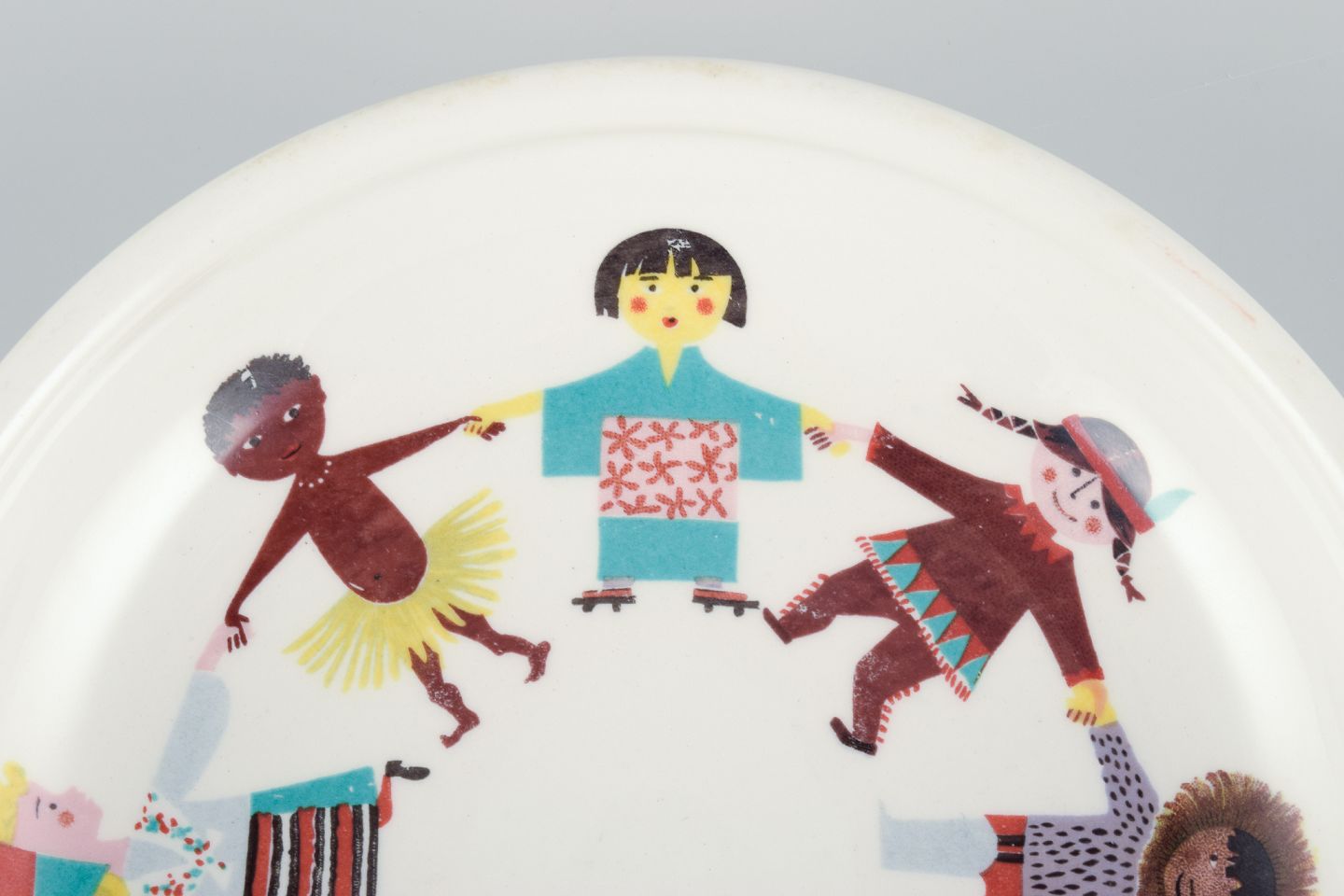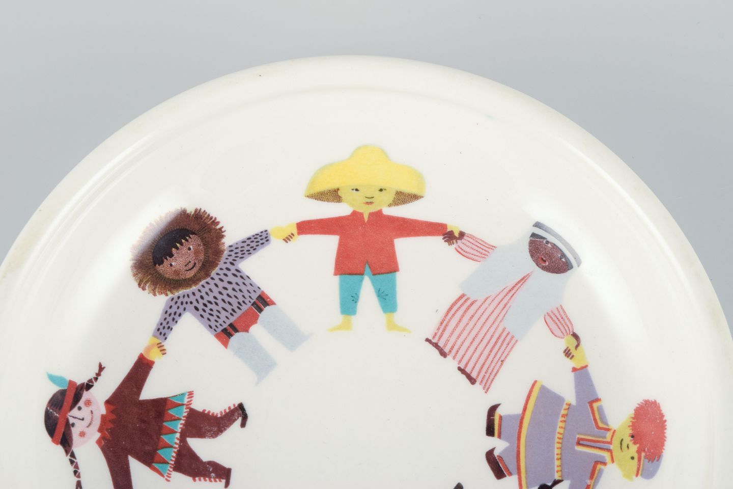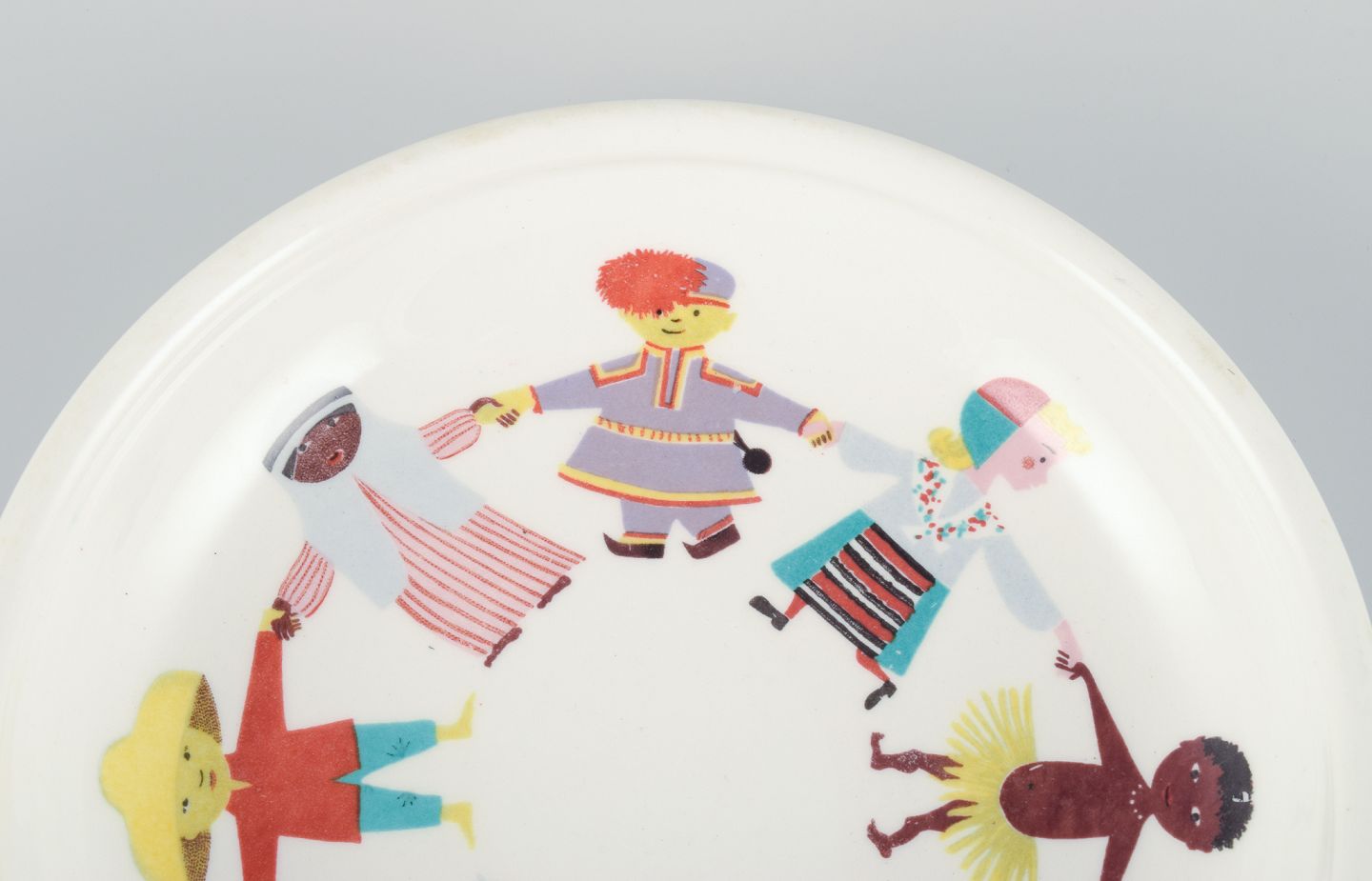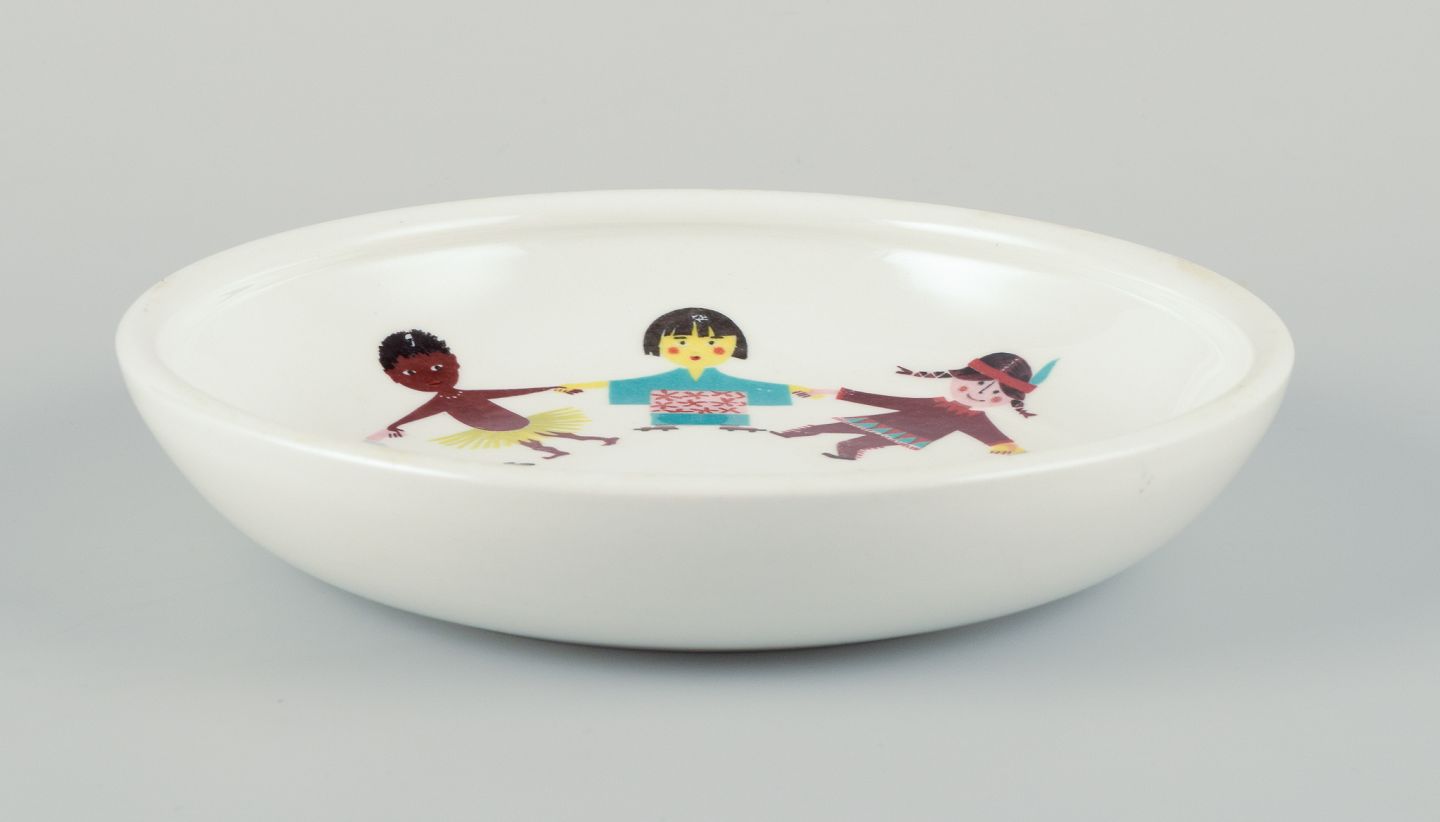 Stig Lindberg for Gustavsberg, Sverige, ”Utan Grænser”. Sjælden porcelænsskål med motiv af børn fra hele verden. 1970’erne. Perfekt stand. Første sortering. Mål: D 17,0 cm. x H 3,5 cm.