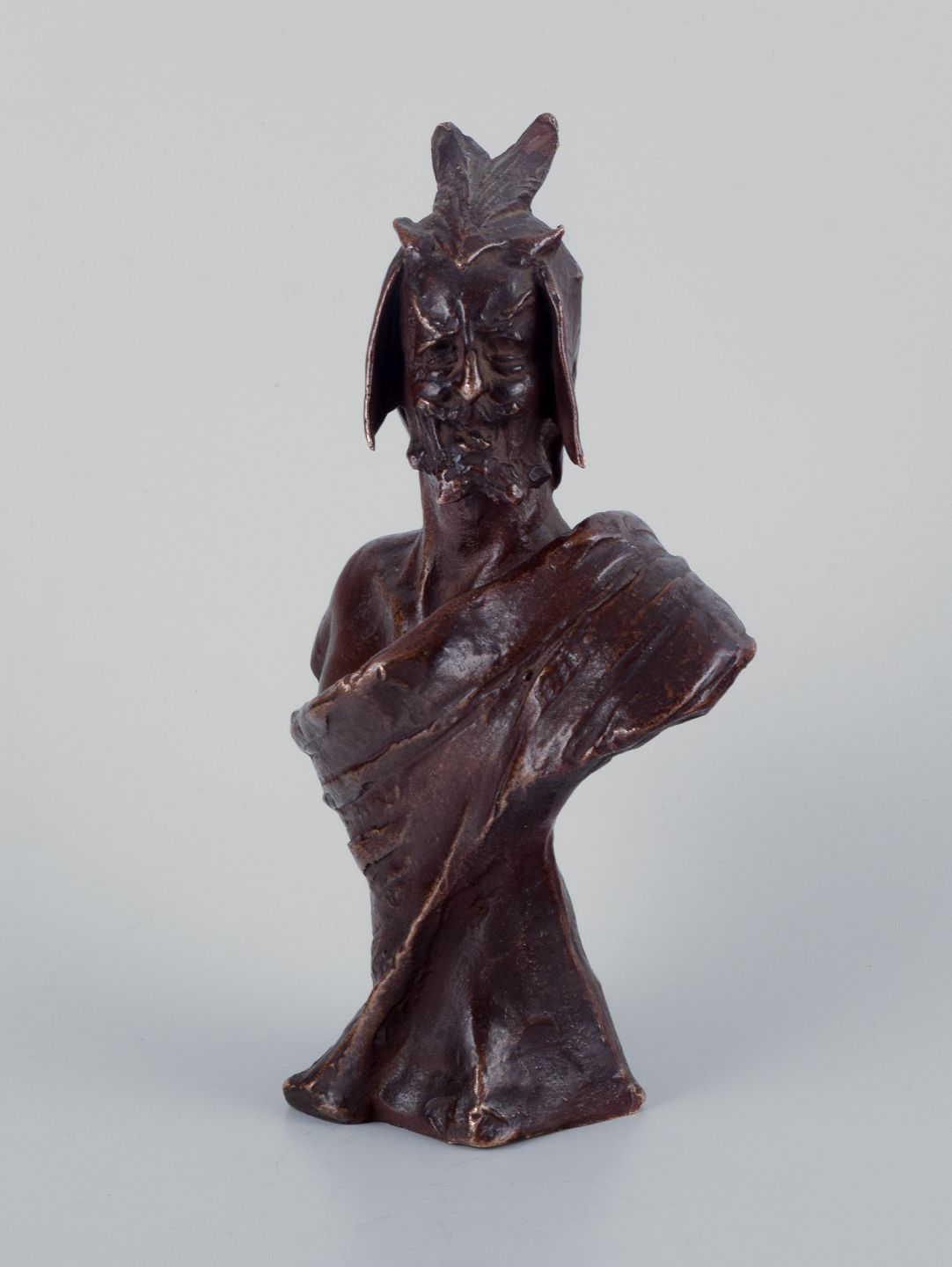 Giuseppe Moretti (1857-1935), italiensk skulptør, buste i bruneret massiv bronze forestillende Mephistopheles fra Goethes Faust.