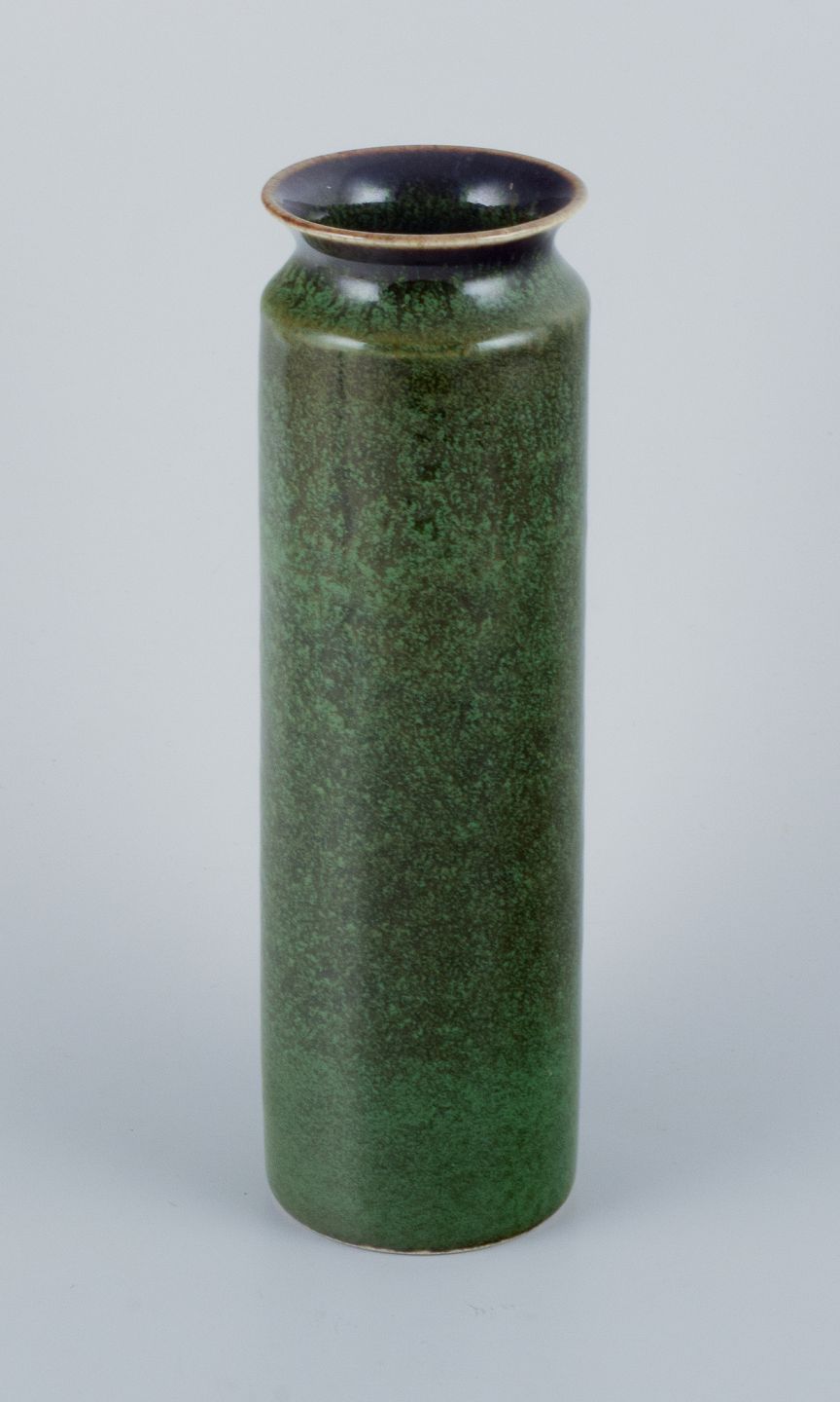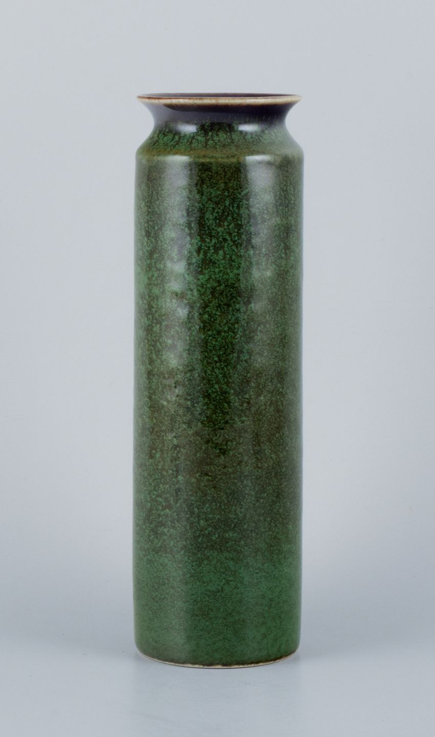 Carl Harry Stålhane for Rörstrand, stor keramikvase med glasur i grønne nuancer. Midt 1900-tallet. Perfekt stand. Første sortering. Stemplet. Mål: H 24,0 cm. x D 7,0 cm.
