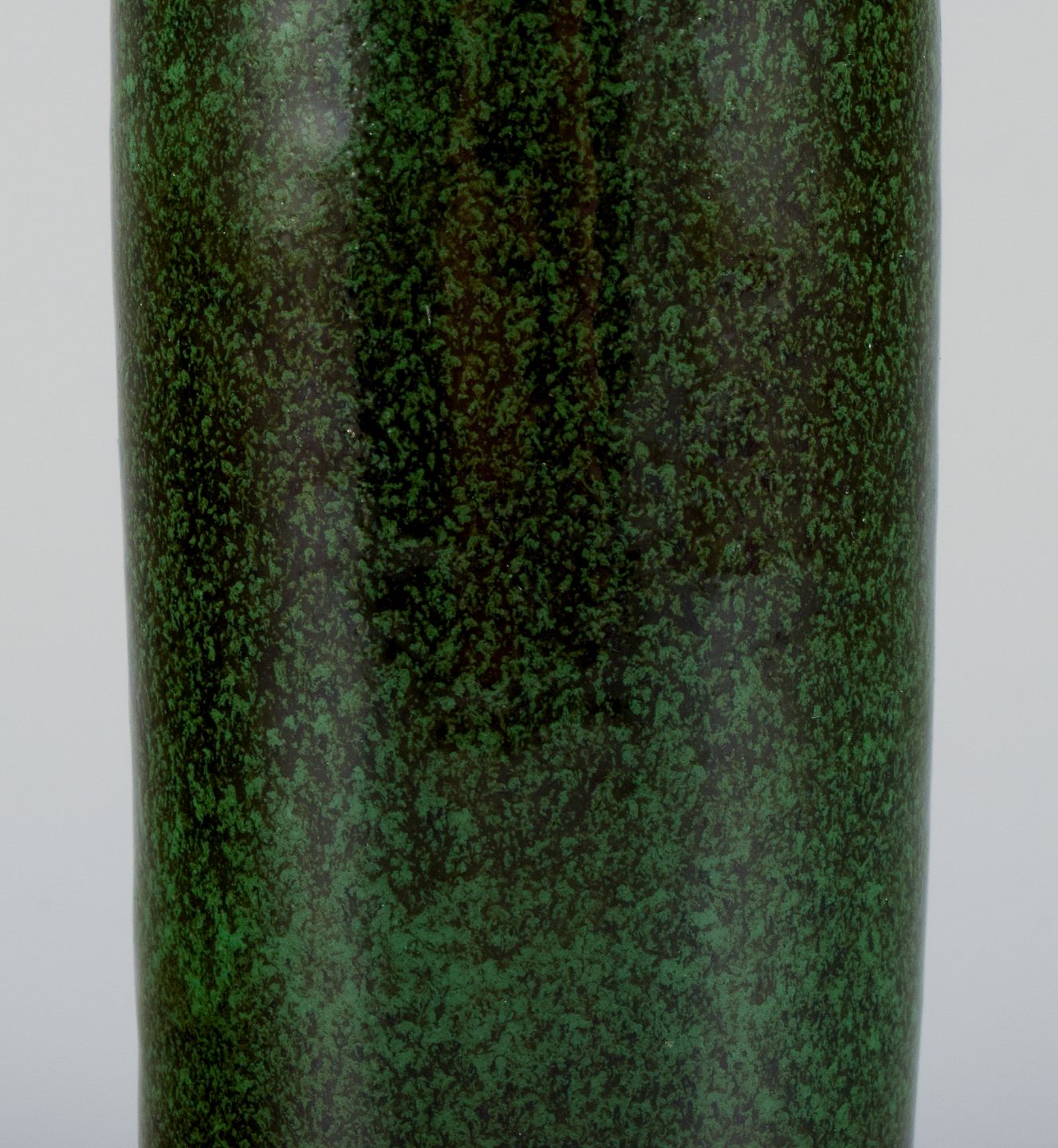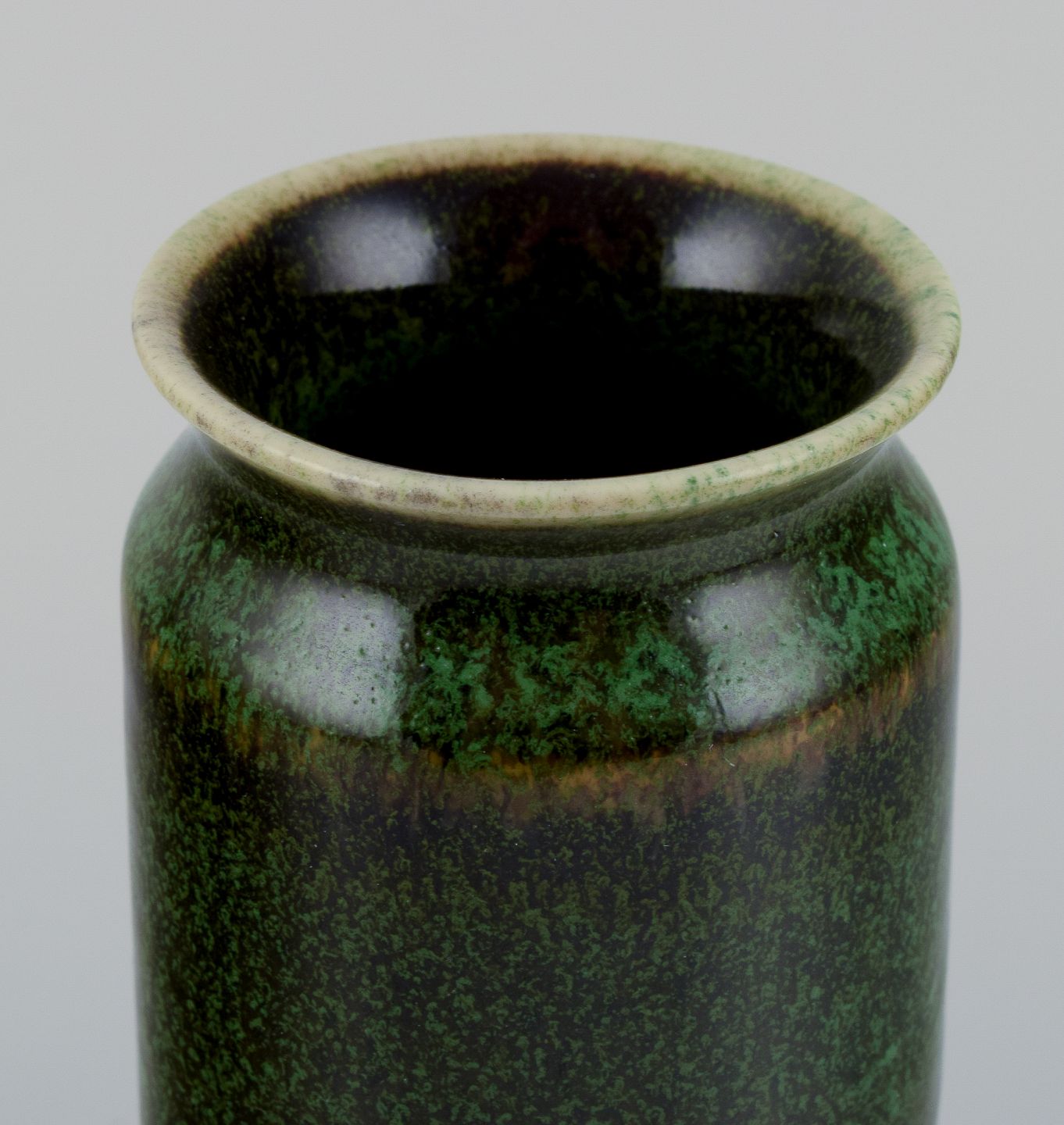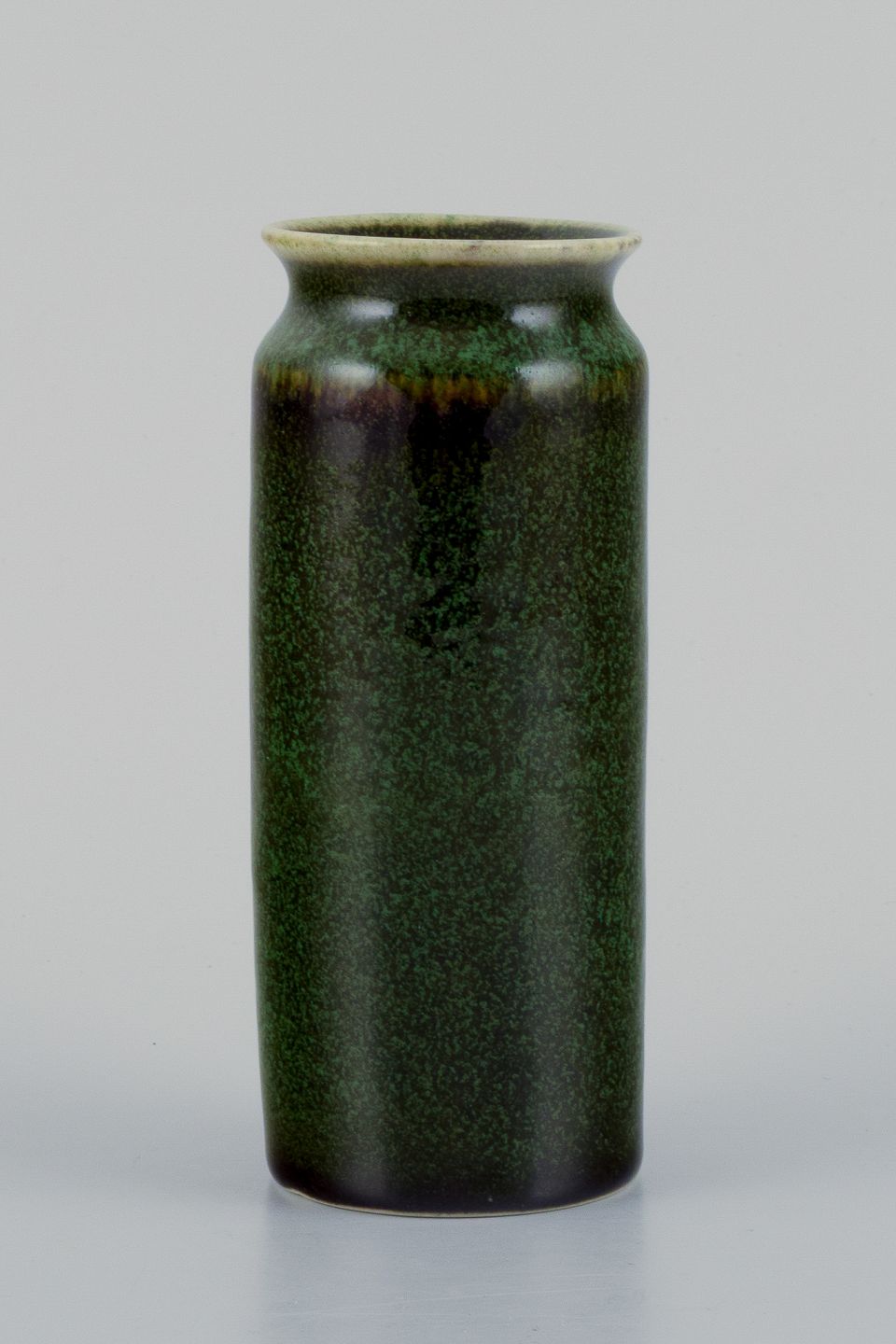 Carl Harry Stålhane for Rörstrand, keramikvase med glasur i grønbrune nuancer. Midt 1900-tallet. Stemplet Perfekt stand. Første sortering. Mål: H 12,7 x D 5,0 cm.