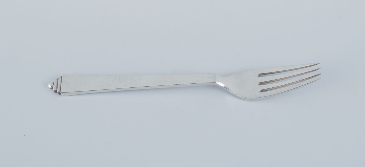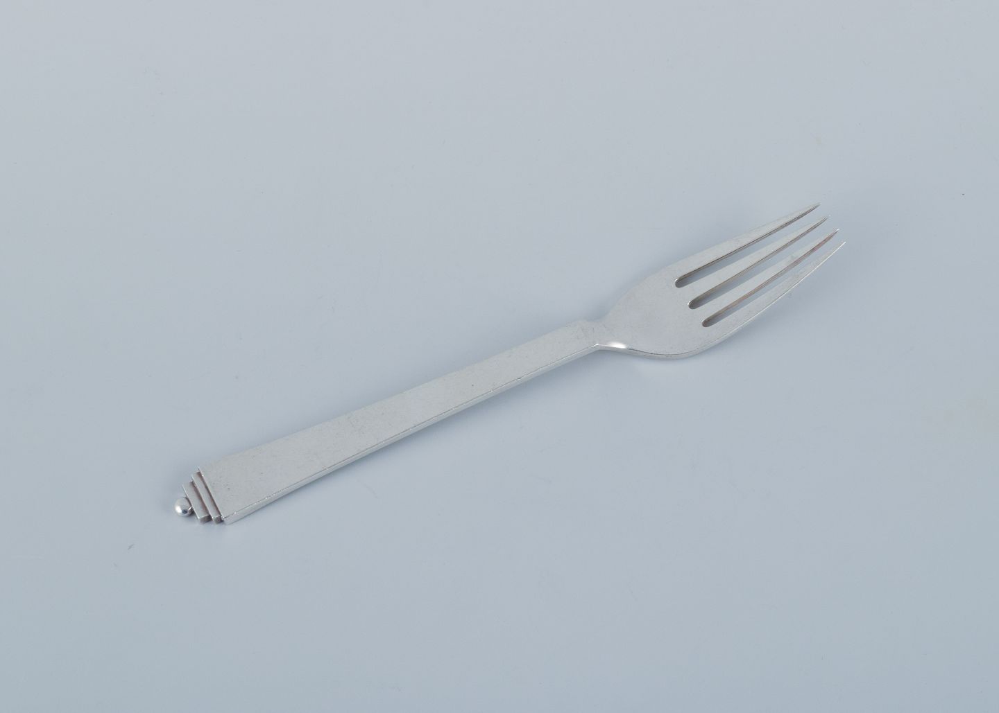 Georg Jensen Pyramide, middagsgaffel i tretårnet sølv. Stemplet med 1915-1932 stempel. I flot stand. Mål: L 19,0 cm.