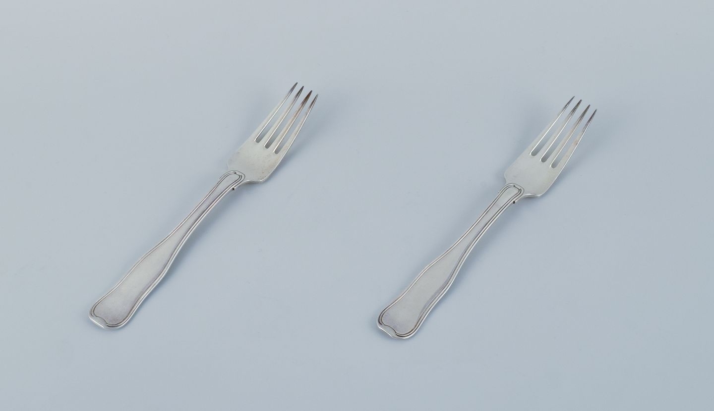 Georg Jensen Dobbeltriflet, to middagsgafler i sterlingsølv. Stemplet med efter 1944 stempel. I flot stand. Mål: 19,6 cm.