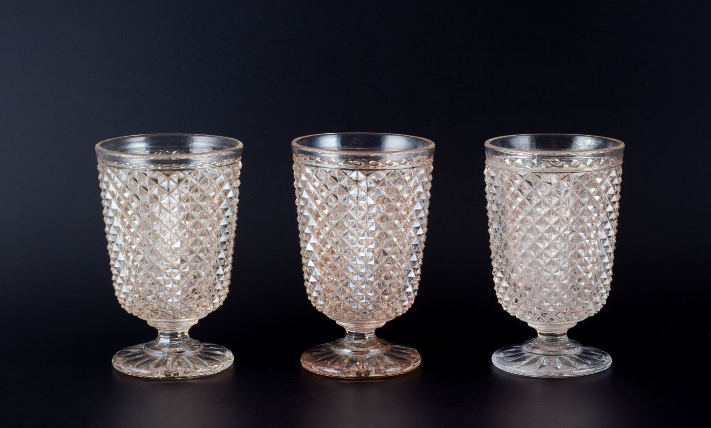 Baccarat, Frankrig, tre Art Deco vinglas i krystal. 1930/40’erne. Perfekt stand. Mål: H 11,3 cm. x D 6,9 cm.