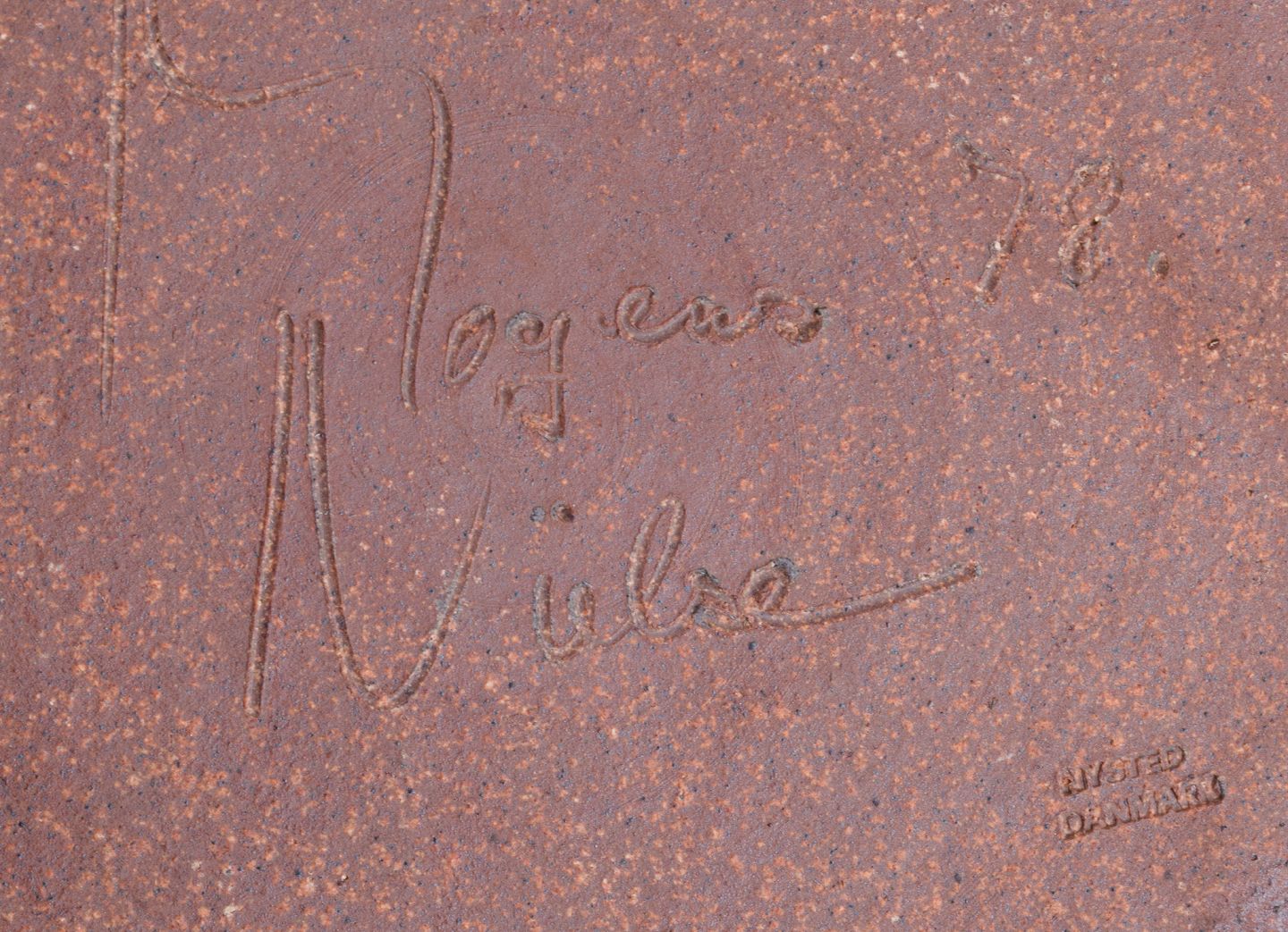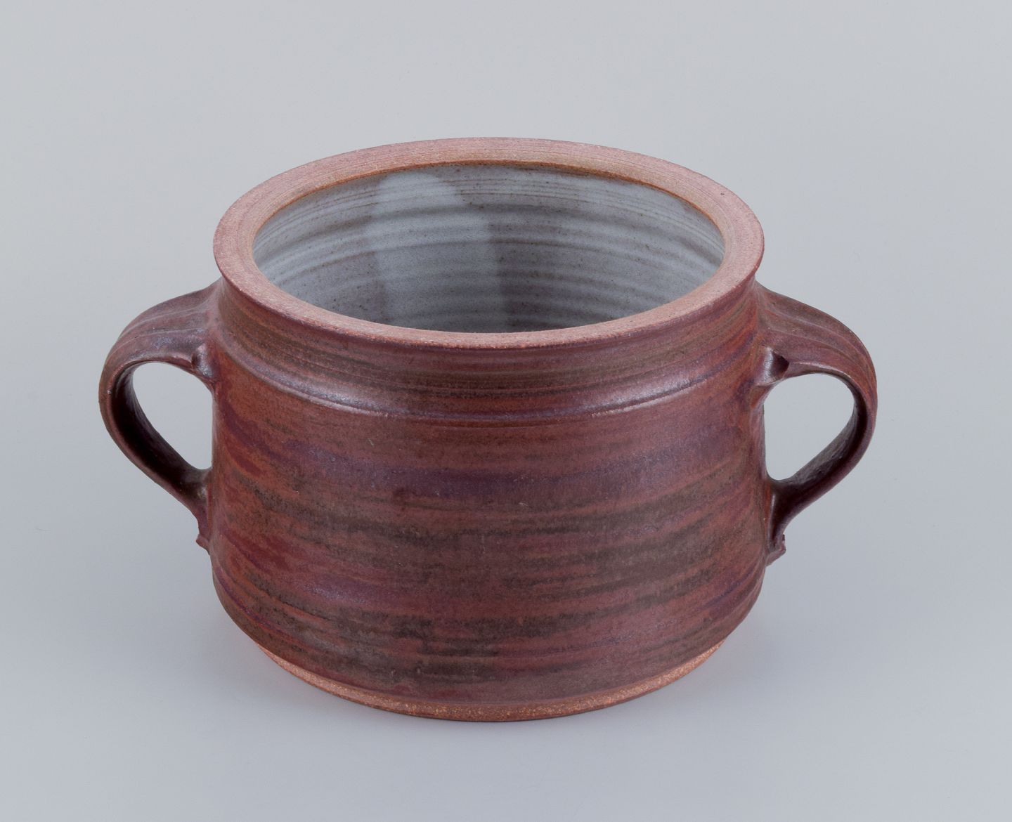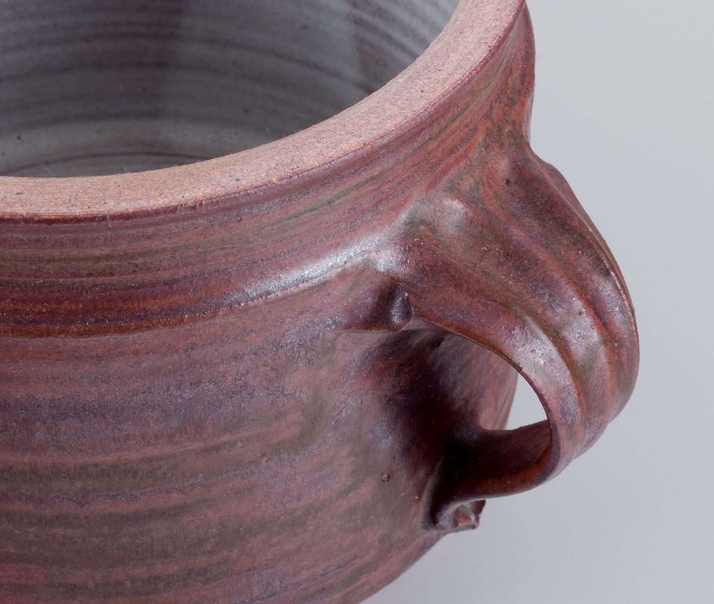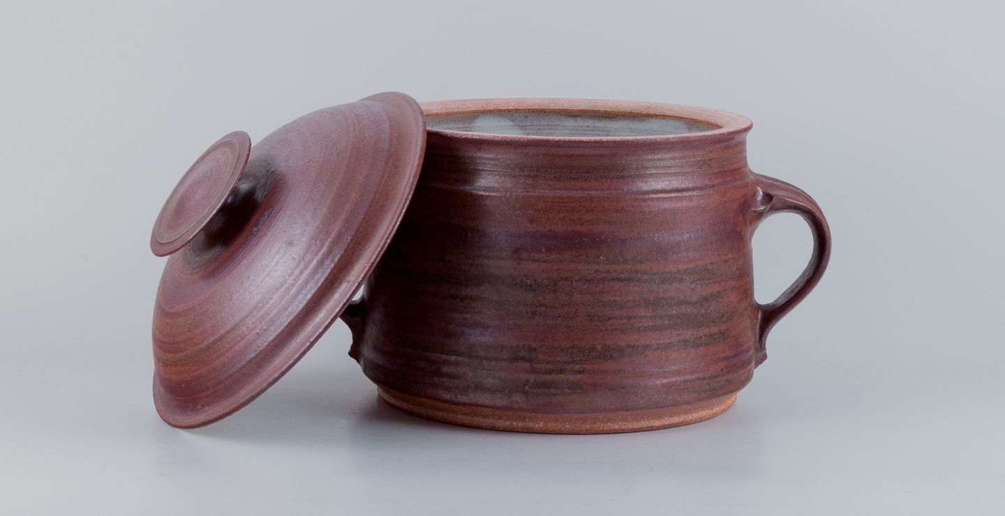 Mogens Nielsen, Nysted, kolossal håndlavet lågkrukke i keramik med glasur i brune toner.