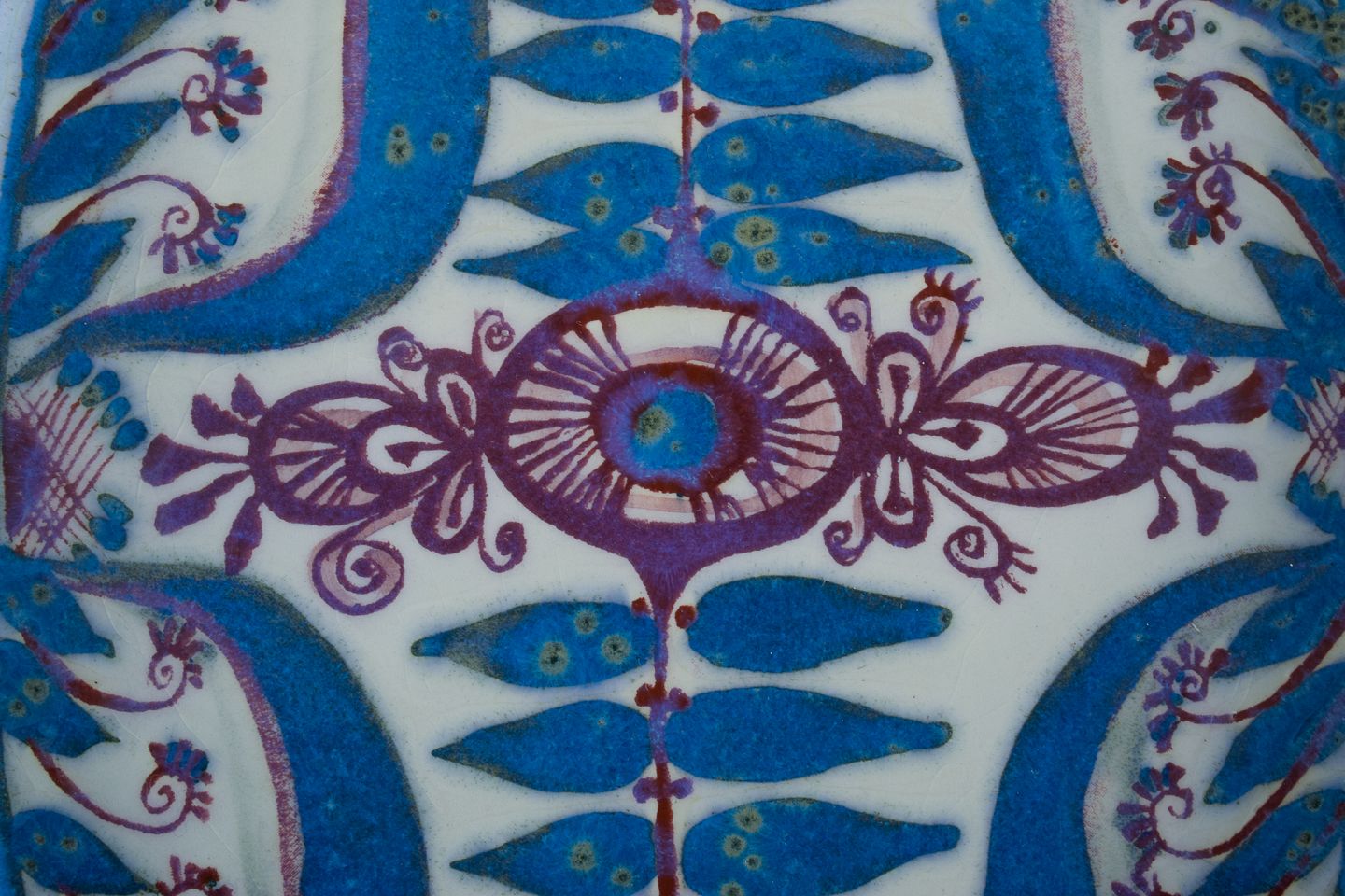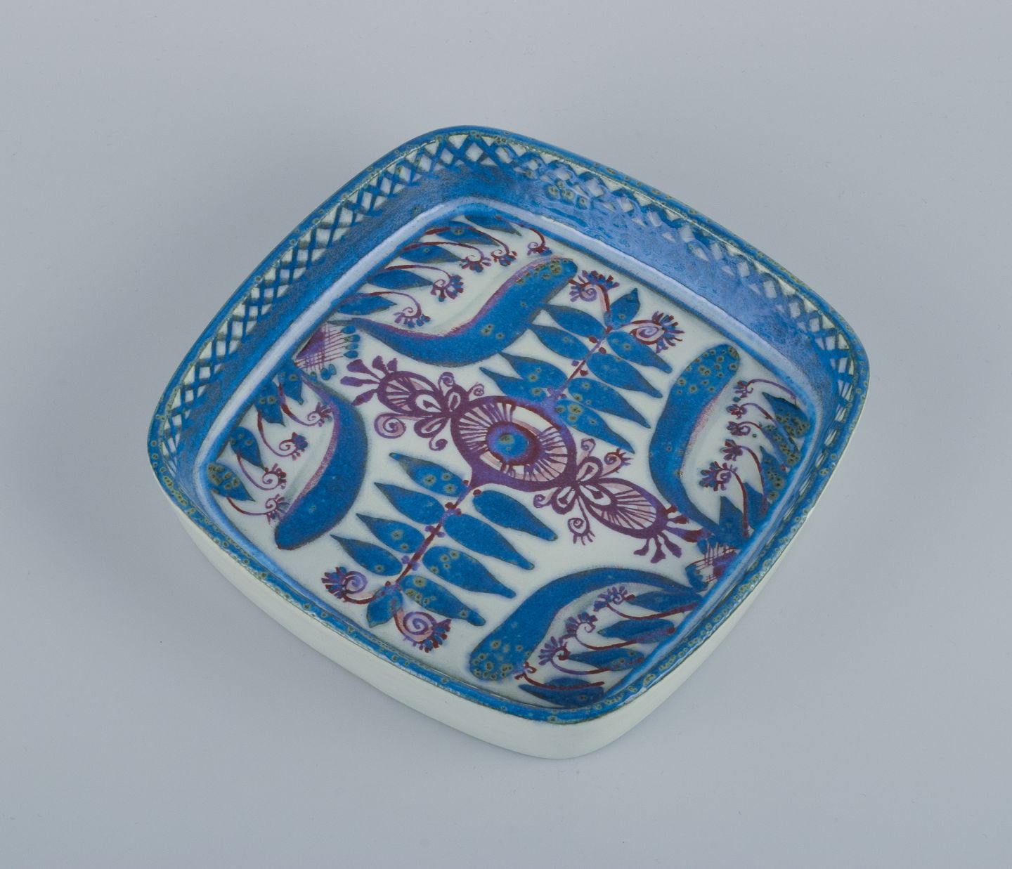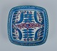 Marianne Johanson for Royal Copenhagen, Aluminia, firkantet fad i fajance hånddekoreret med blomstermotiver. 1980’erne. Stemplet. Første sortering. Perfekt stand. Mål: D 17,0 cm. x H 3,3 cm.