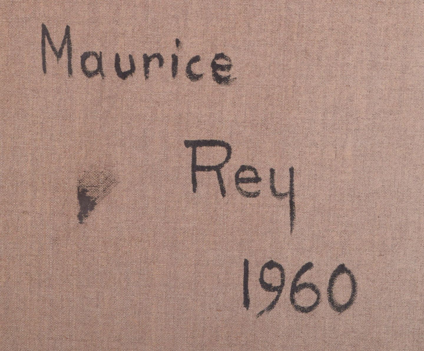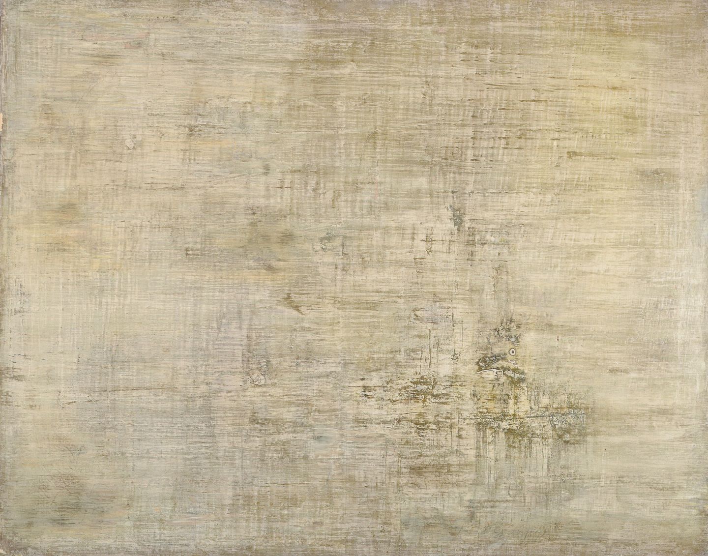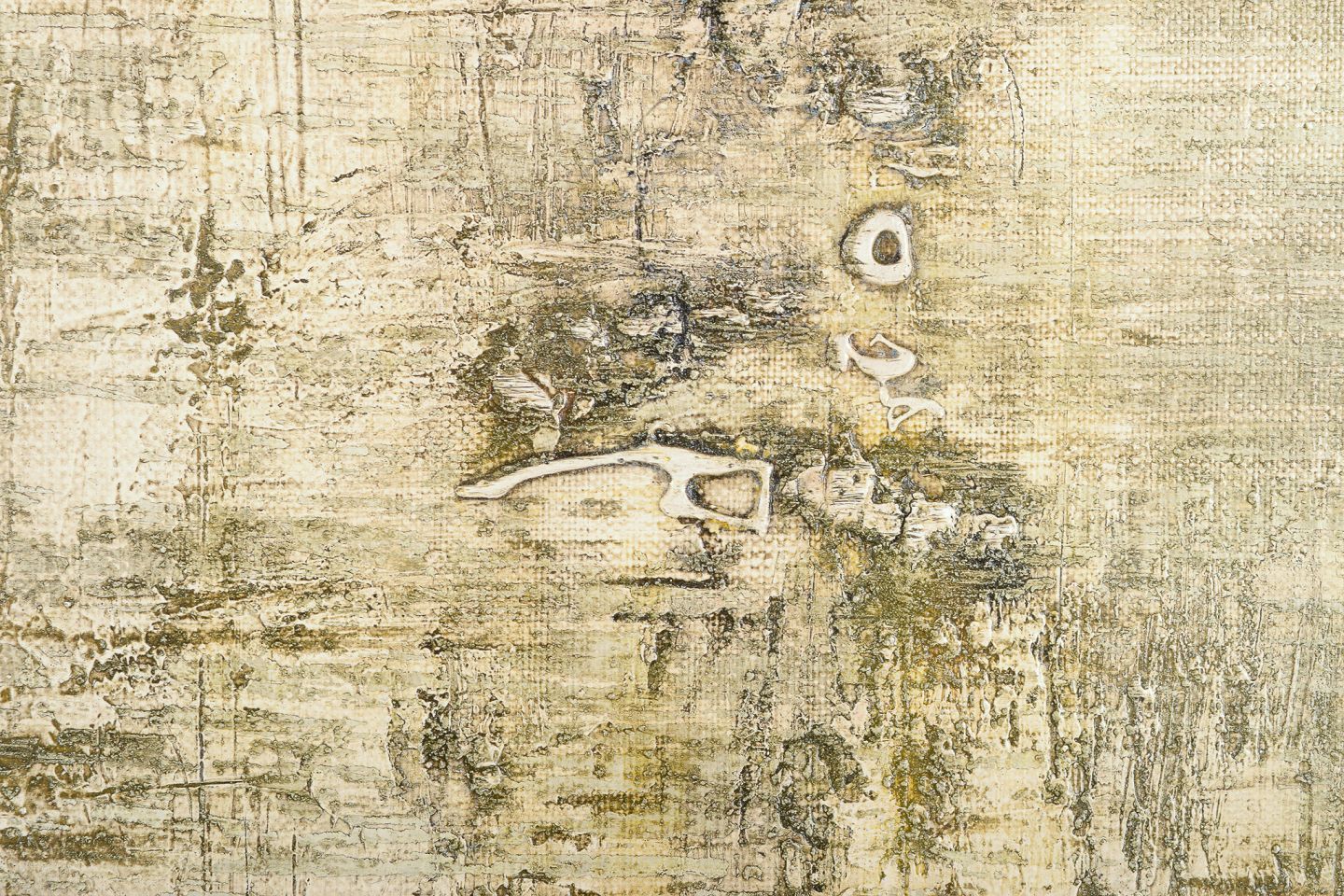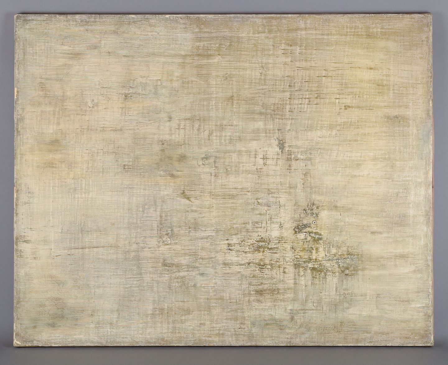 Maurice Rey (1930), fransk kunstner, olie på lærred. Abstrakt komposition. Stilrent maleri i hvide, grønne og grå toner. 1960. Signeret på bagside. I flot stand. Mål: B 92,0 cm. x H 73,0 cm.