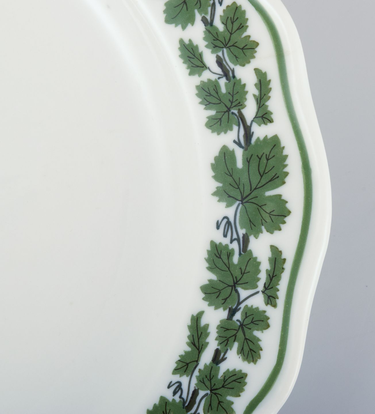 Meissen, Tyskland, Green Ivy Vine, ni tallerkner. Håndmalet. 1930/40’erne. Stemplet. Fem tallerkner i første sortering. Fire tallerkner i tredje sortering. I flot stand. Mål: D 17,6 cm.