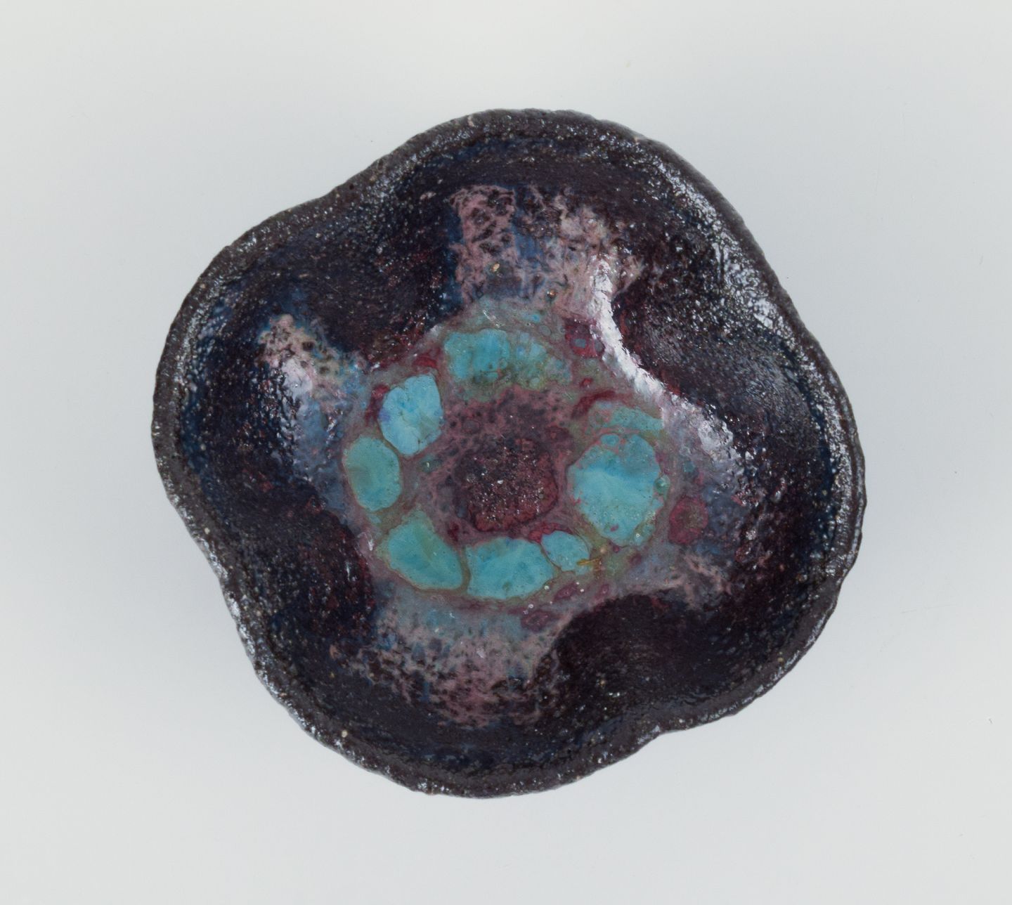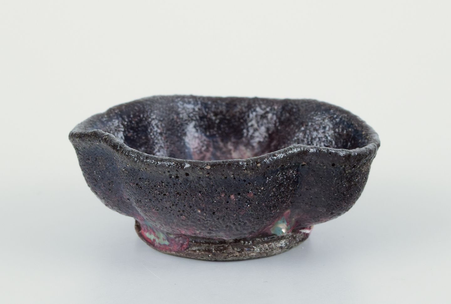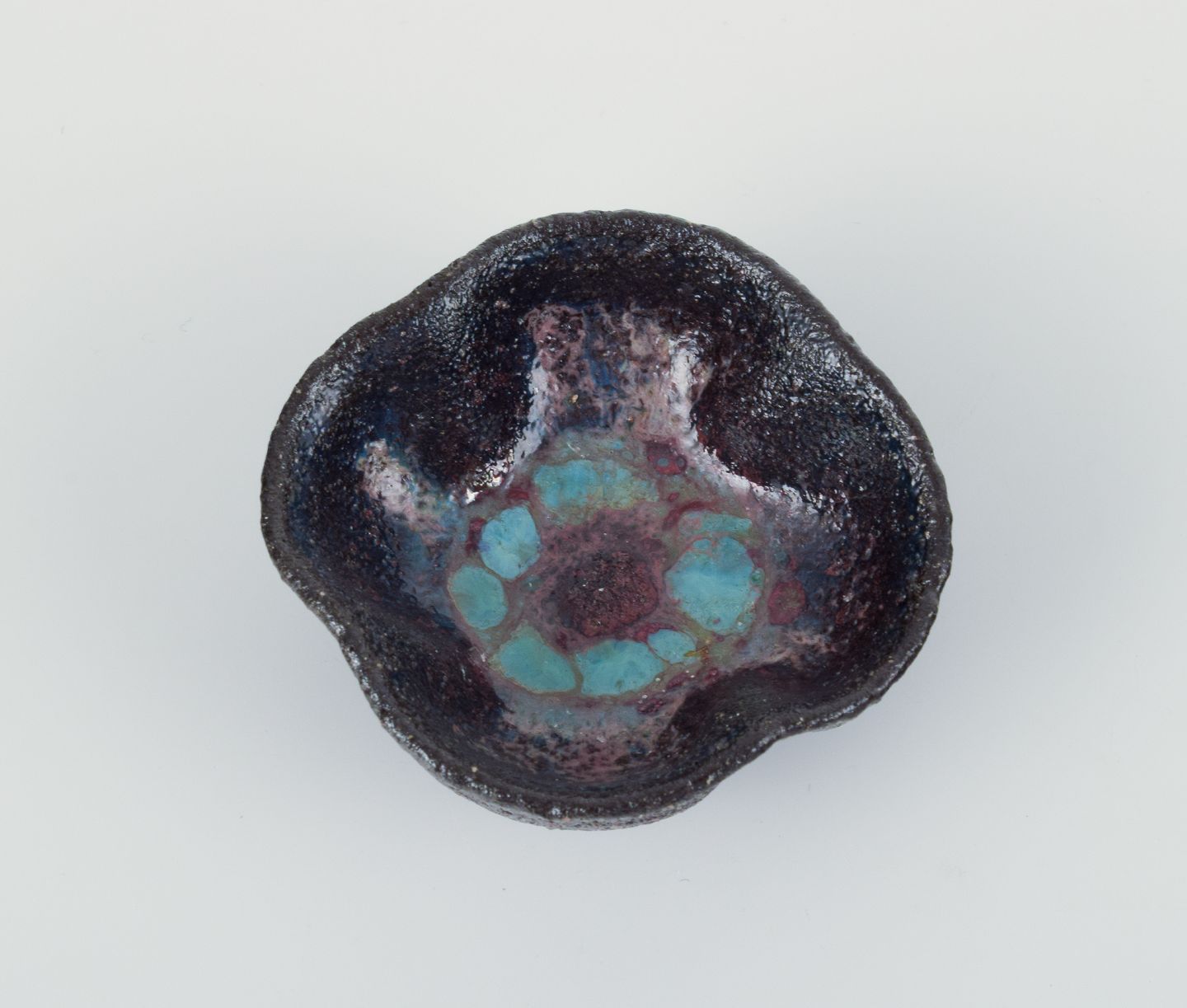 Gutte Eriksen (1918-2008), dansk keramiker. Lille unika keramikskål i raku-teknik.