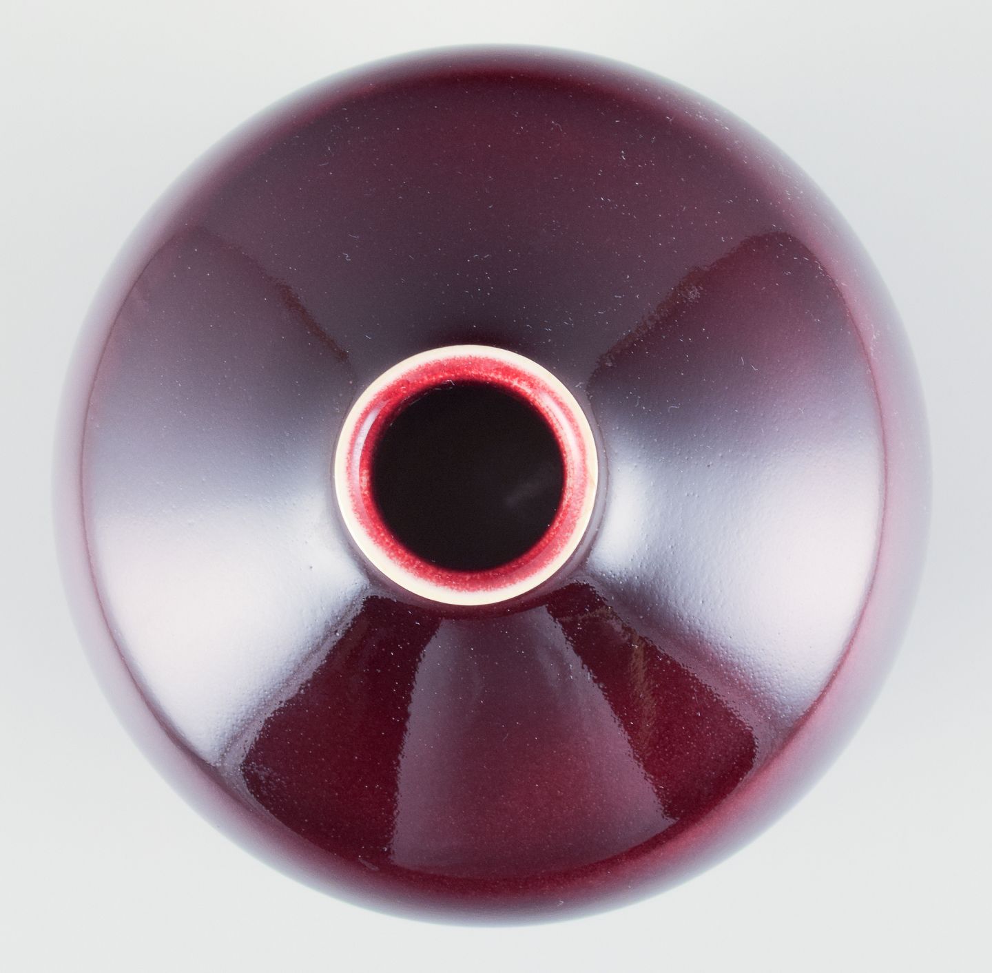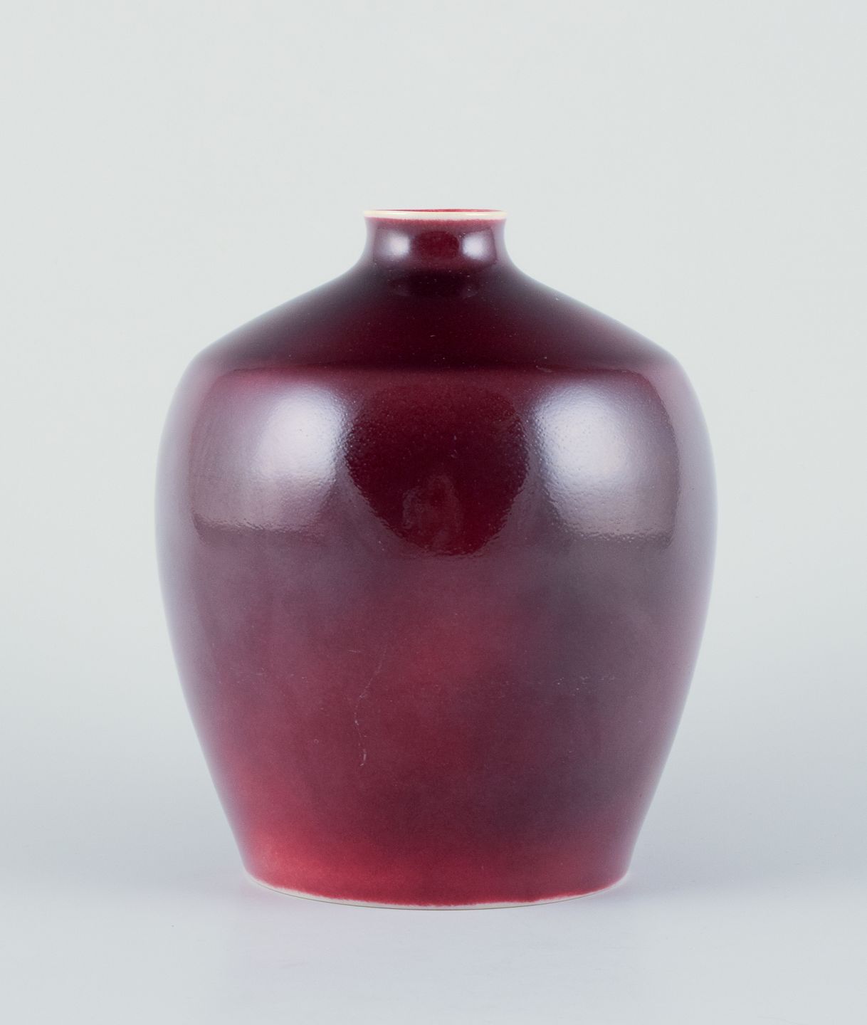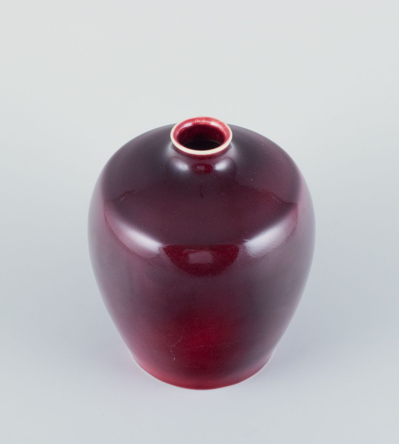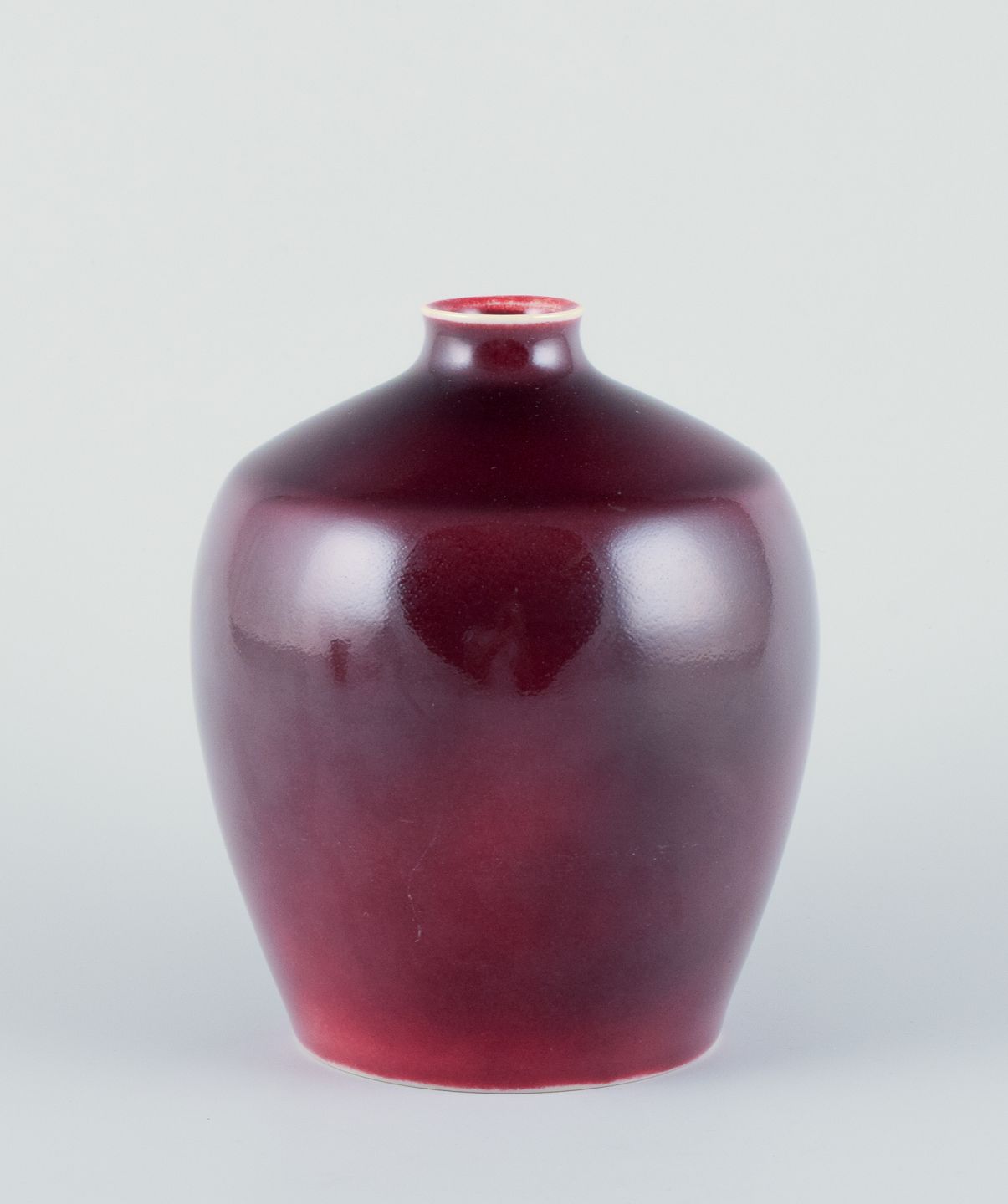 Bing & Grøndahl porcelænsvase dekoreret med okseblodsglasur. Ca. 1930’erne. Modelnummer 770. Stemplet. Perfekt stand. Første sortering. Mål: H 15,0 cm. x 11,0 cm.