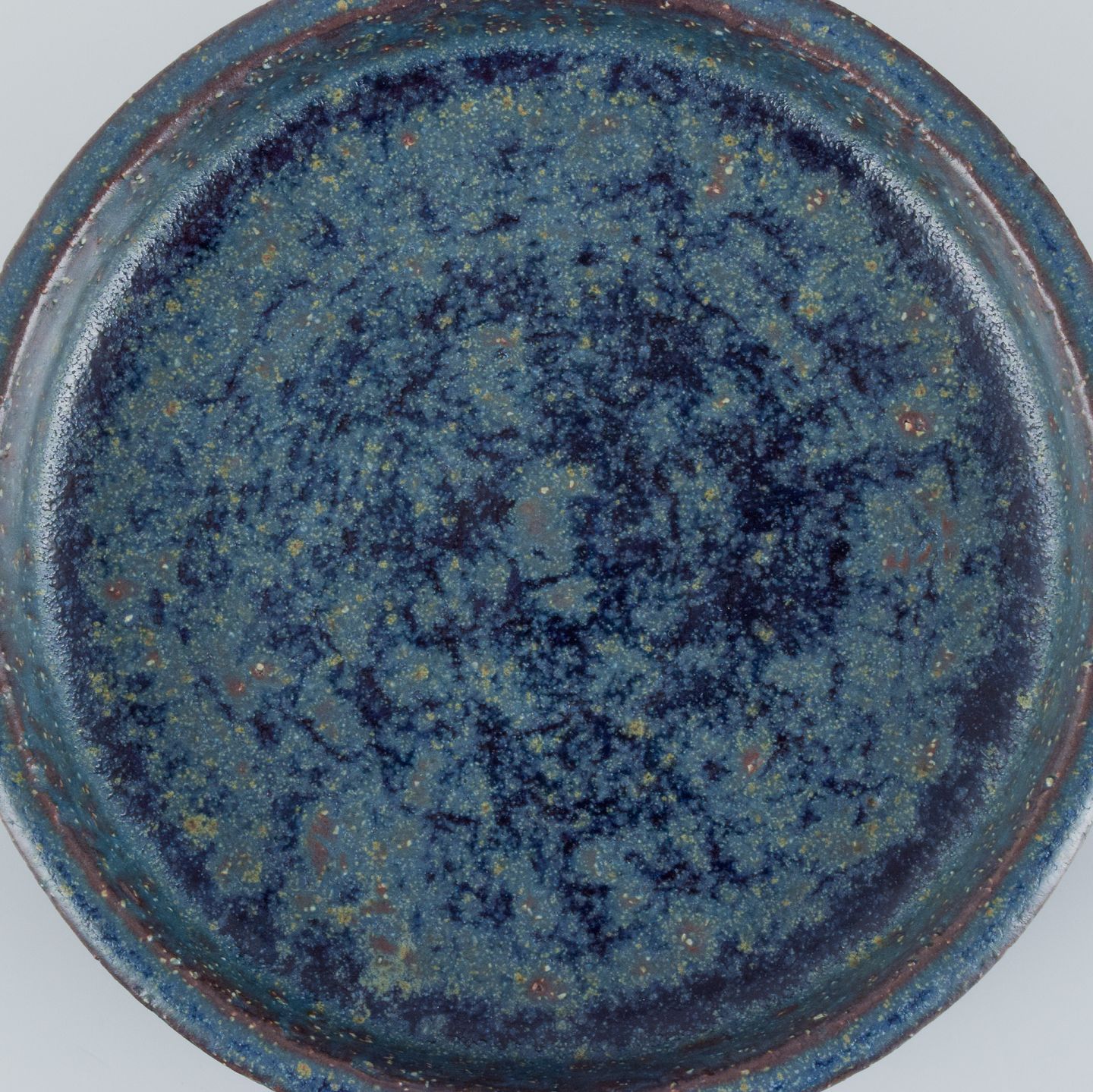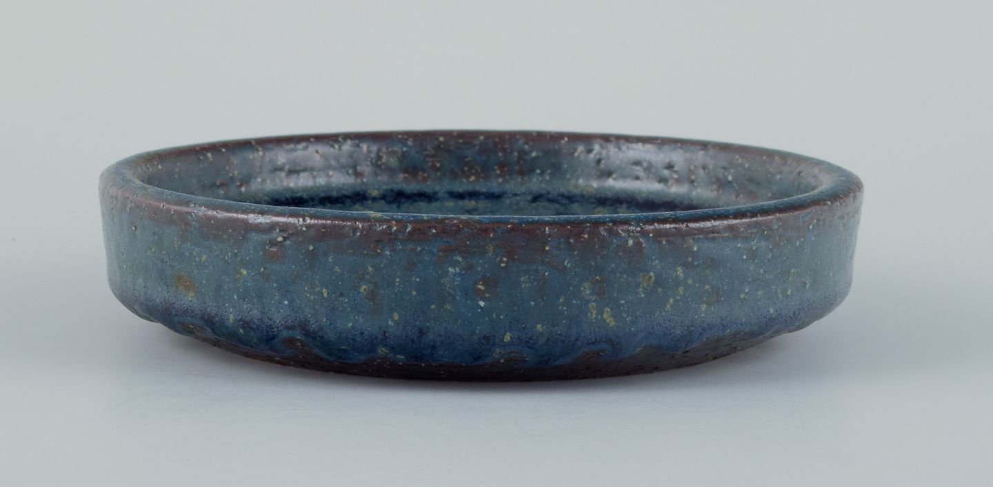 Per Linnemann-Schmidt for Palshus, Danmark. Keramikskål med glasur i blå nuancer. 1970’erne. Perfekt stand. Stemplet. Mål: D 14,5 cm x H 3,0 cm.