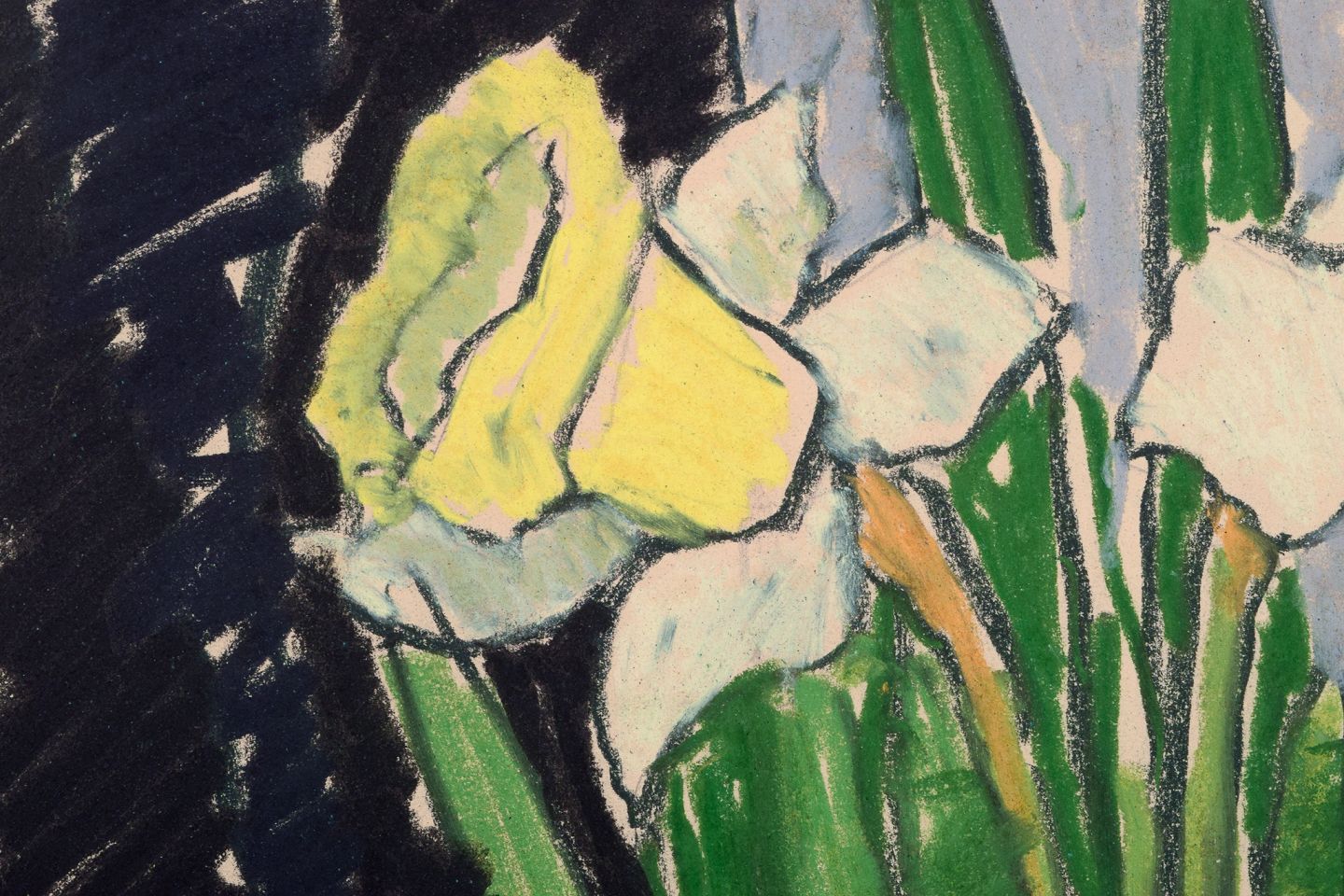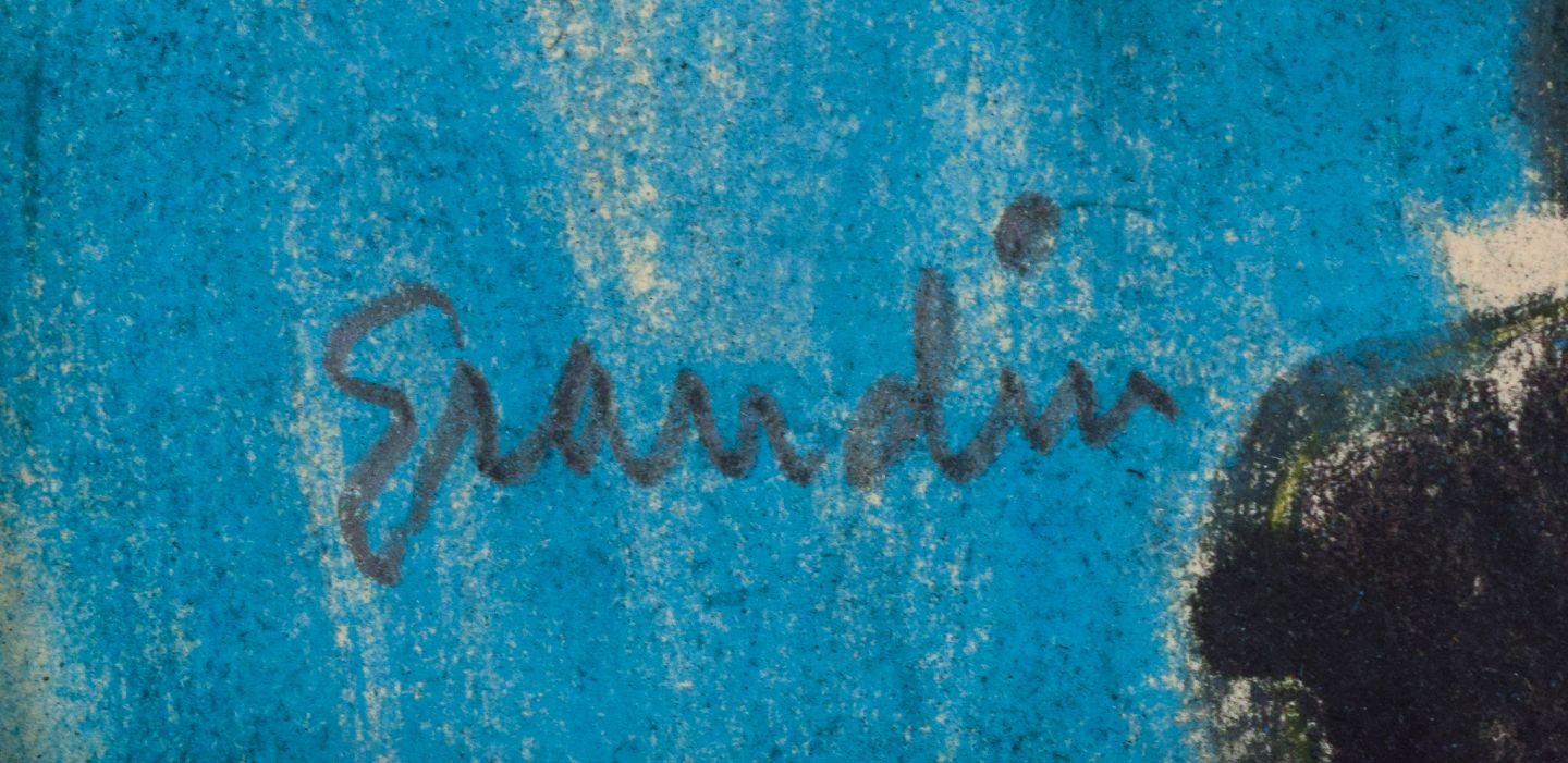 Svän Grandin (1906-1982), svensk kunstner. Mixed media på papir. Blomsteropstilling i modernistisk stil. 1960'erne. Perfekt stand. Lysmål: 36,0 cm. x 42,5 cm. Totalmål: 53,0 cm. x 60,0 cm.