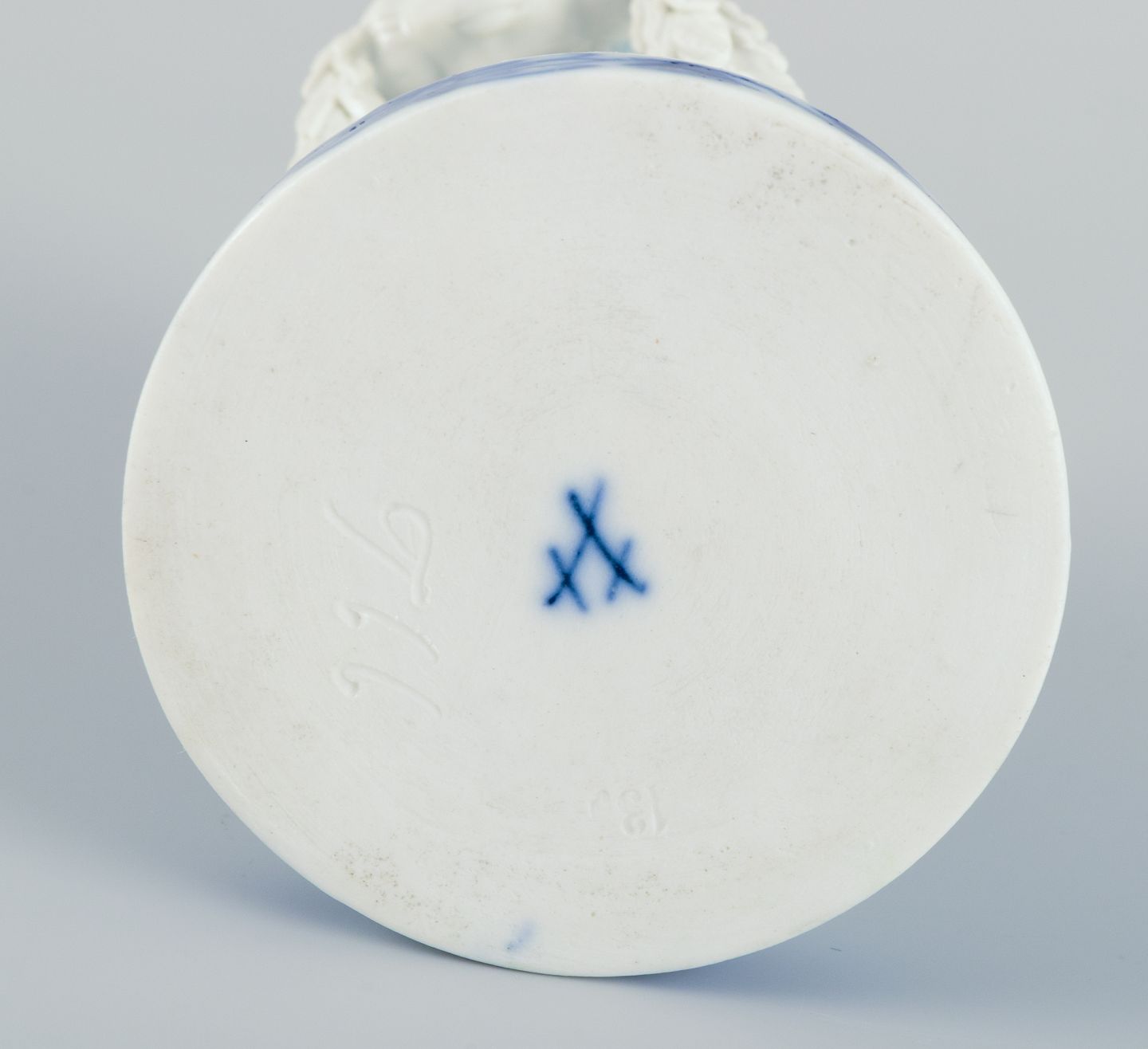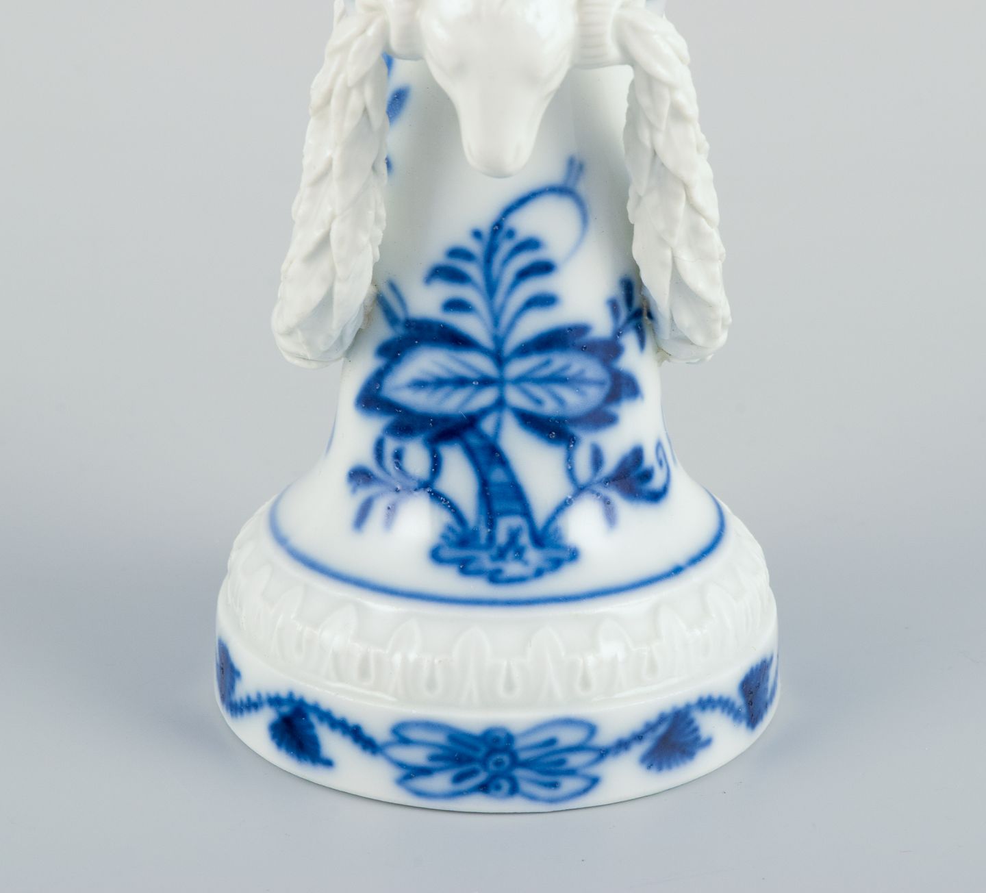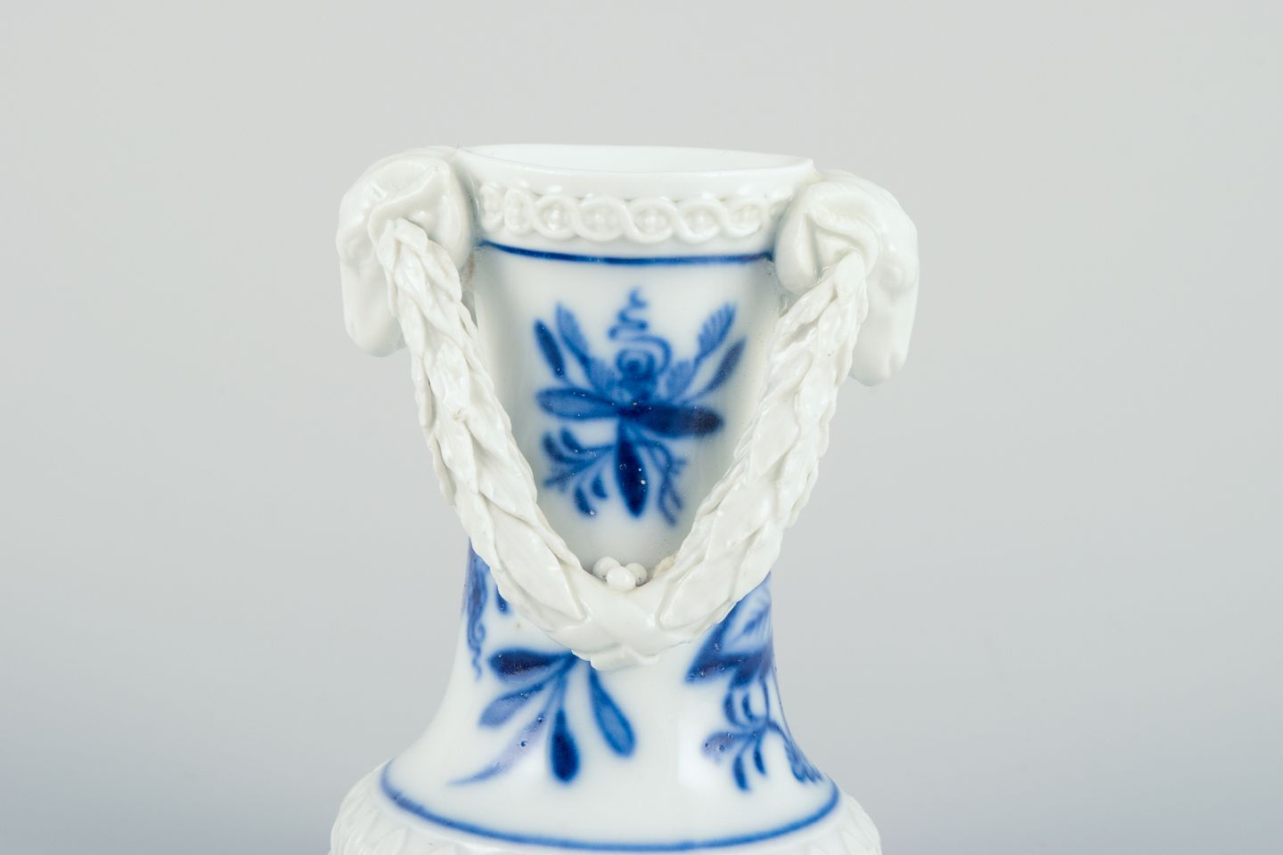 Meissen, Tyskland. Sjælden løgmønstret miniaturevase med vædderhoveder. Tidlig 1900-tallet. Første sortering. Perfekt stand. Stemplet. Mål: H 8,0 cm. x D 5,6 cm.