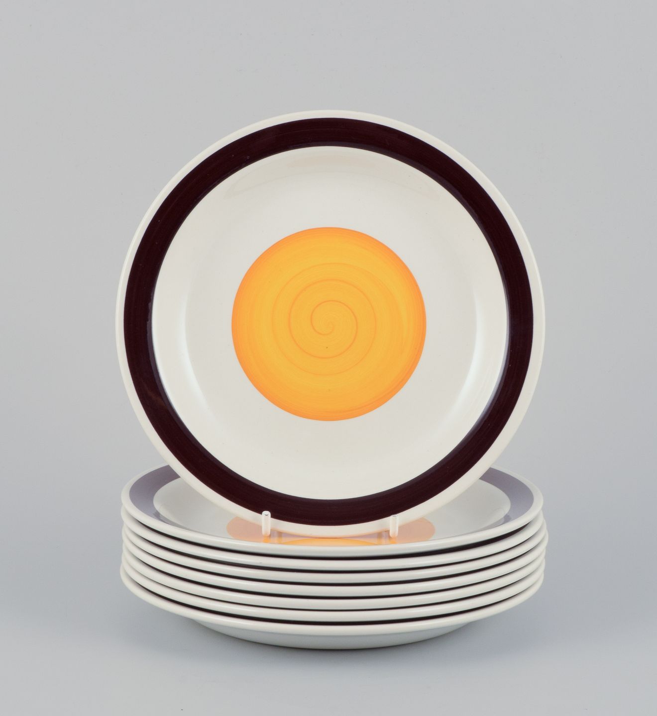 Carl Harry Stålhane (1920-1990) for Rörstrand, Sverige. Et sæt på otte ”Solöga” tallerkner i fajance.