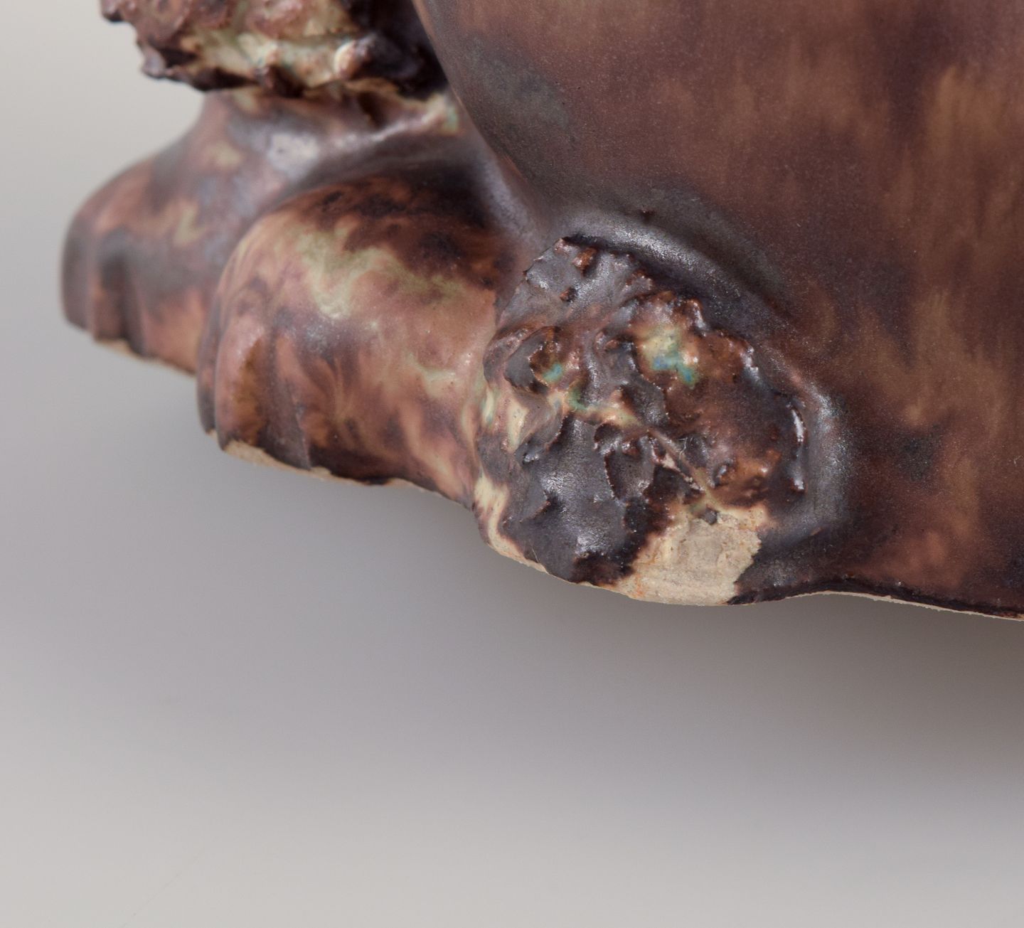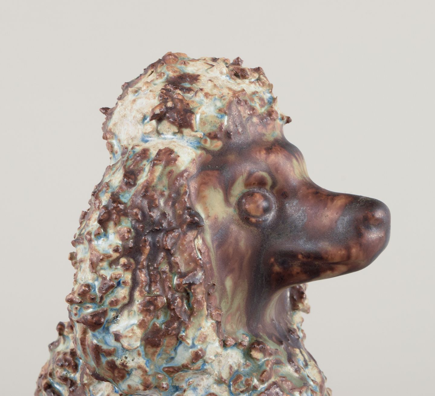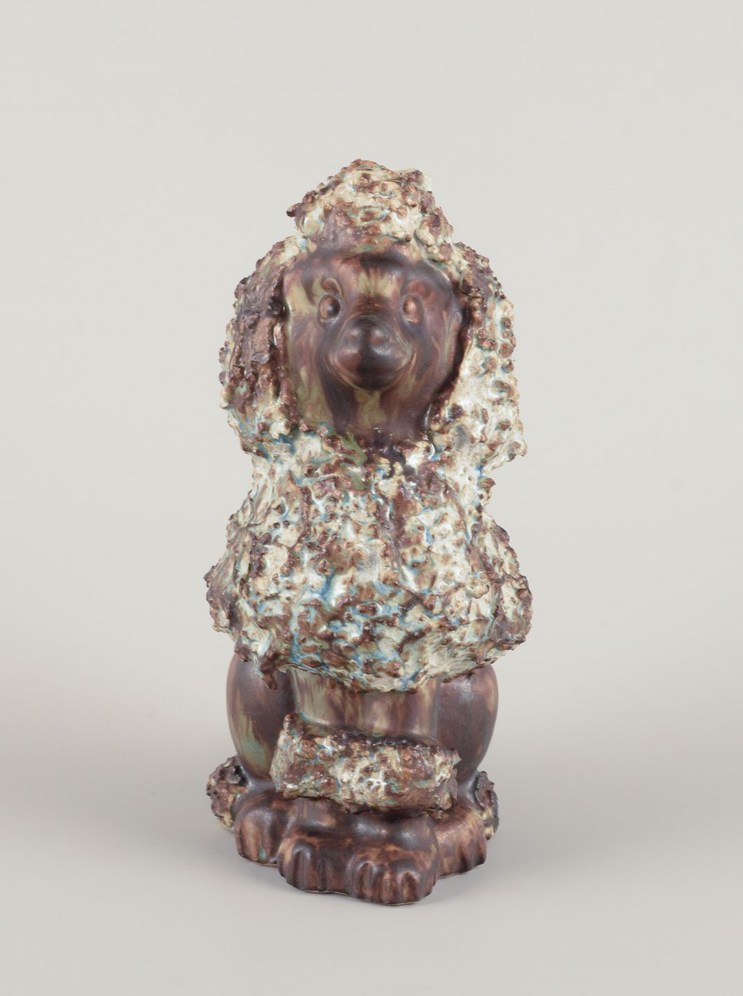 EGO Stengods, Sverige. Keramikfigur af kongepuddel. Glasur i brungrønne toner. 1970/80’erne. Stemplet. I flot stand med enkelt mindre afslag. Mål: L 11,0 cm. x B 8,0 cm. x H 18,0 cm.