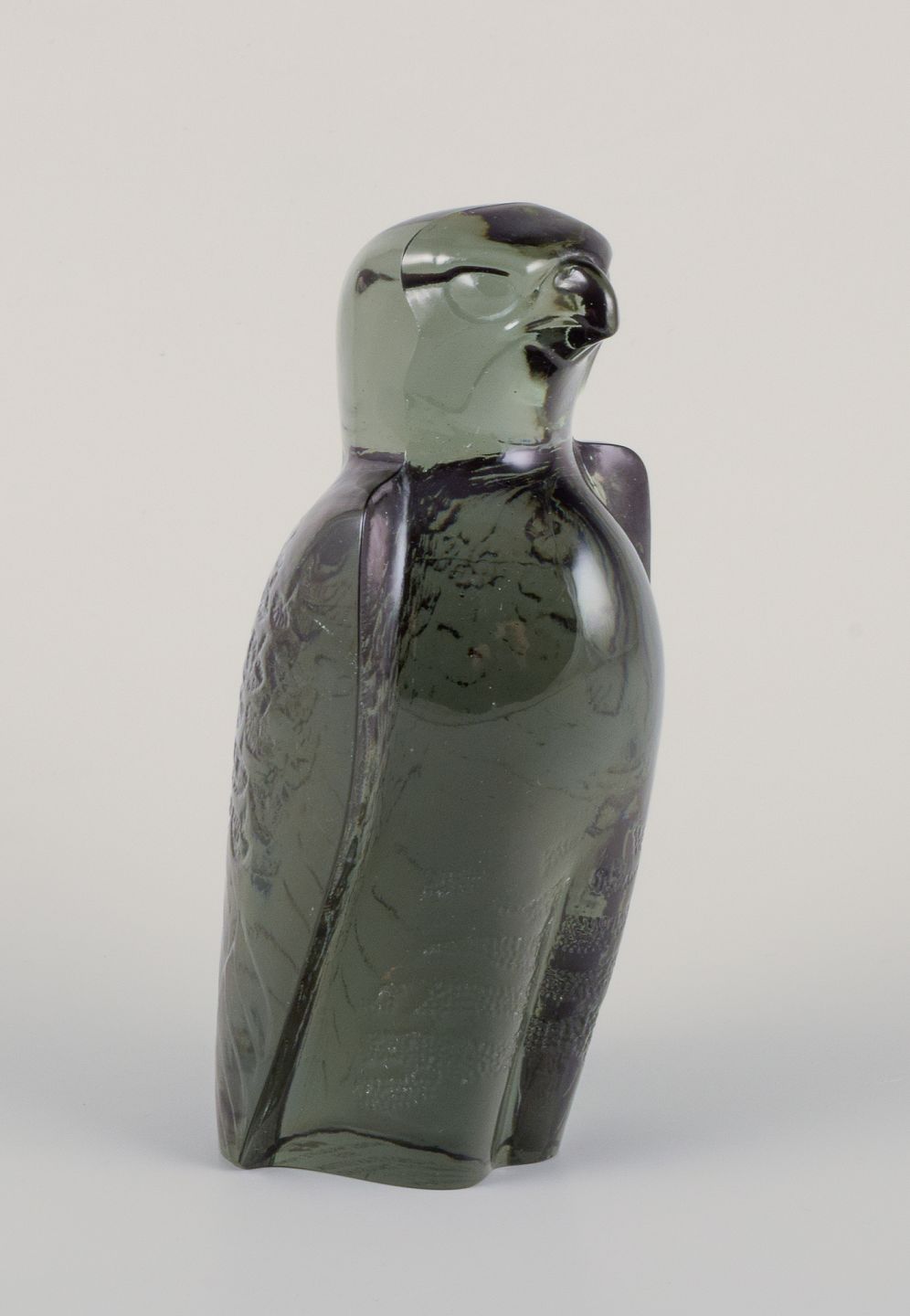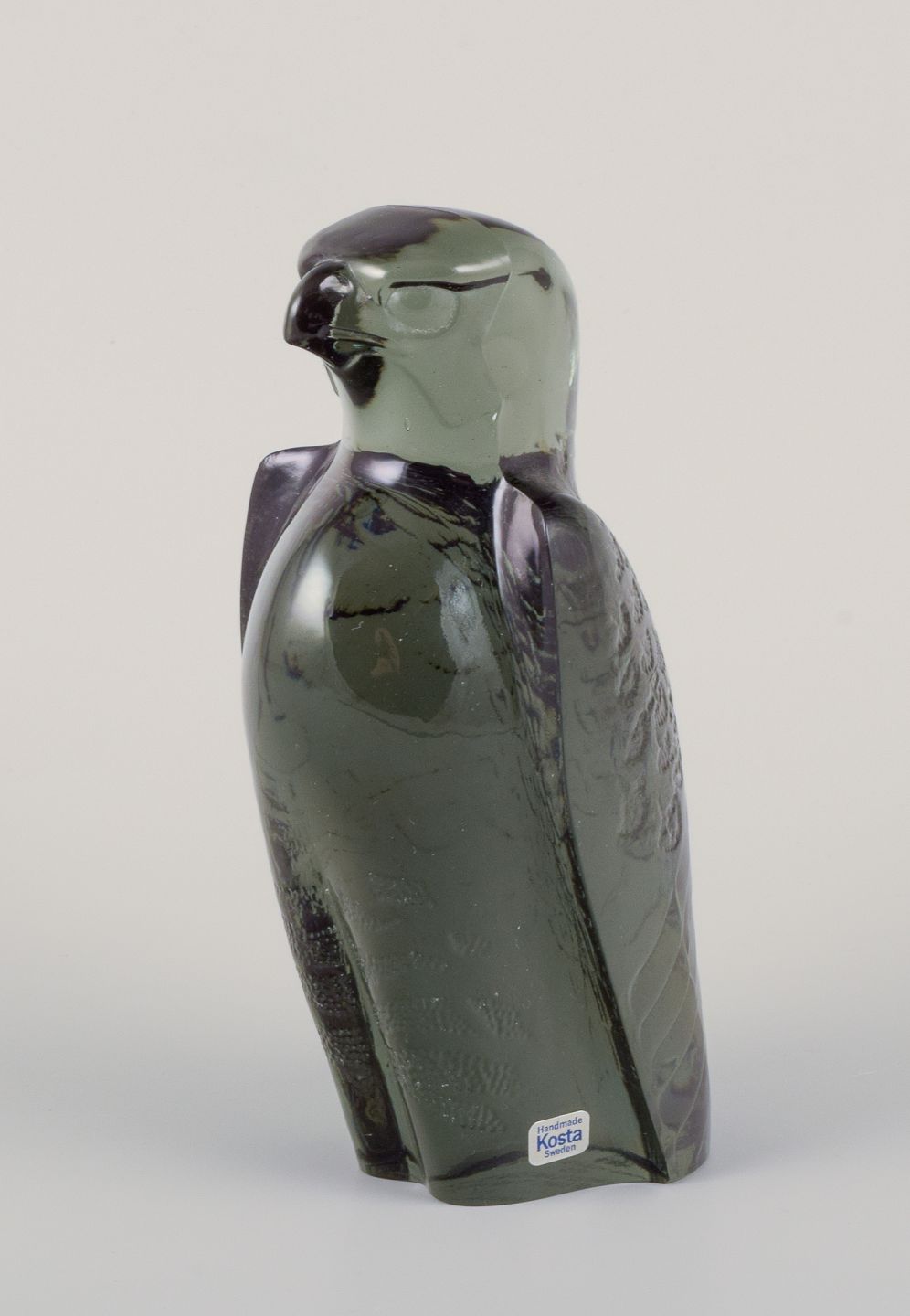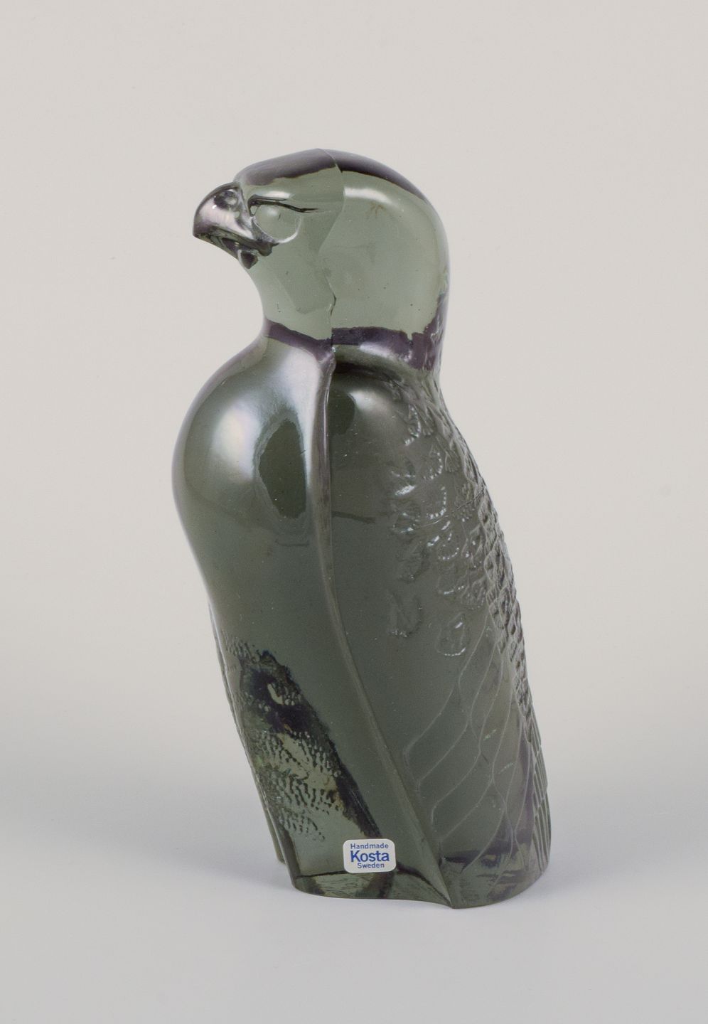 Paul Hoff for Kosta Boda. Falk i røgfarvet kunstglas. 1975. I perfekt stand. Stemplet samt mærkat. Ltd. Edition. Mål: H 17,0 cm. x B 8,0 cm.