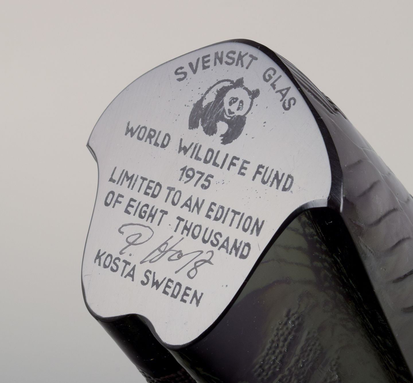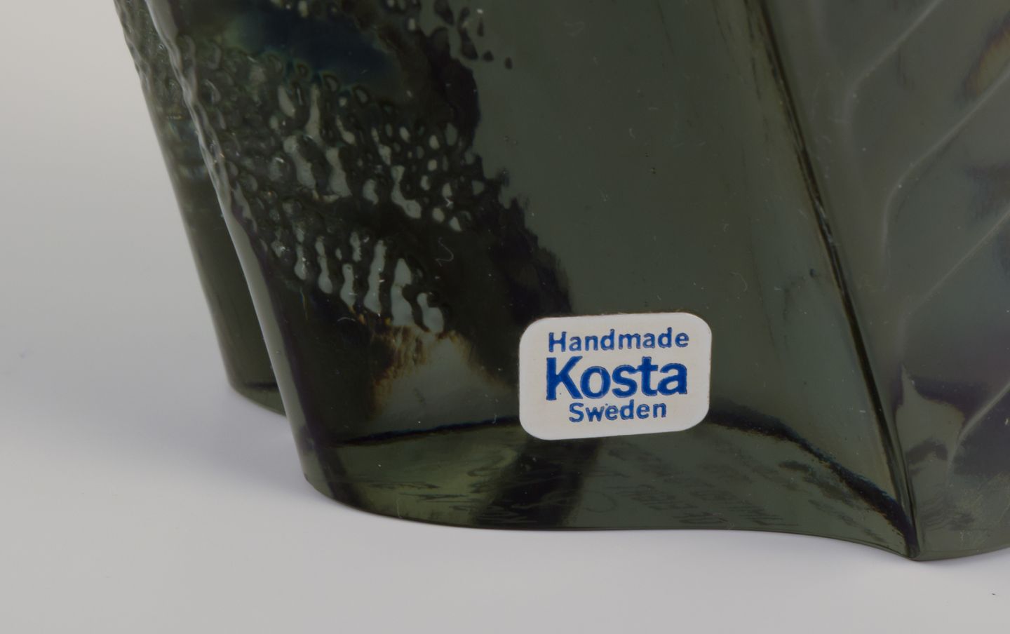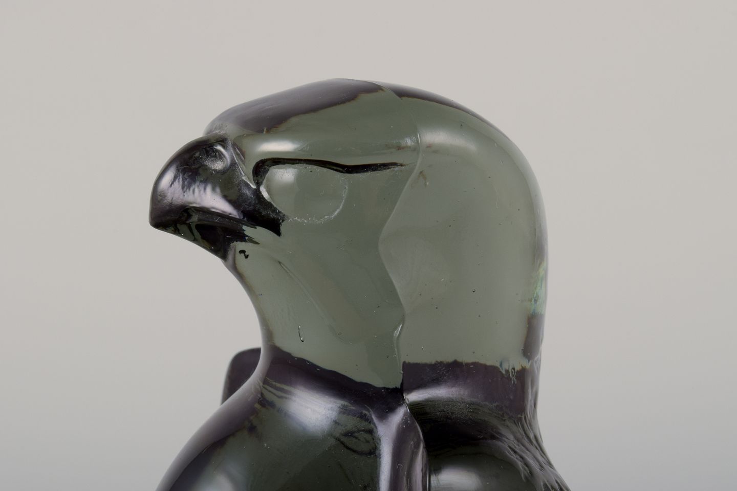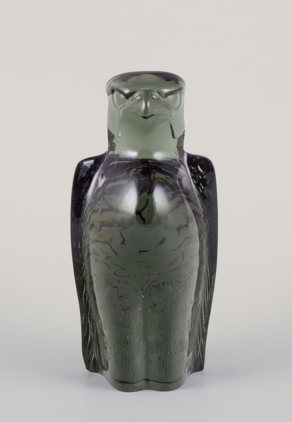 Paul Hoff for Kosta Boda. Falk i røgfarvet kunstglas. 1975. I perfekt stand. Stemplet samt mærkat. Ltd. Edition. Mål: H 17,0 cm. x B 8,0 cm.