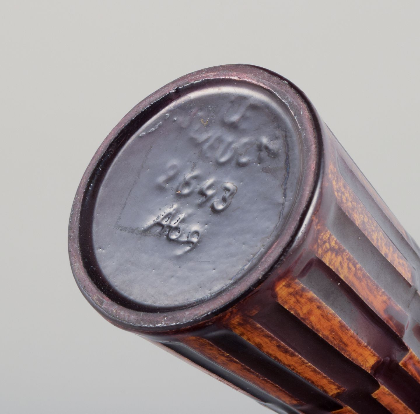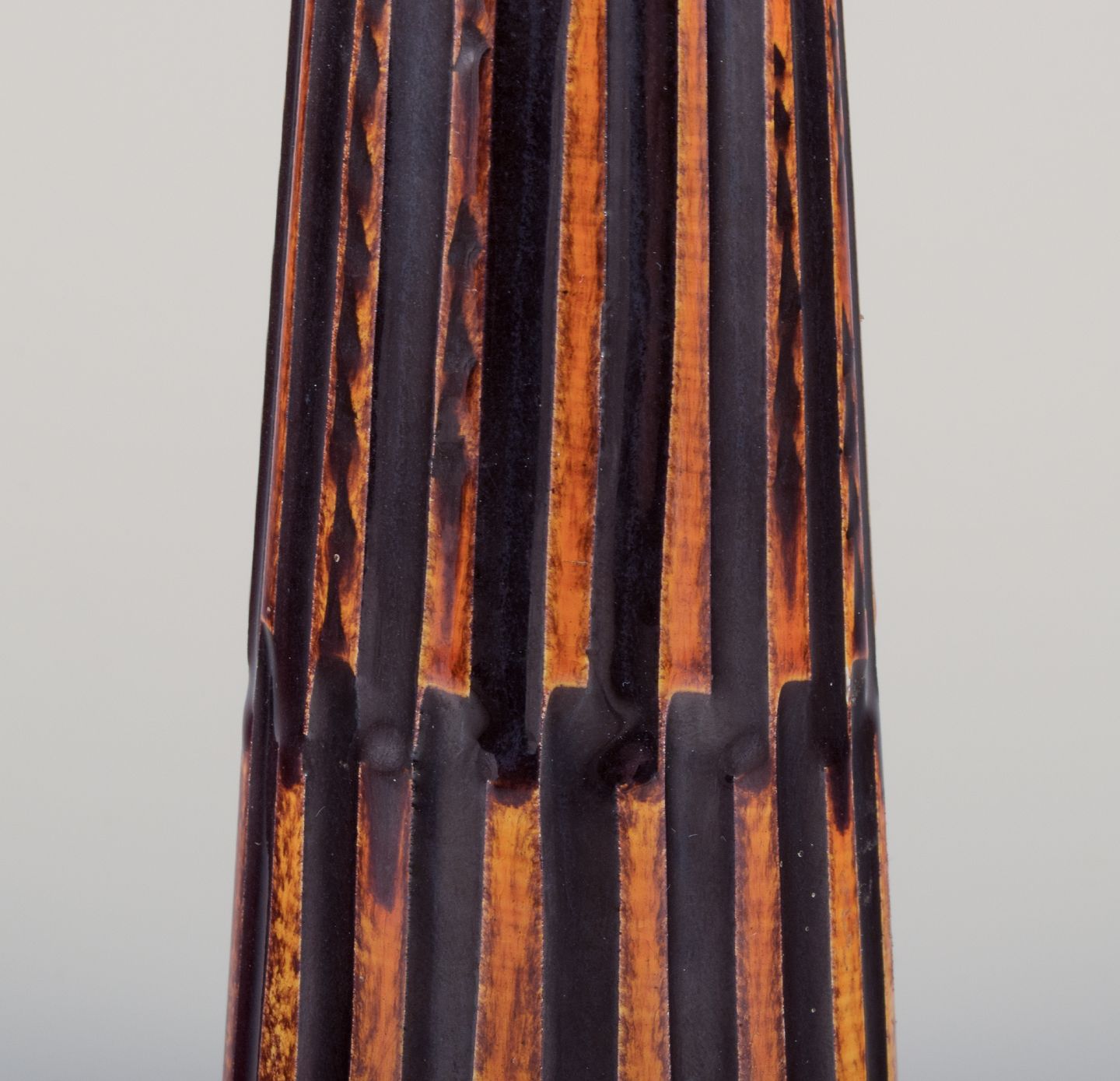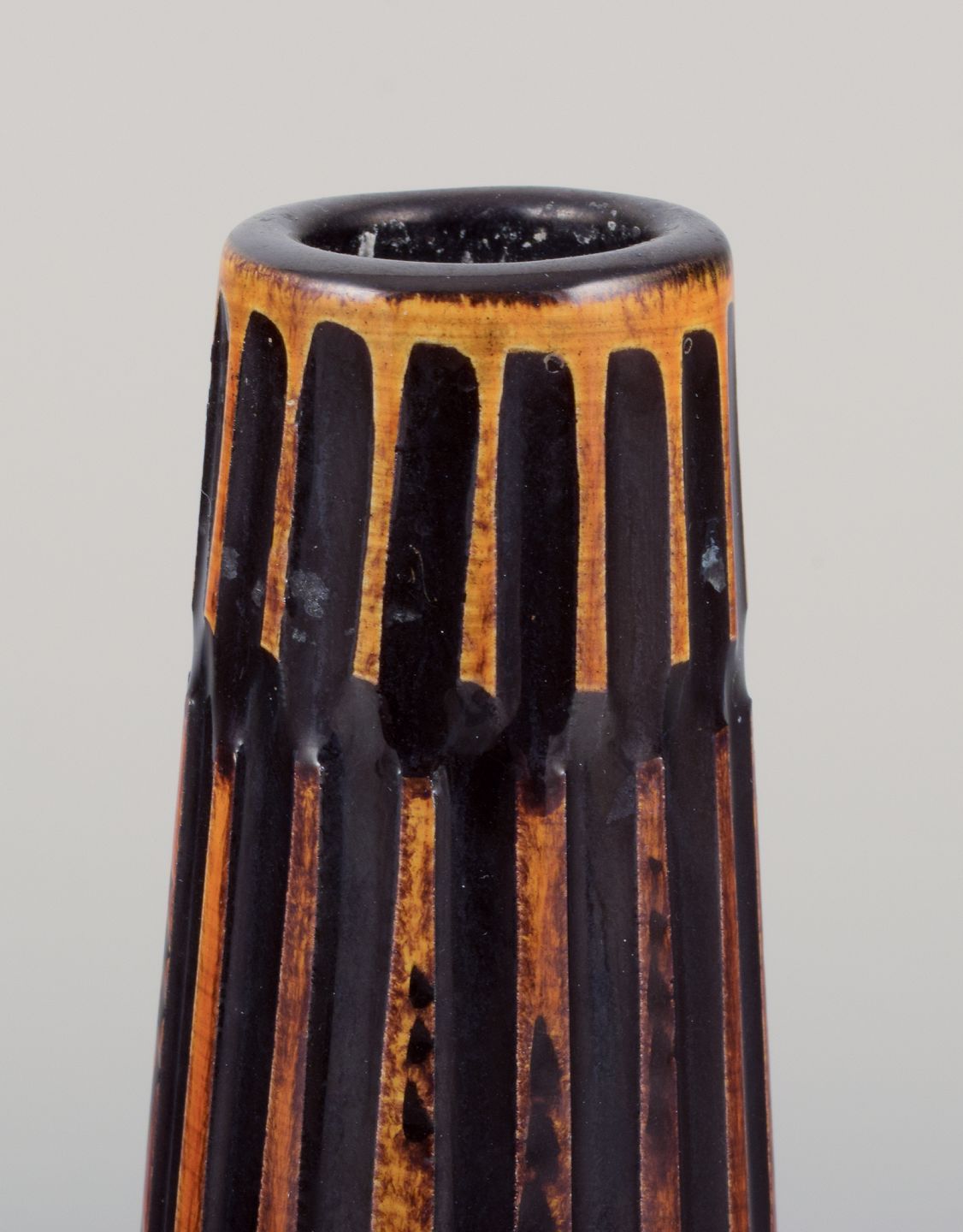 Ingrid Atterberg (1920-2008) for Upsala Ekeby. Keramikvase i modernistisk stil. Glasur i brune og okkergule nuancer. Ca. 1960. Modelnummer: 2643. Stemplet. Perfekt stand. Mål: H 15,0 cm. x D 5,5 cm.