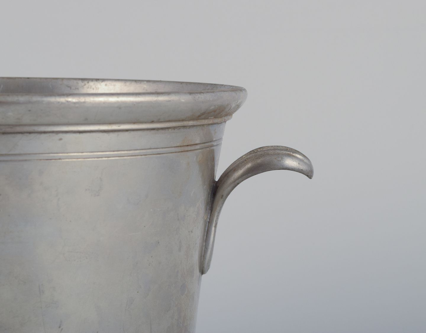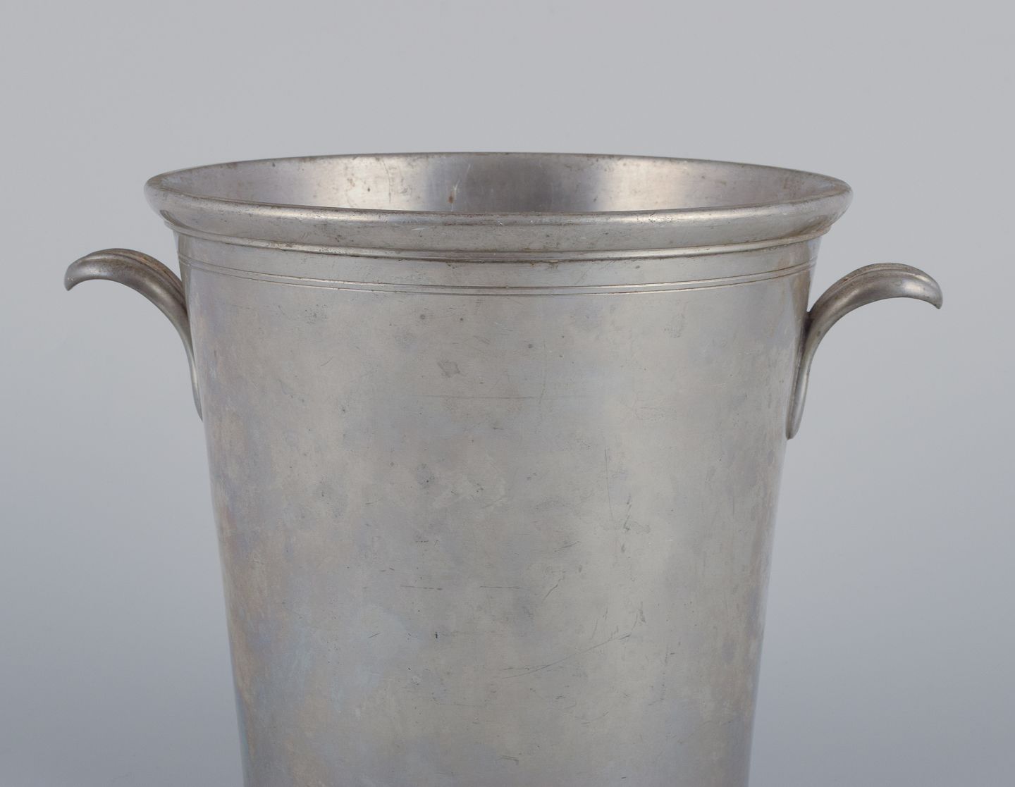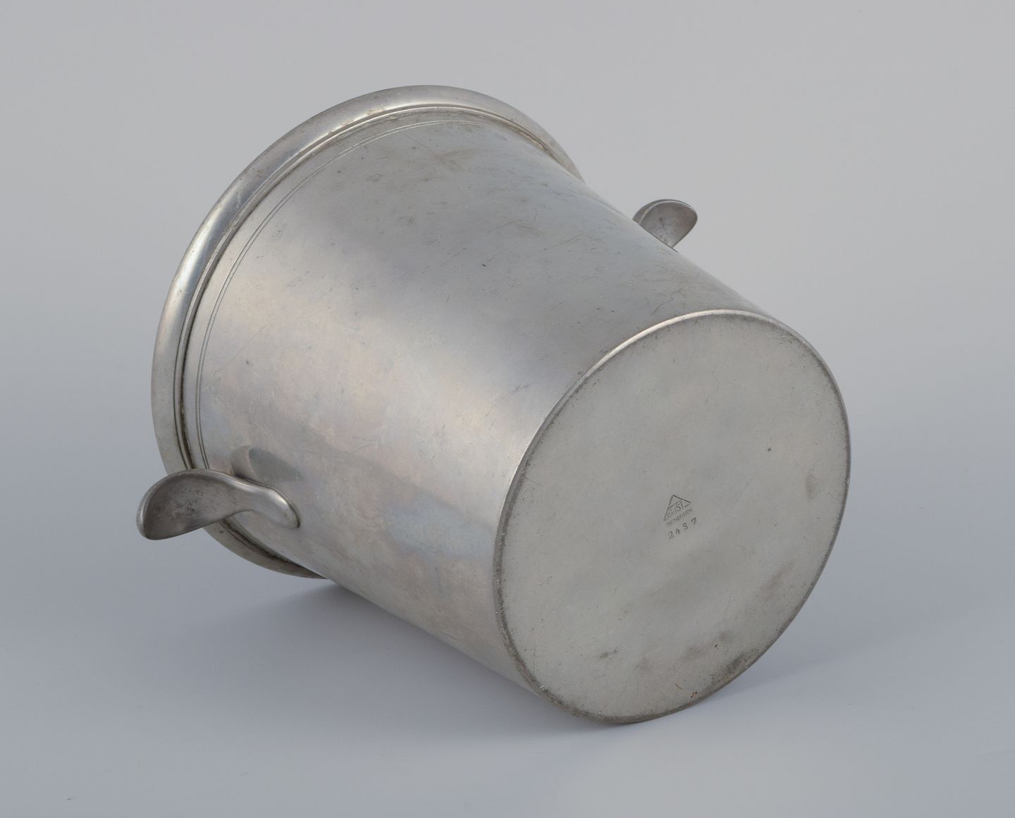 Just Andersen, tidlig champagnekøler i tin. Art Deco. Model 2437. Ca. 1930. I god stand, med brugspræg i form af ridser. Stemplet. Mål: H 16,2 cm.x D 17,5 cm. uden hanke.