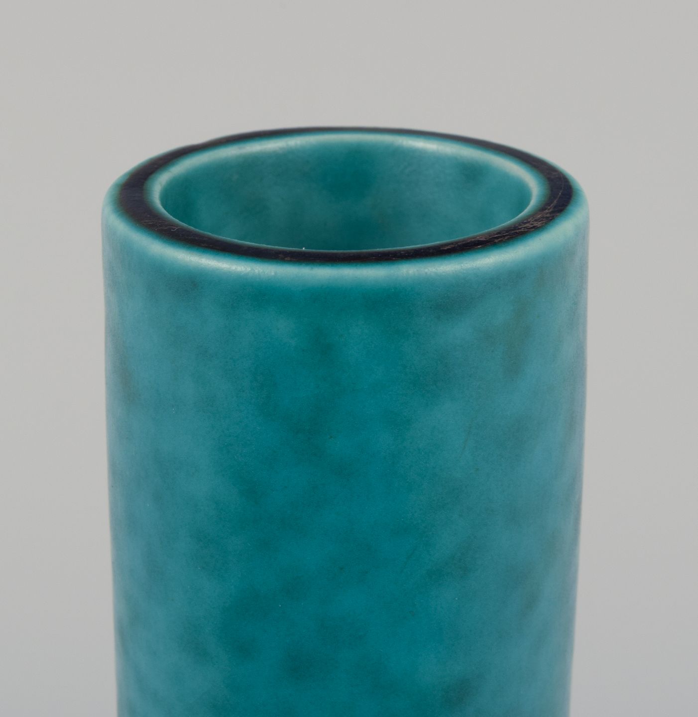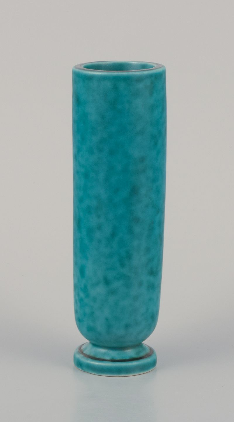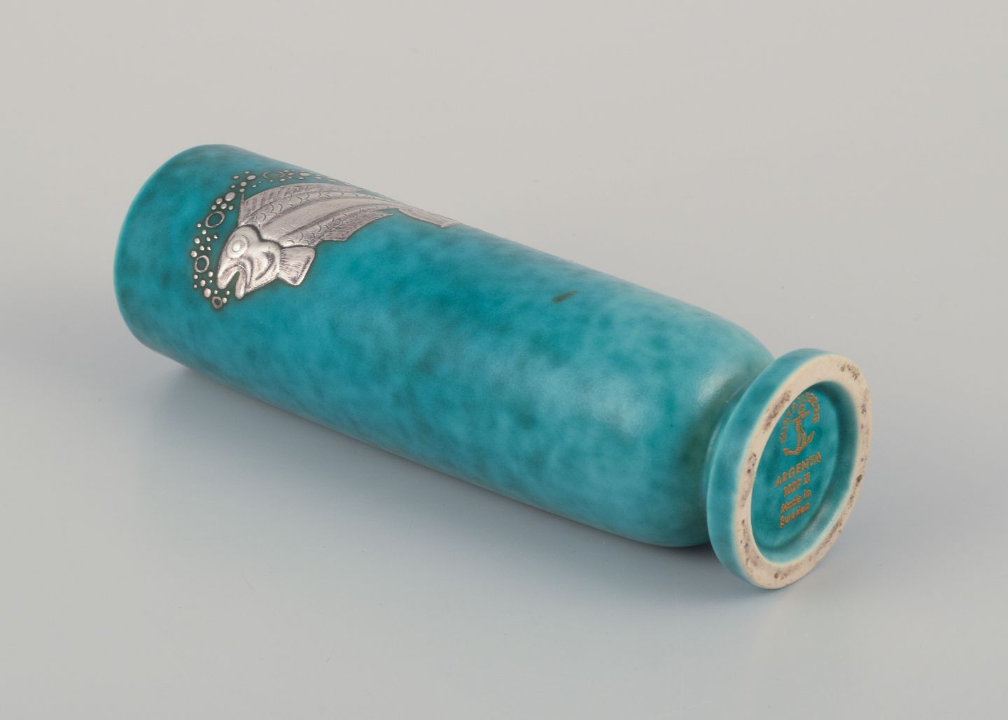 Wilhelm Kåge (1889-1960) for Gustavsberg. Slank keramikvase fra ”Argenta” serien. Motiv af fisk. Model 1029 Midt 1900-tallet. Stemplet. I perfekt stand. Mål: H 15,1 x D 4,5 cm.