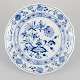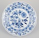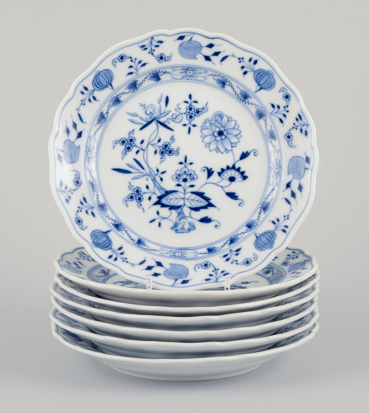 Meissen, Tyskland. Løgmønstret. Et sæt på syv tallerkner. Håndmalet i blåt. Ca. 1900. Stemplet. Perfekt stand. Tredje sortering. Mål: D 17,5 cm. x H 2,5 cm.