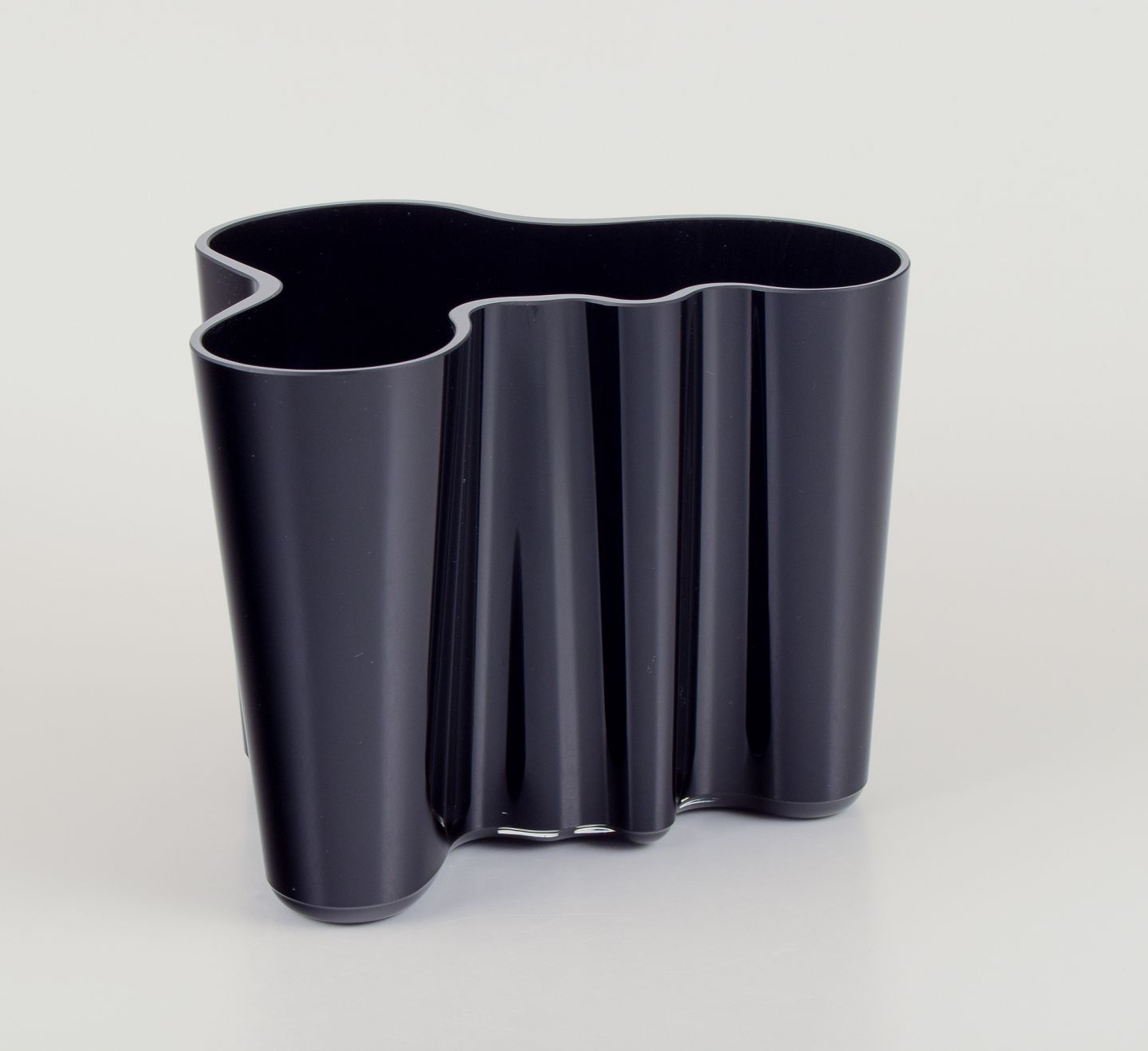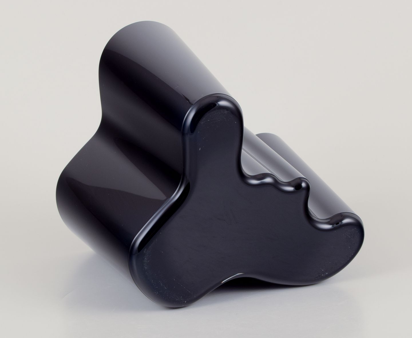 Alvar Aalto, Iittala, Finland, ”Savoy” vase i blåt mørkeblå glas. Ca. 1980. Signeret. I perfekt stand. Mål: D 20,0 cm. x H 16,0 cm.