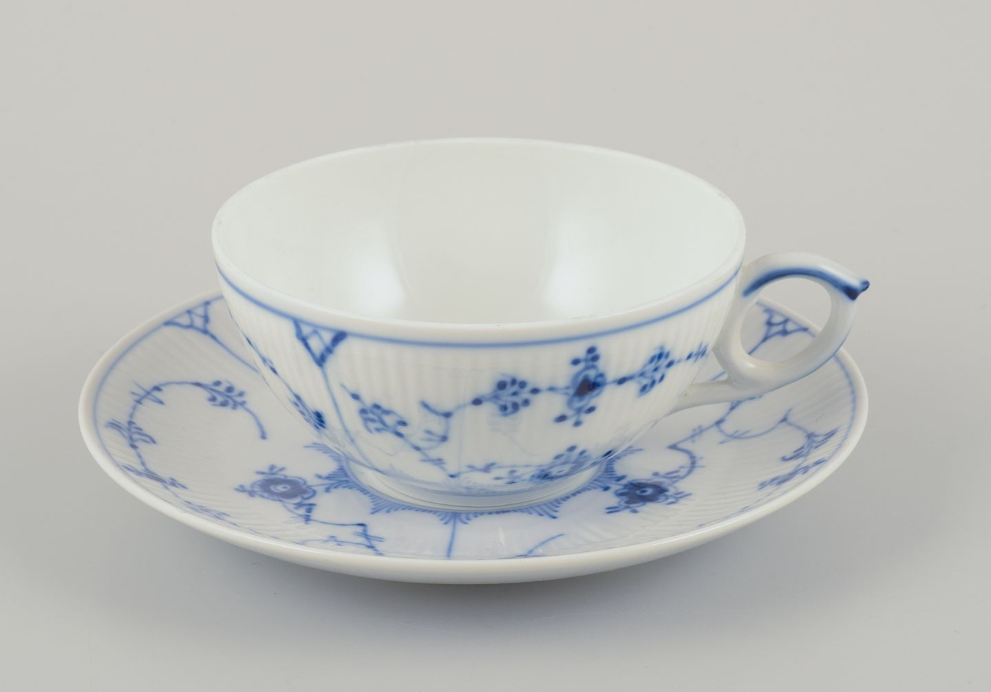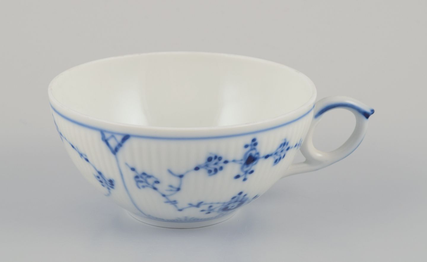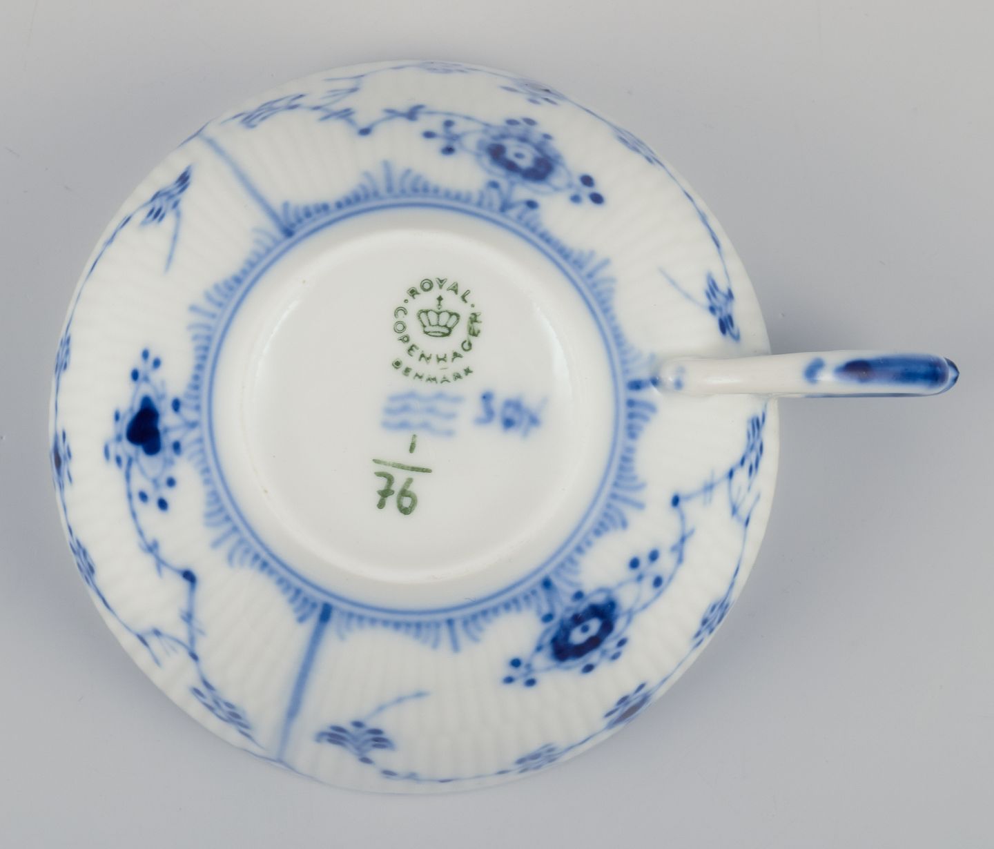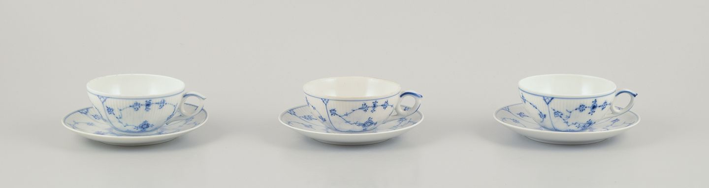 Royal Copenhagen Musselmalet Riflet. Et sæt på tre tekopper med tilhørende underkopper.