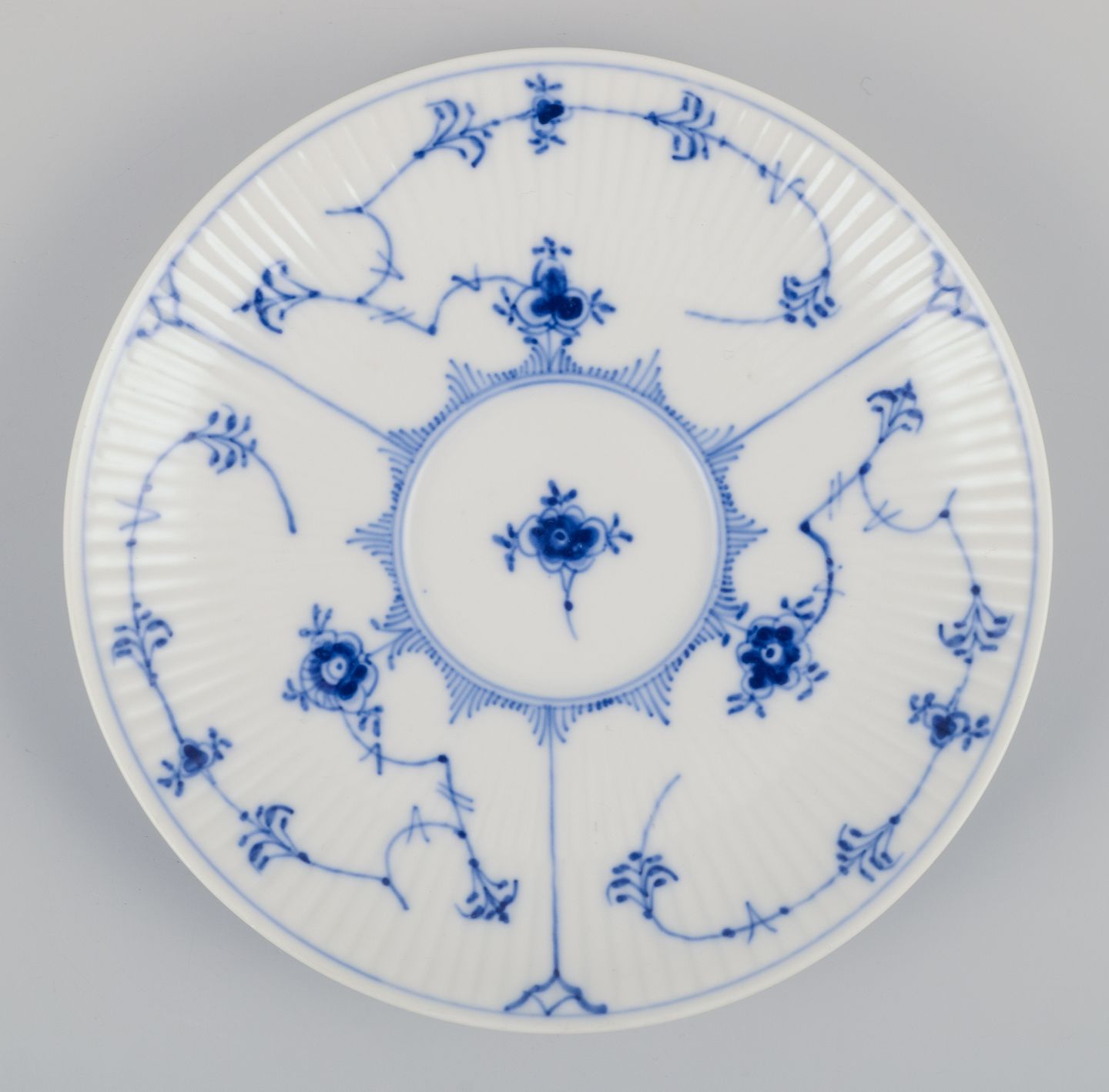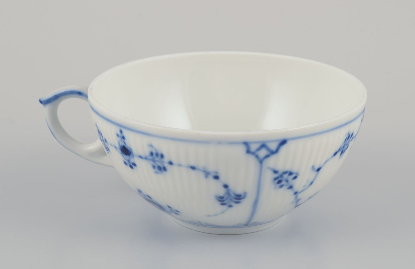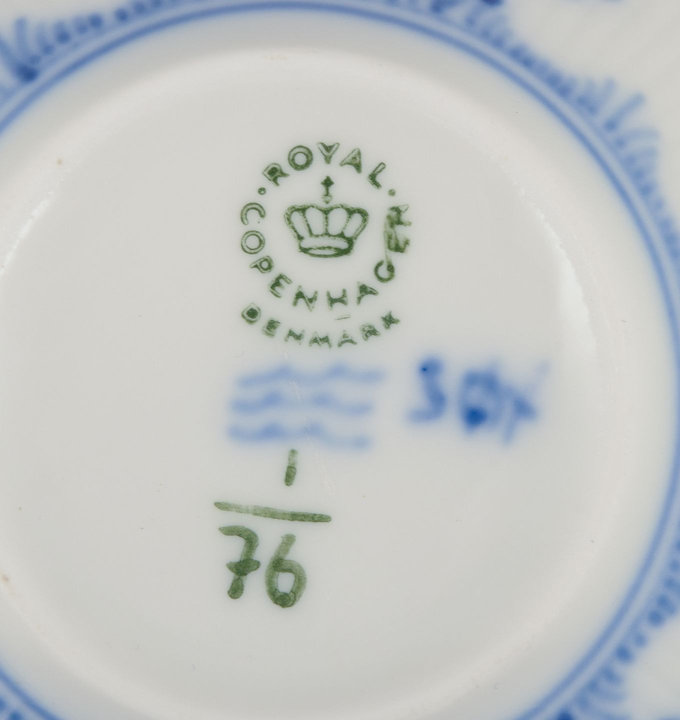 Royal Copenhagen Musselmalet Riflet. Et sæt på tre tekopper med tilhørende underkopper.
