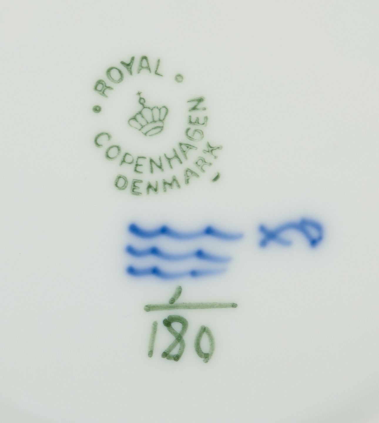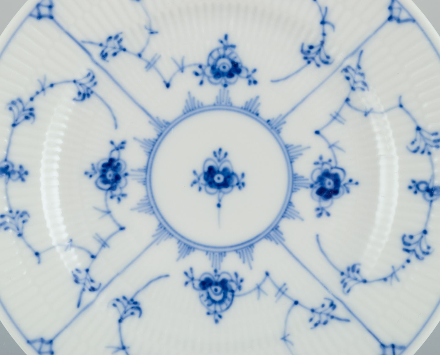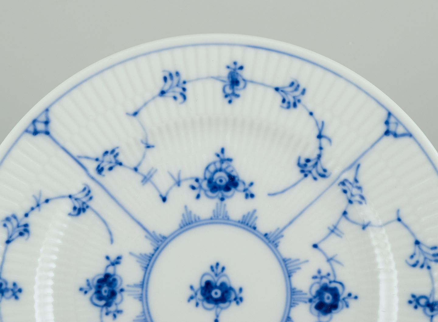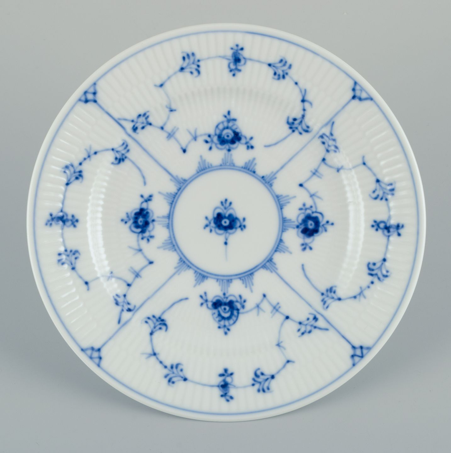 Royal Copenhagen Musselmalet Riflet. Otte tallerkner. Model 1/180 1950/60’erne. Første sortering Stemplet. Perfekt stand. Mål: 17,2 cm.