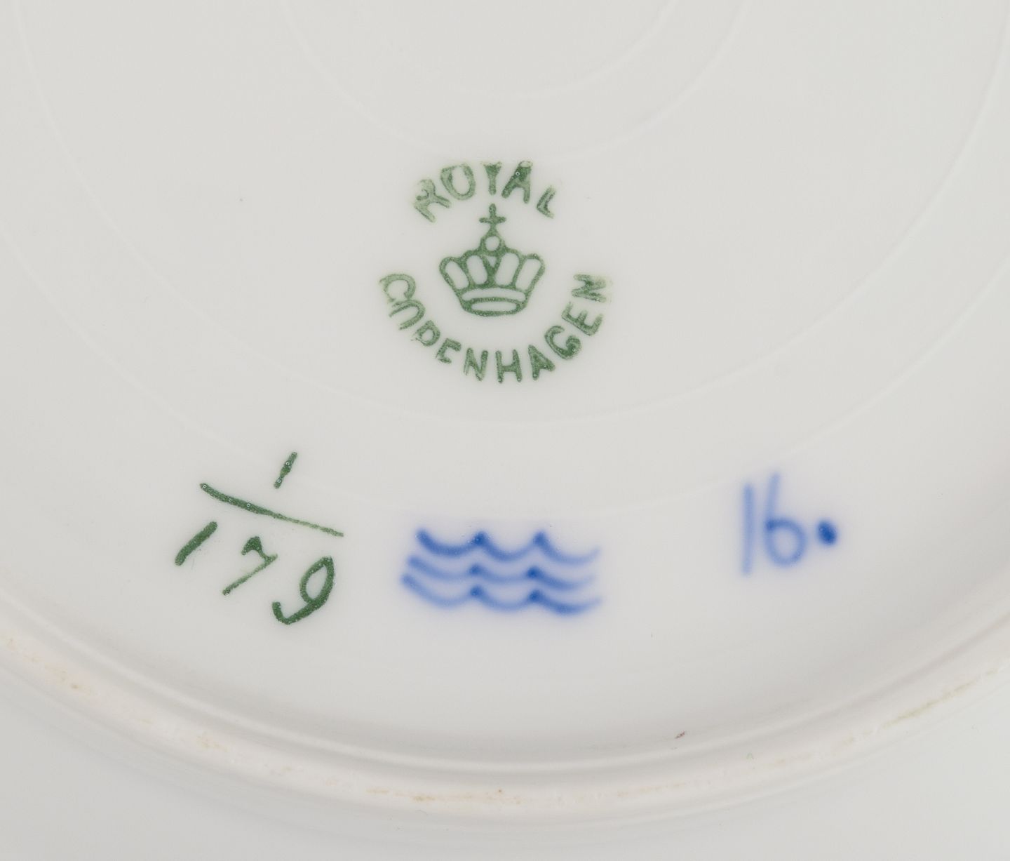 Royal Copenhagen Musselmalet Riflet. To tallerkner. Modelnummer 1/179 Datering: 1930'erne. Stemplet. Perfekt stand. Første sortering. Mål: D 19,2 cm.