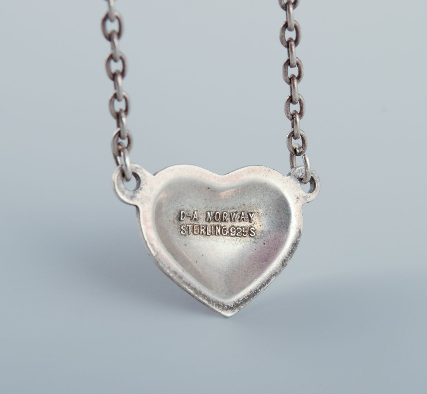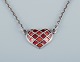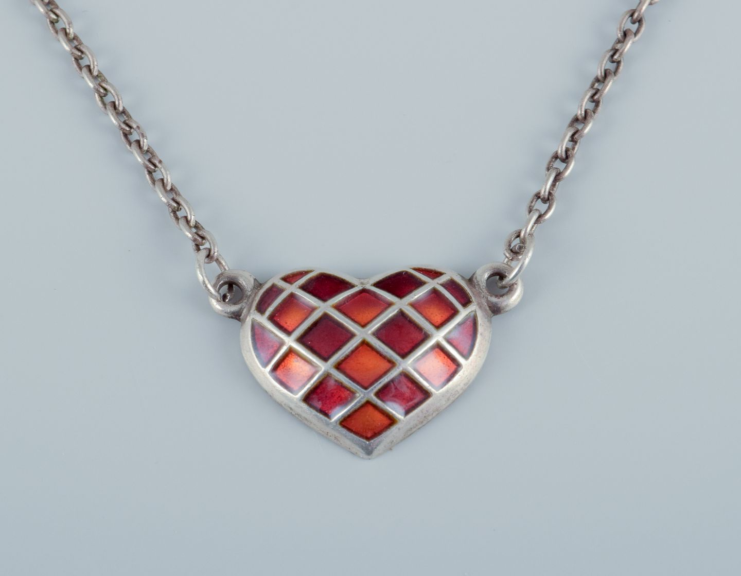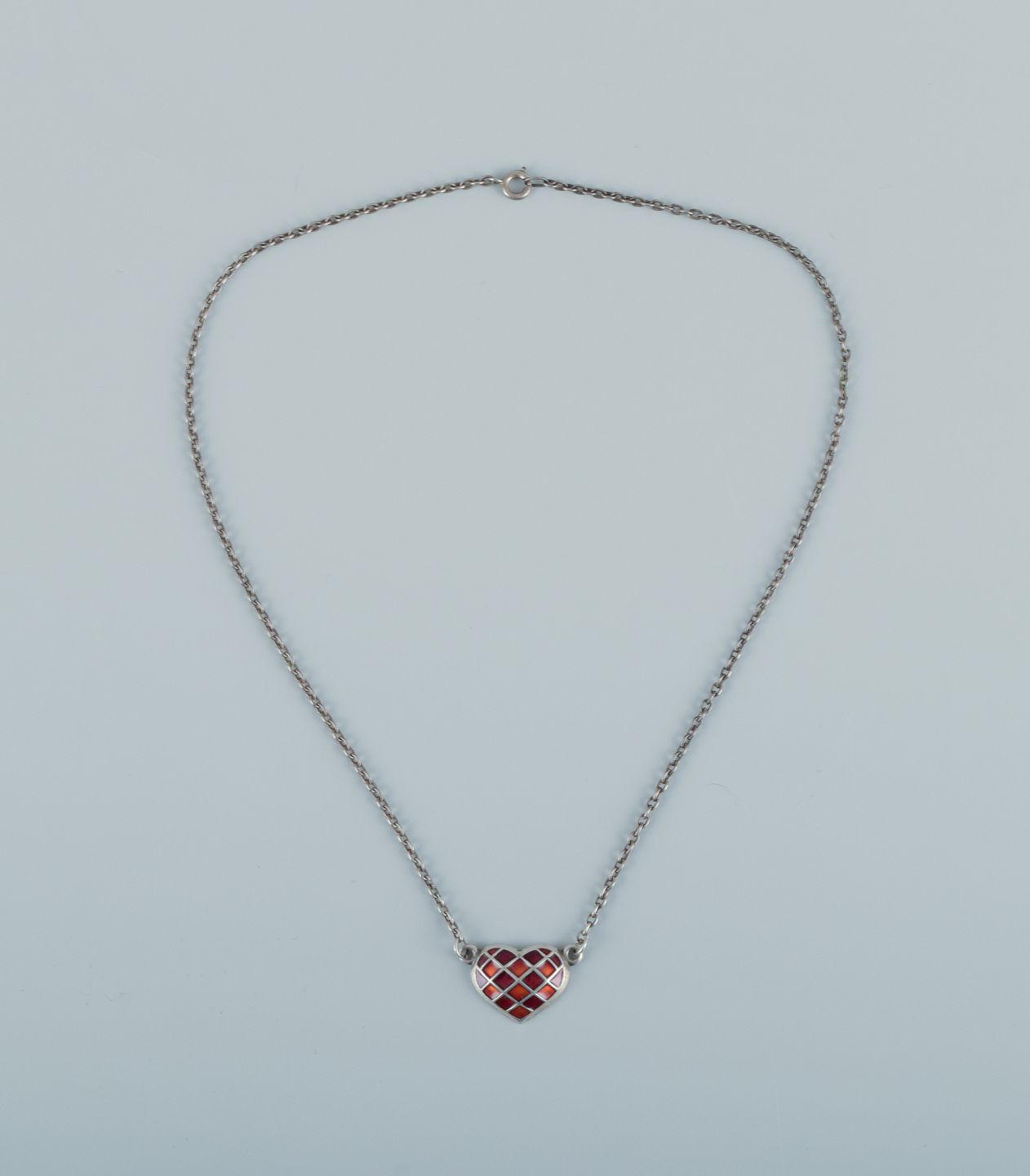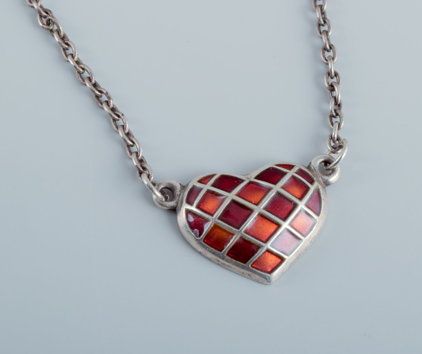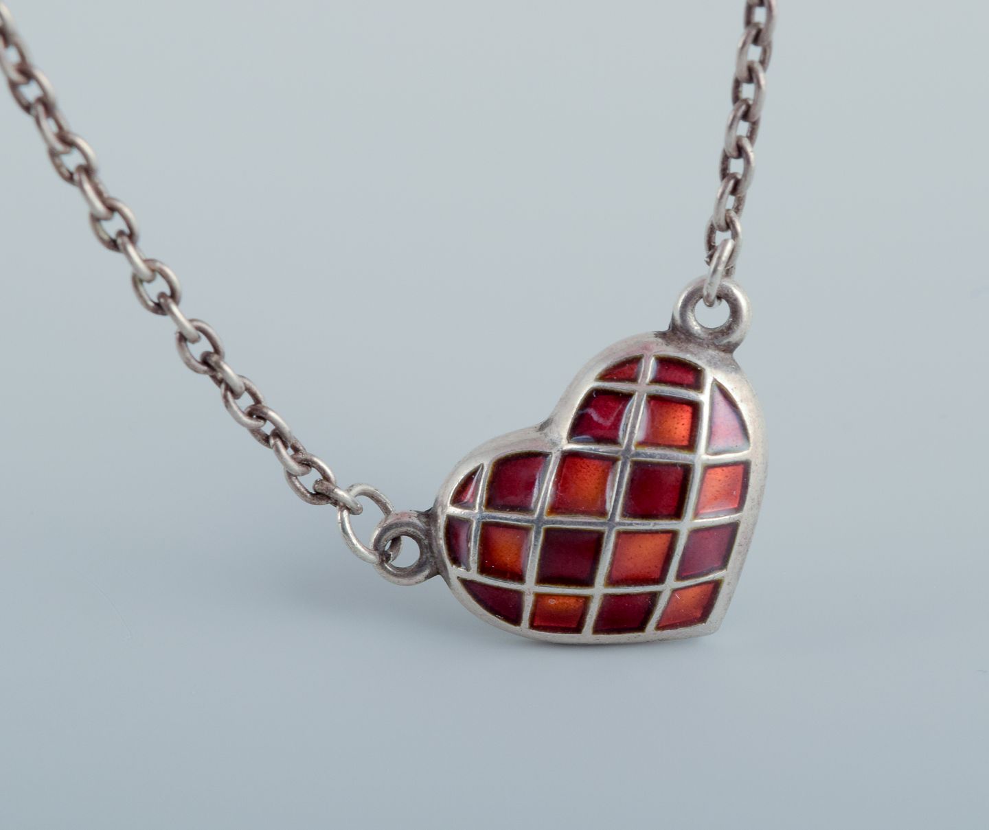 Halskæde i sterlingsølv, vedhæng i form af hjerte i emaljearbejde.