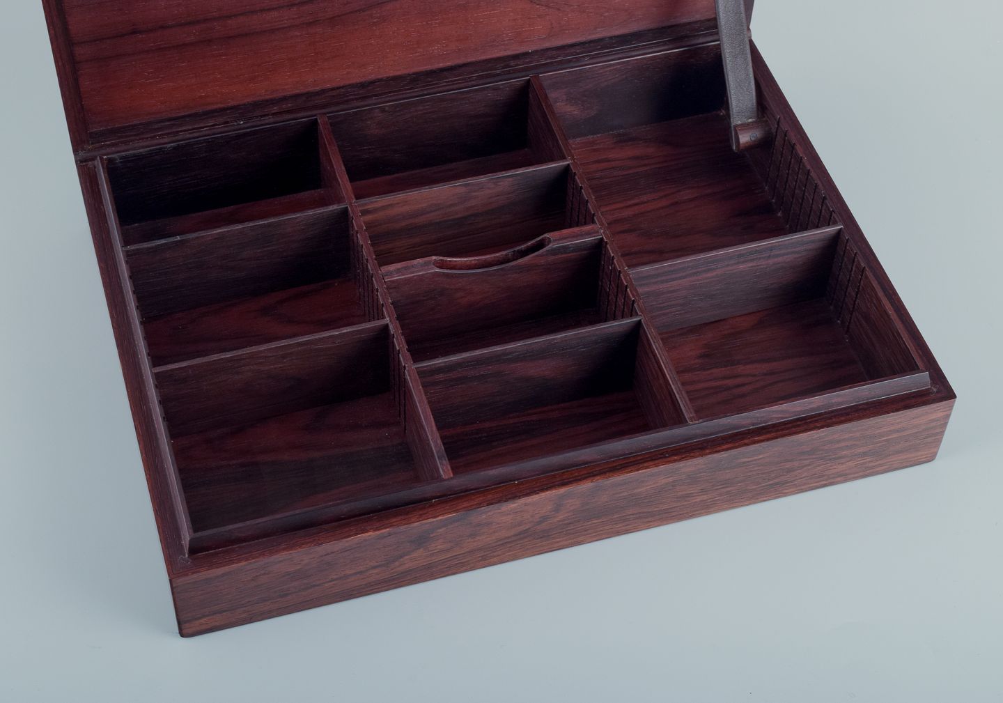 Opdelt med ni justerbare rum samt holder til cigarklipper.