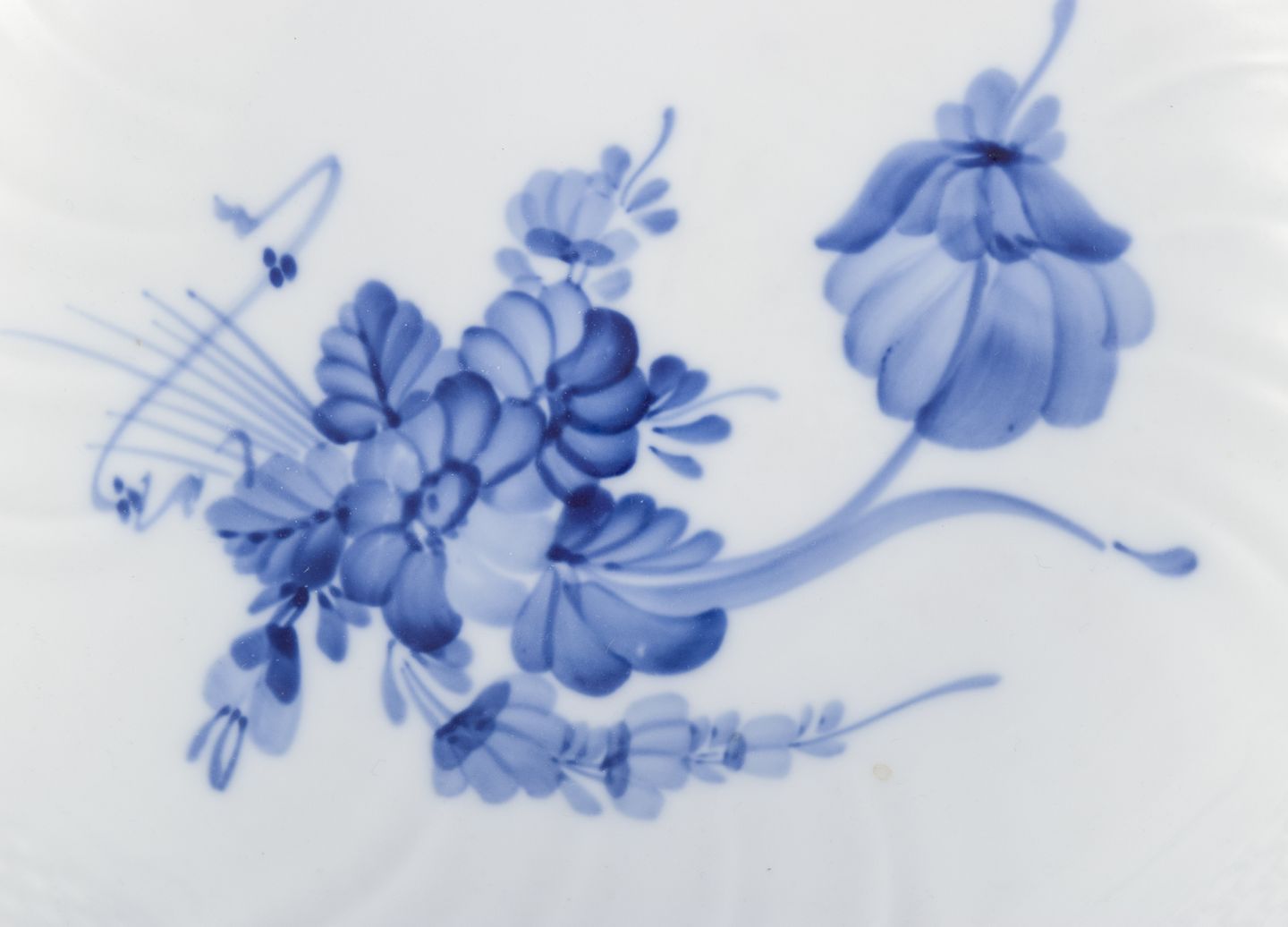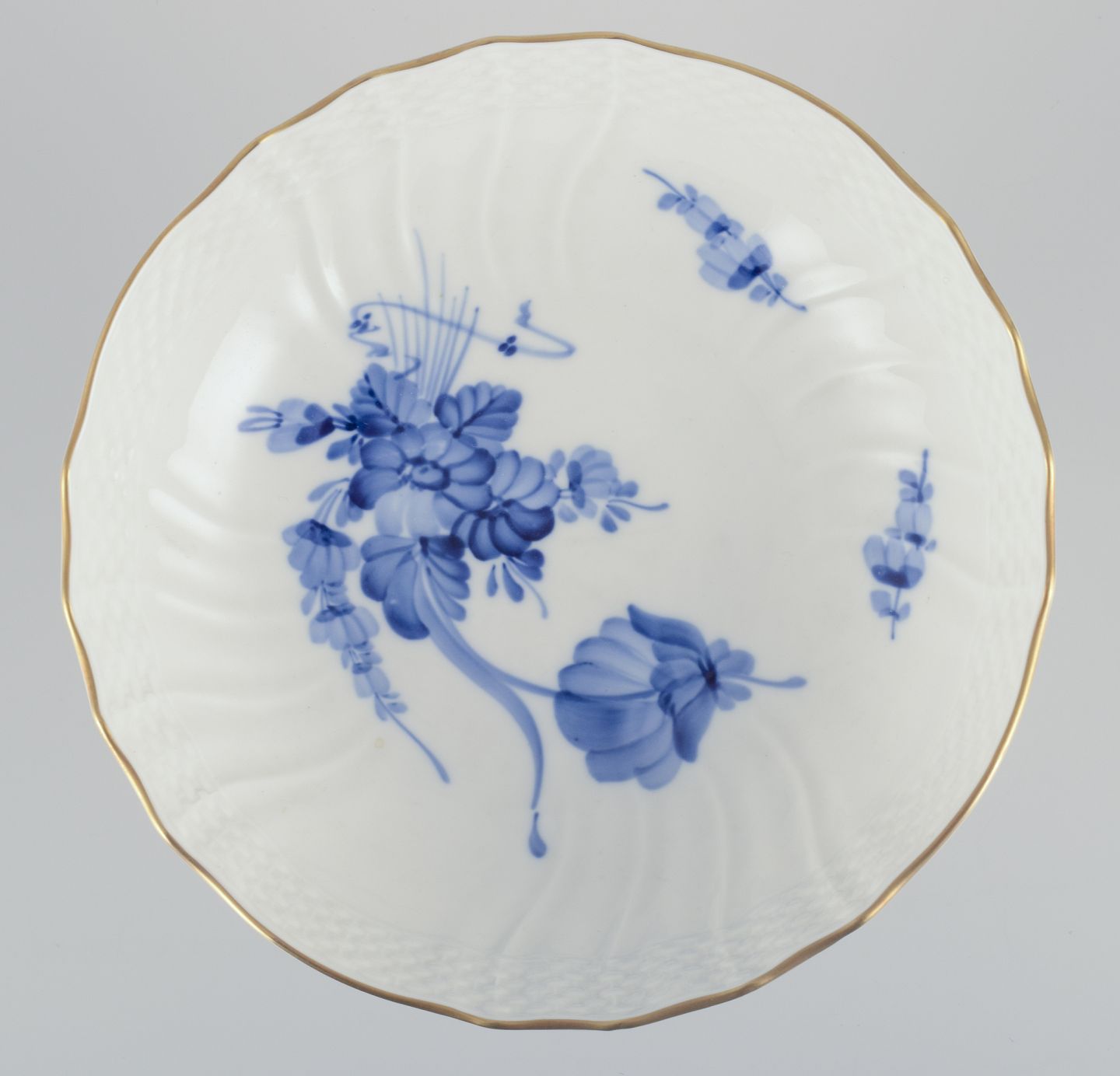 Royal Copenhagen Blå Blomst Svejfet opsats med guldkant. Modelnummer: 10/1528. Dateret: 1967. I perfekt stand. Stemplet. Første sortering. Måler: D 21,5 cm. x H 15,5 cm.