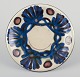 Hånddekoreret i blåt og brunt på cremefarvet bund.