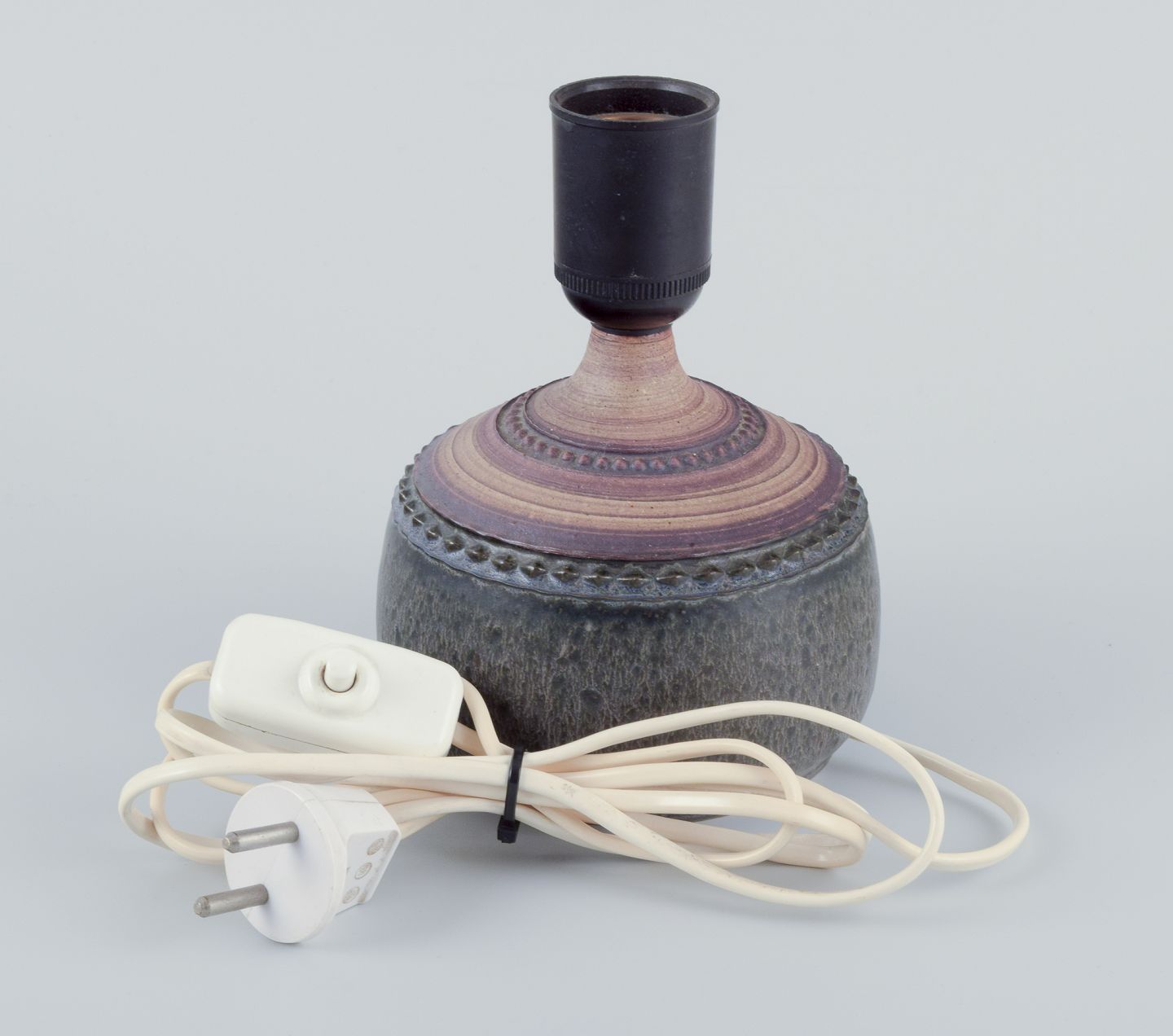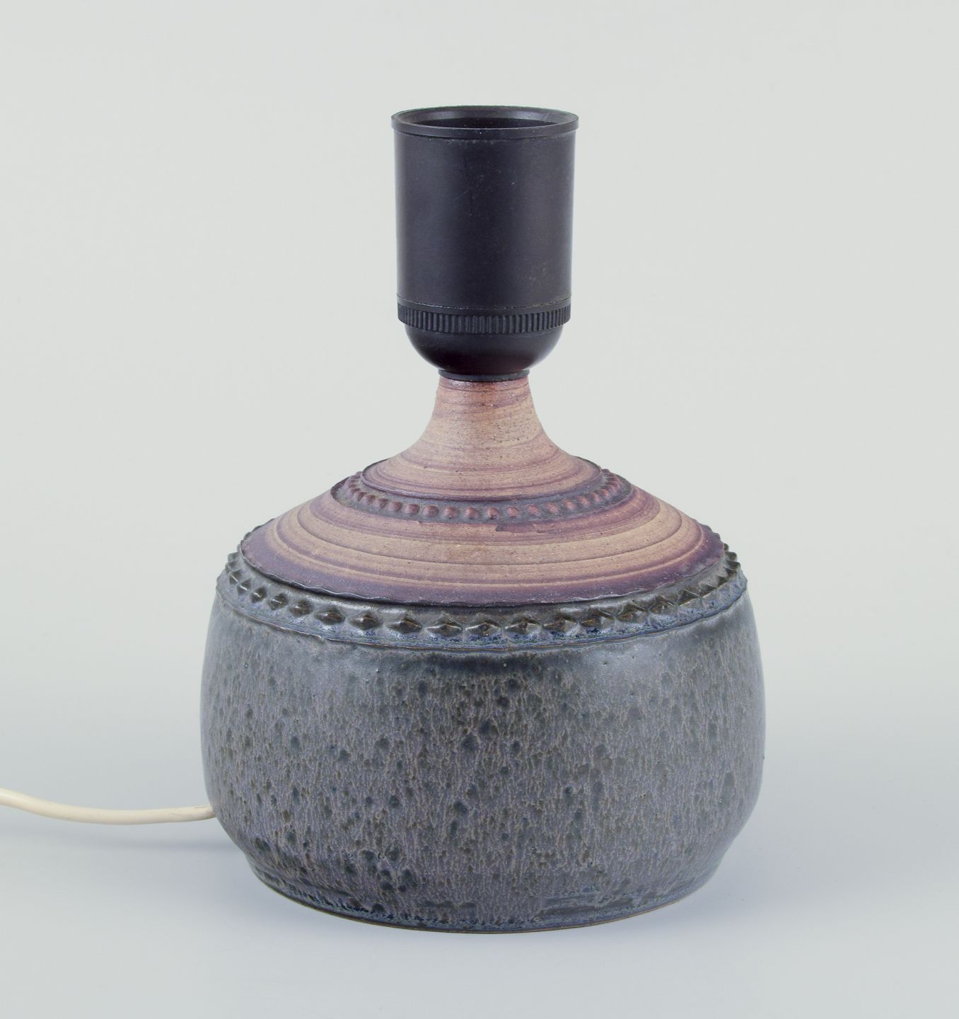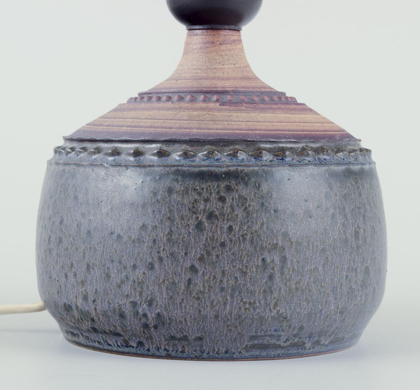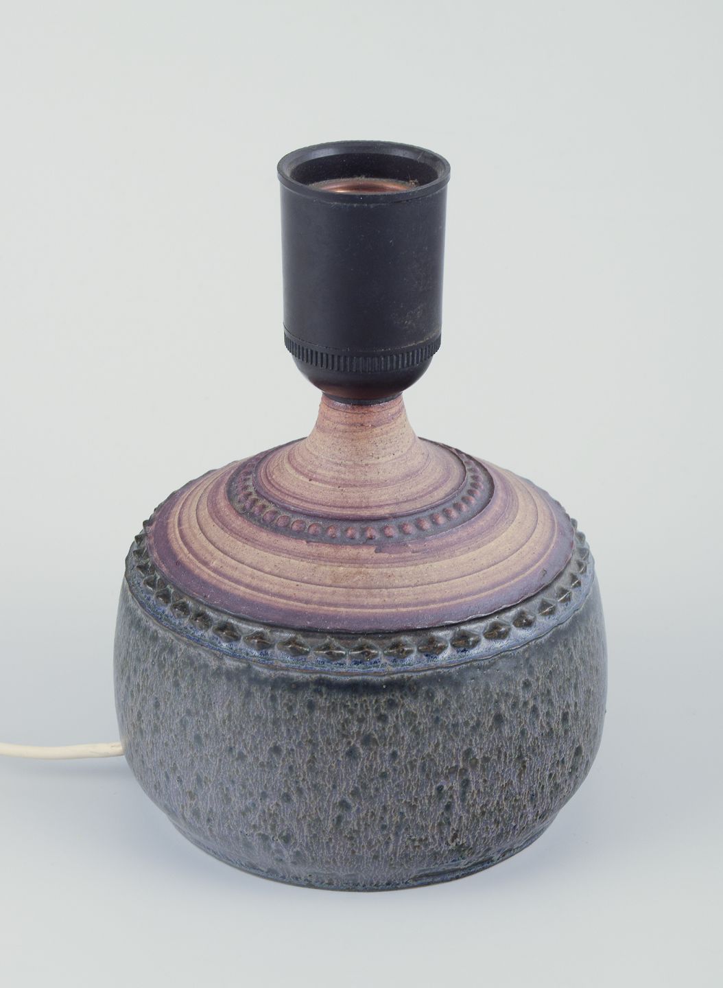 Bordlampe af stentøj. Med mønster i dekorationen. Glaseret og uglaseret.