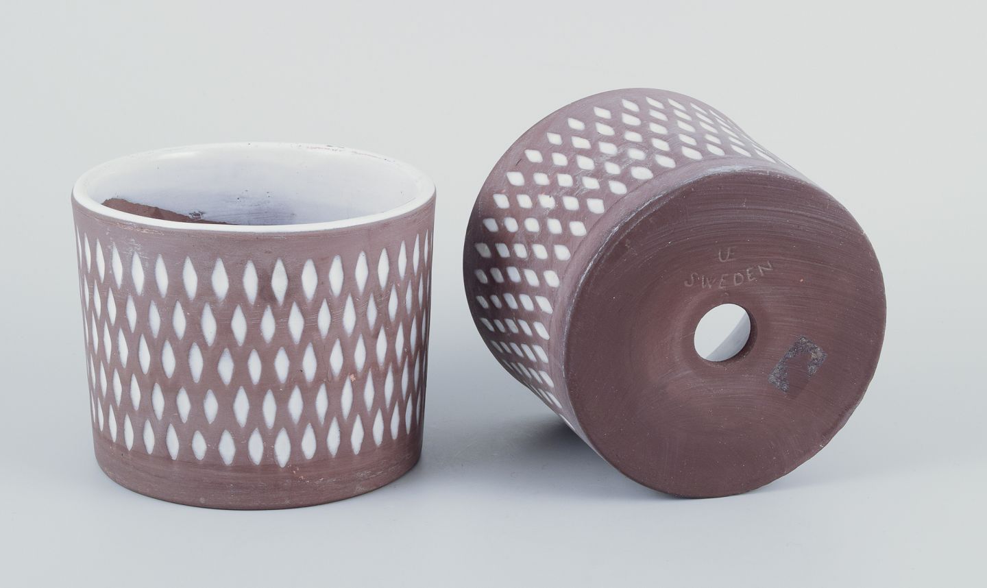 Et par urtepotteskjulere af keramik. Mønster i dekorationen.