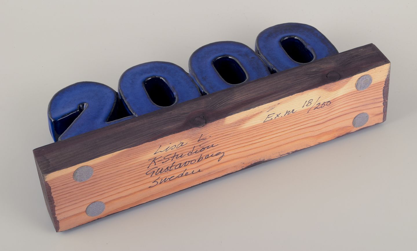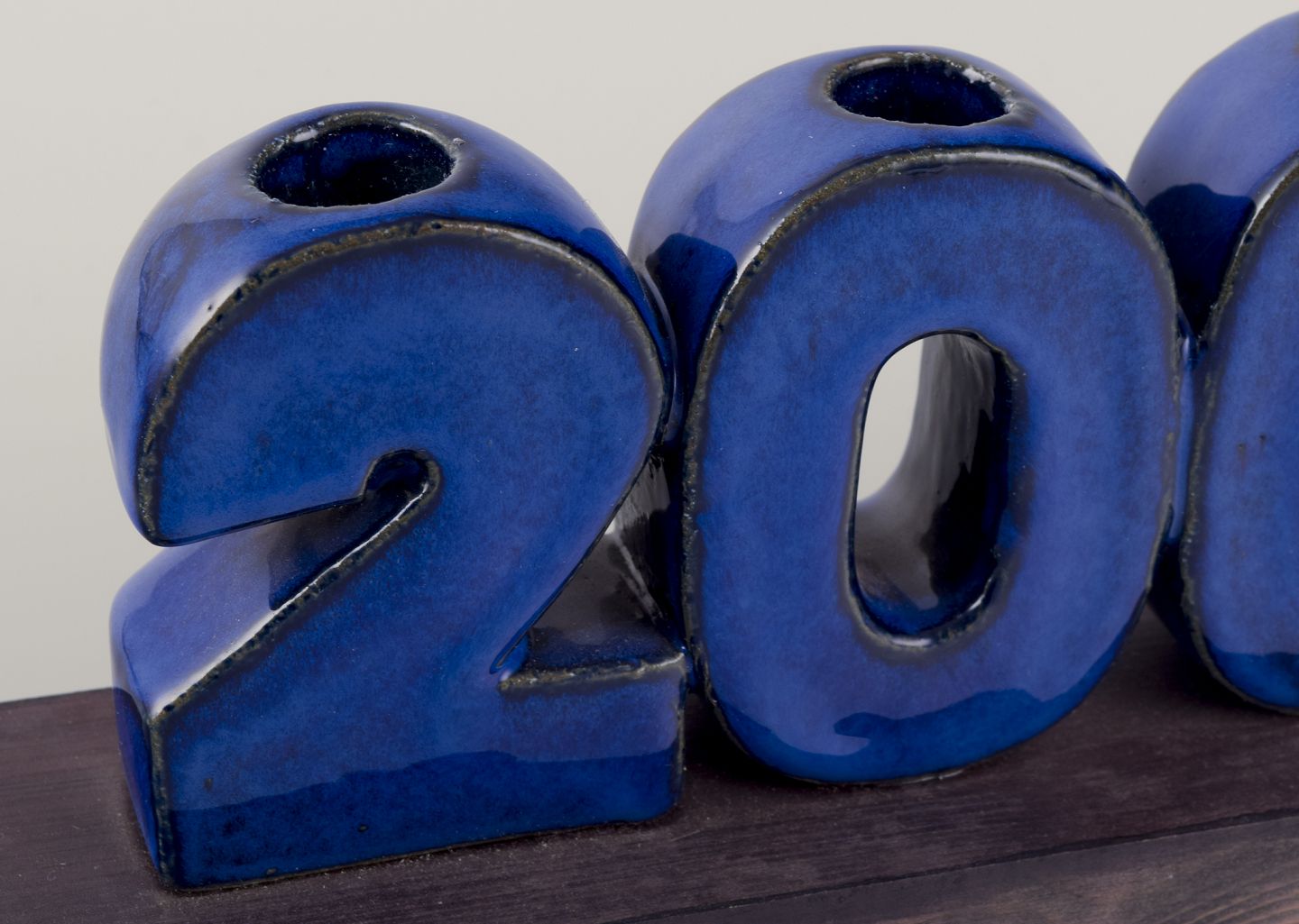 ”Millenium 2000” lysestage af stentøj til fire lys.